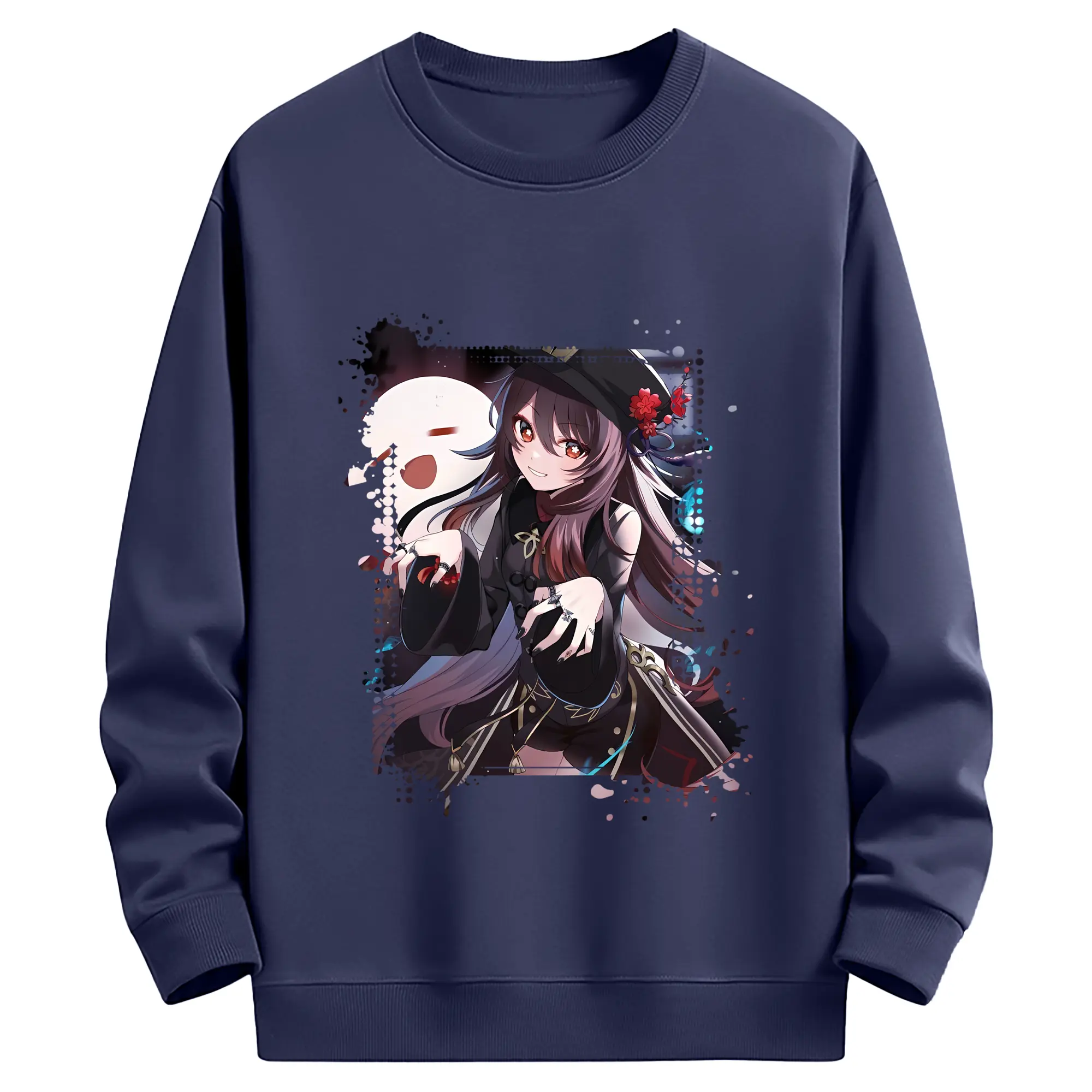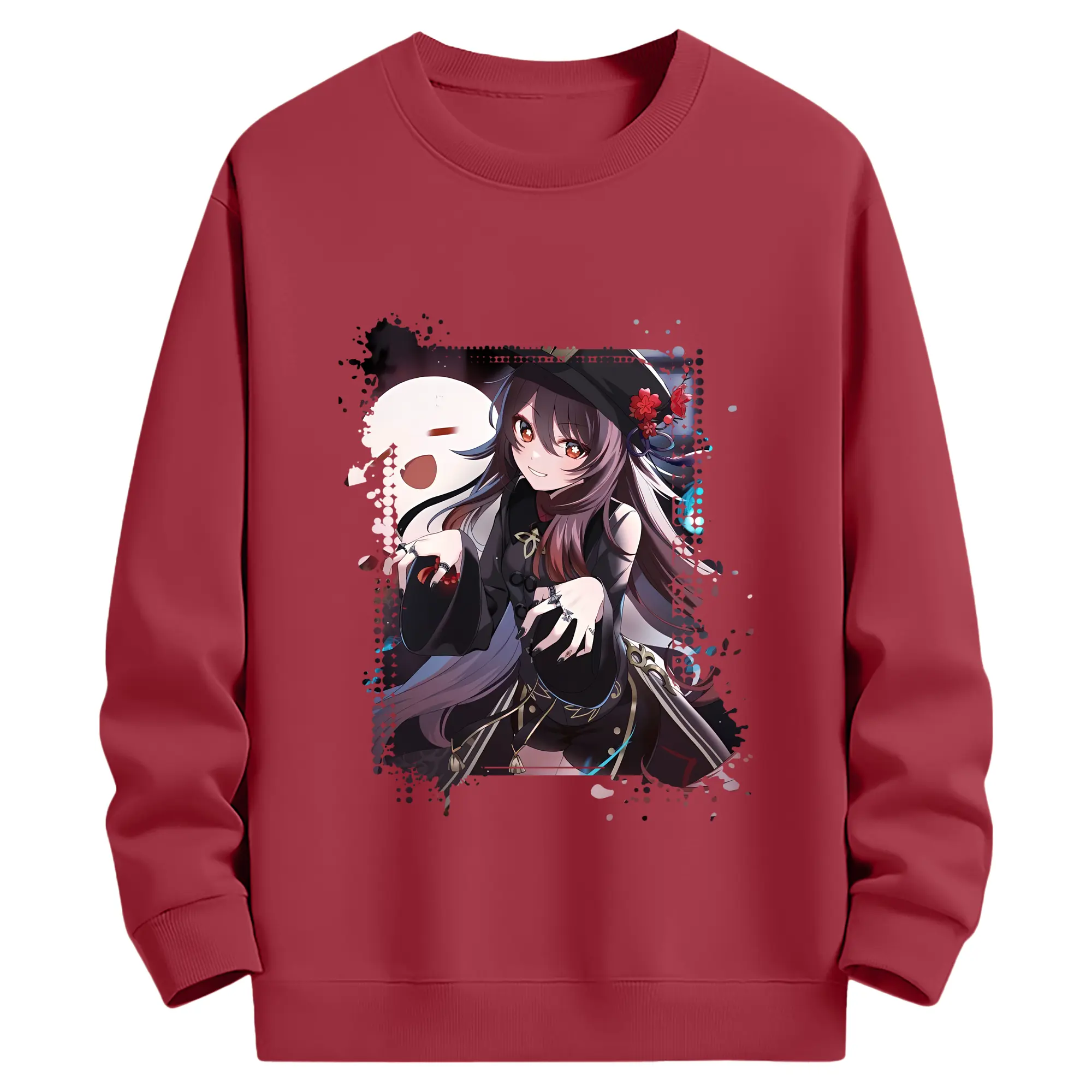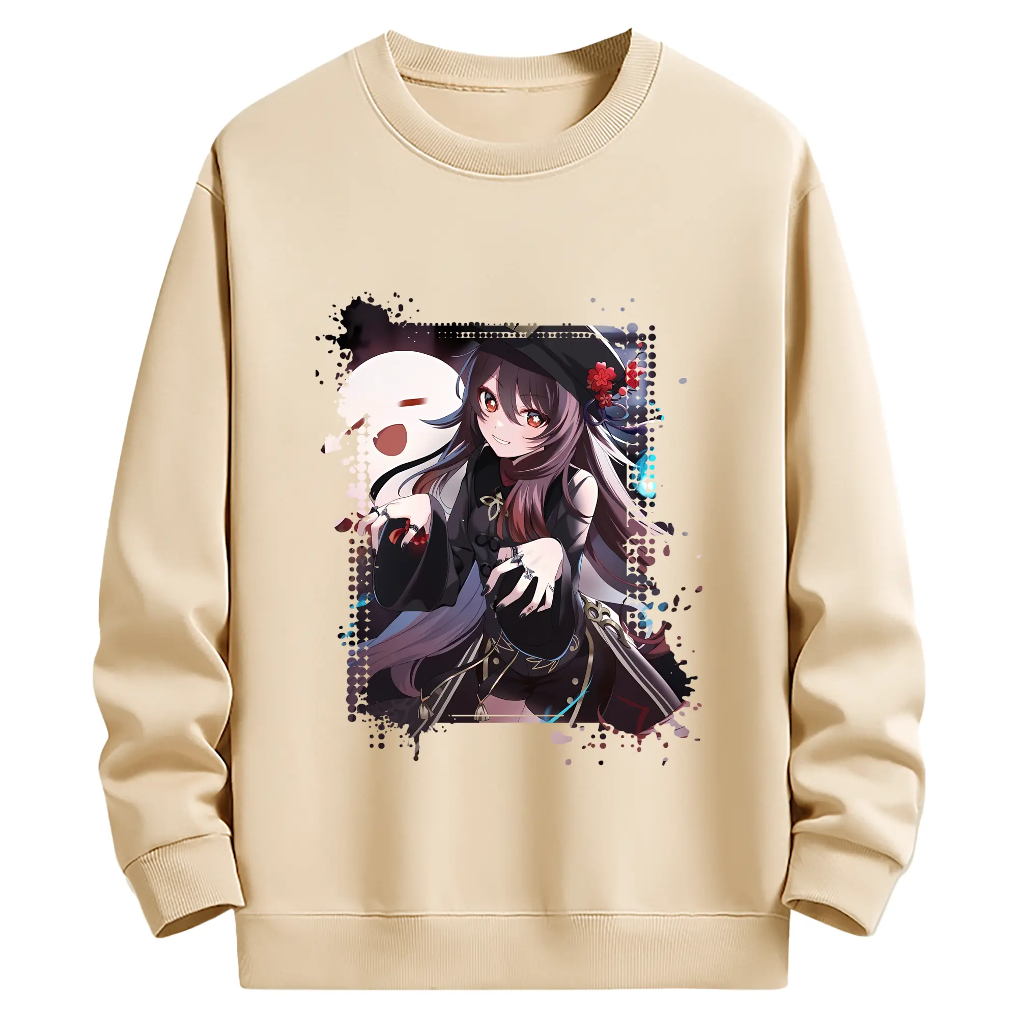 原 神 グッズ フータオ - 薄手 クルーネック スウェット 裏毛260g · ポリエステル 春秋向け カジュアル 男女兼用 · トレーナー デイリー スポーツ 散歩に最適