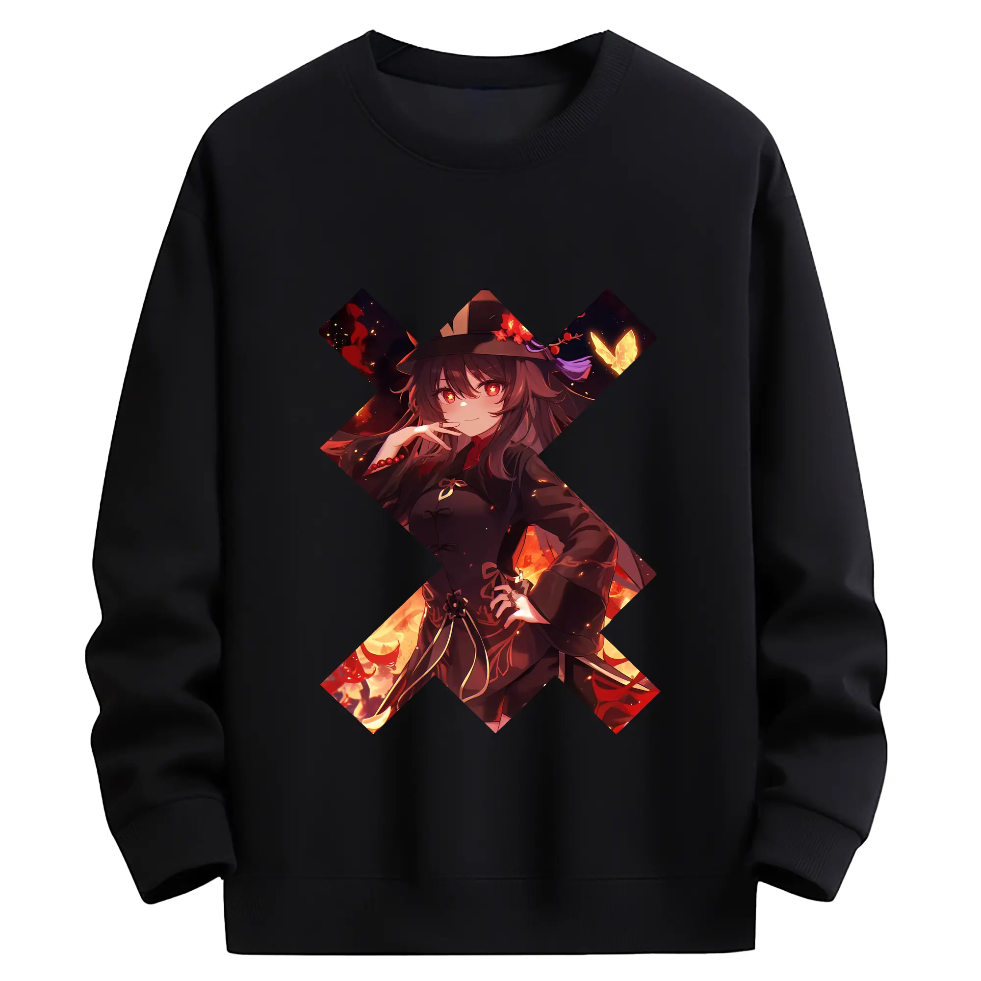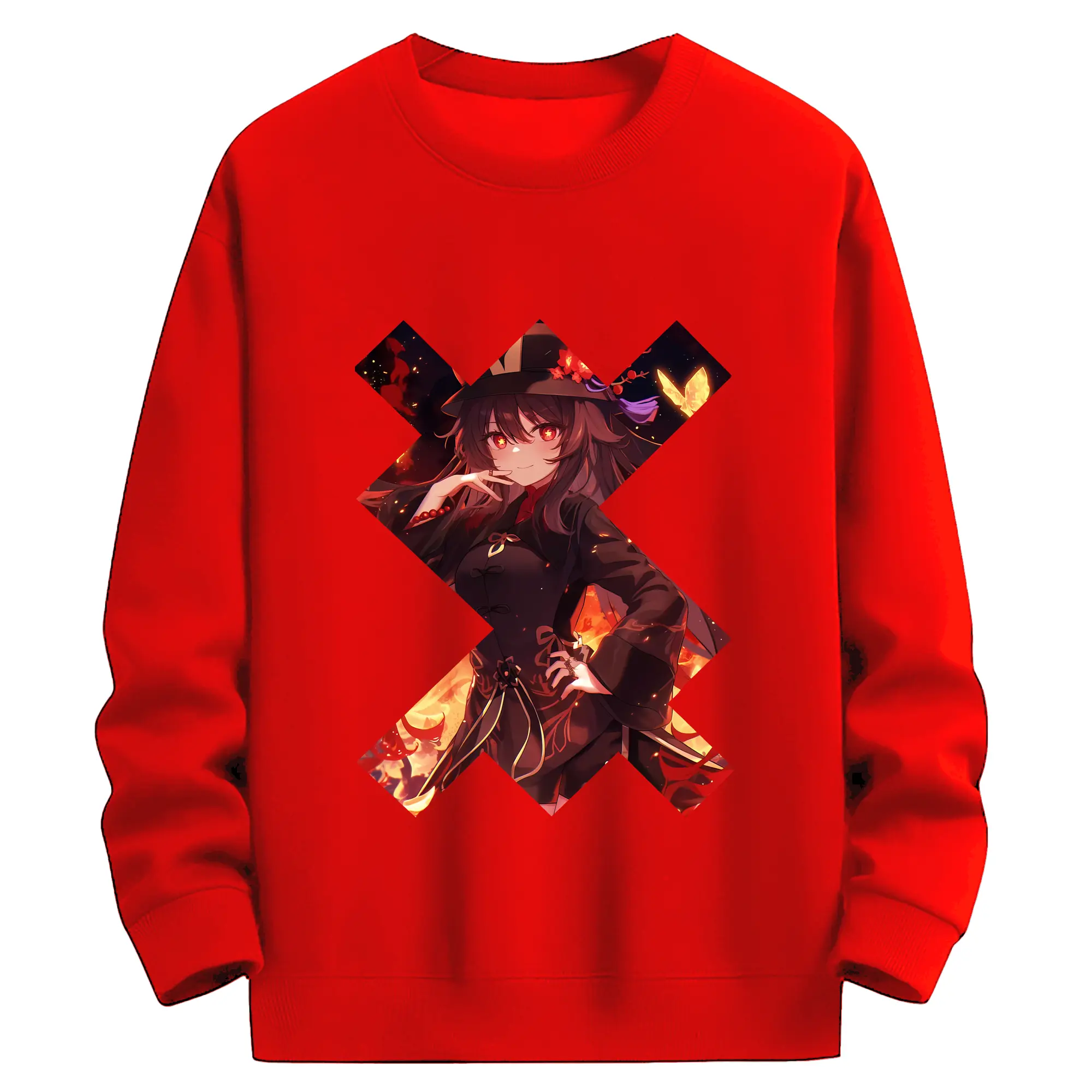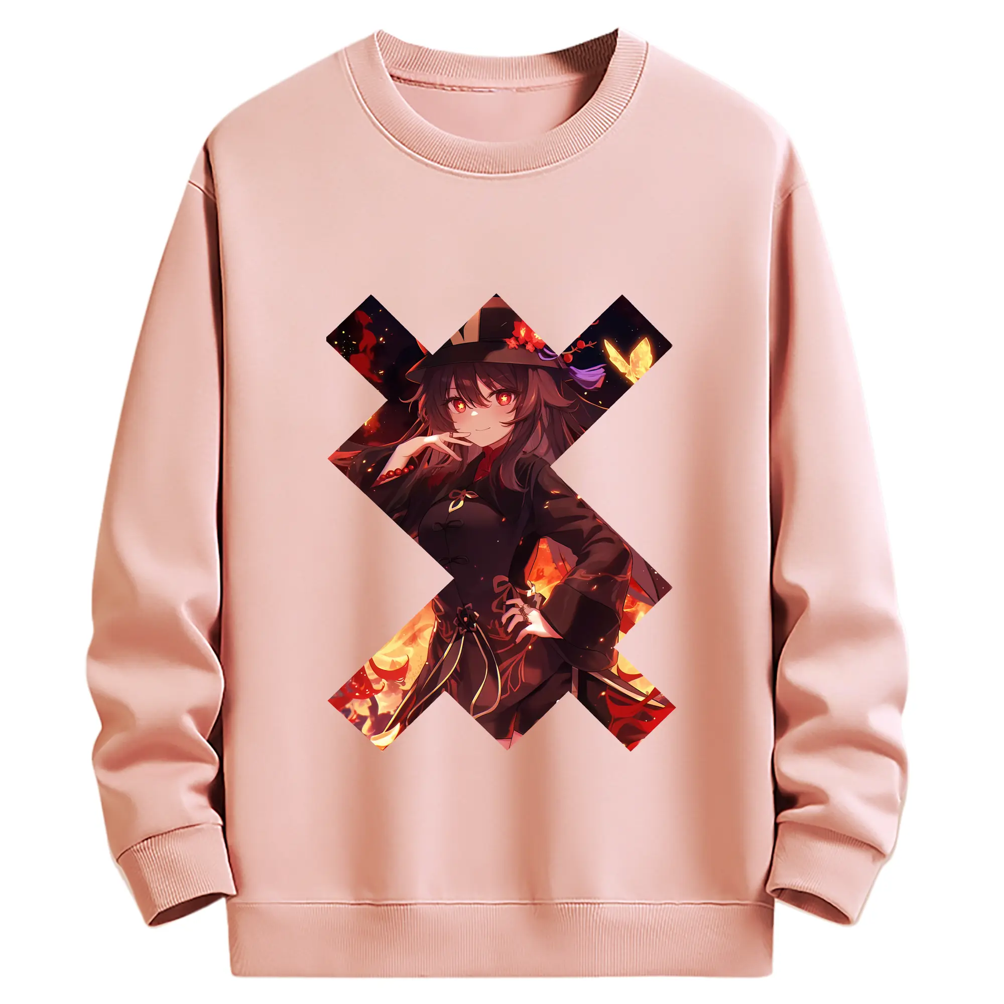原 神 グッズ フータオ - 薄手 クルーネック スウェット 裏毛260g · ポリエステル 春秋向け カジュアル 男女兼用 · トレーナー デイリー スポーツ 散歩に最適