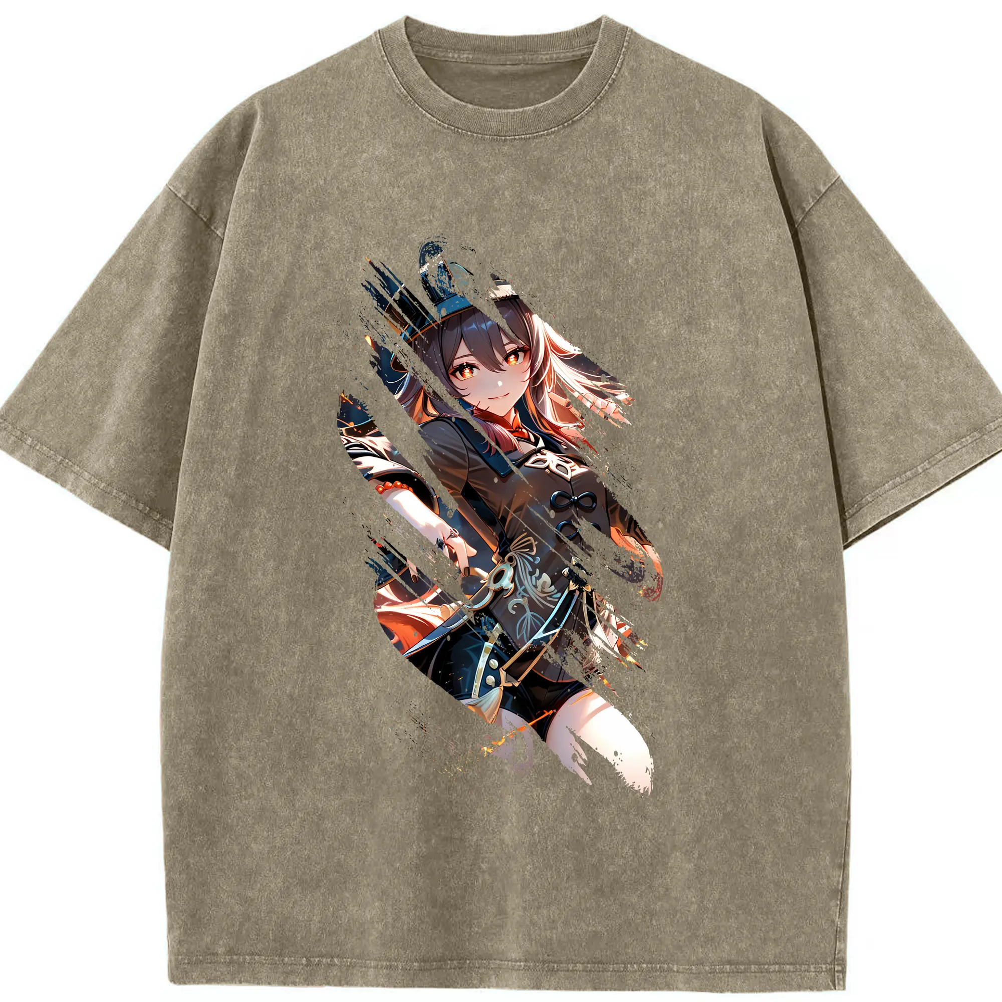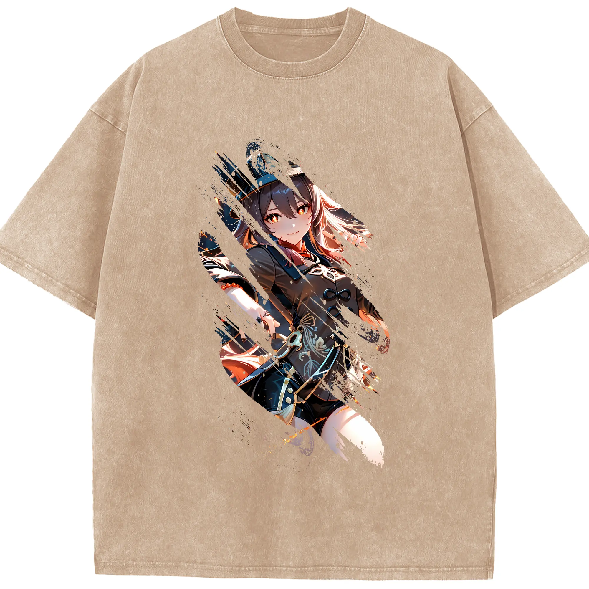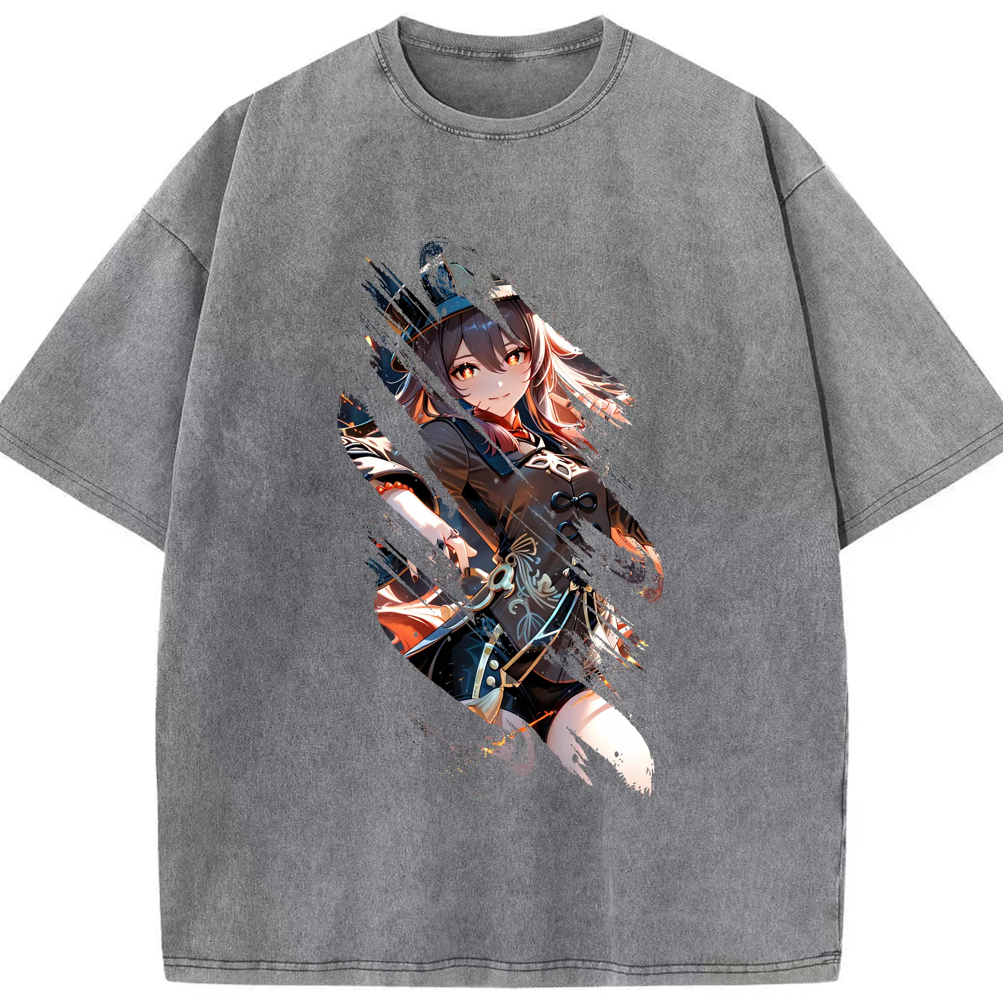 原 神 グッズ フータオ - 綿100% ヴィンテージ風 半袖Tシャツ ・ 背面プリント ・ 柔らか肌触り ・ 通気性 快適 ・ スポーツ カジュアル 外出用