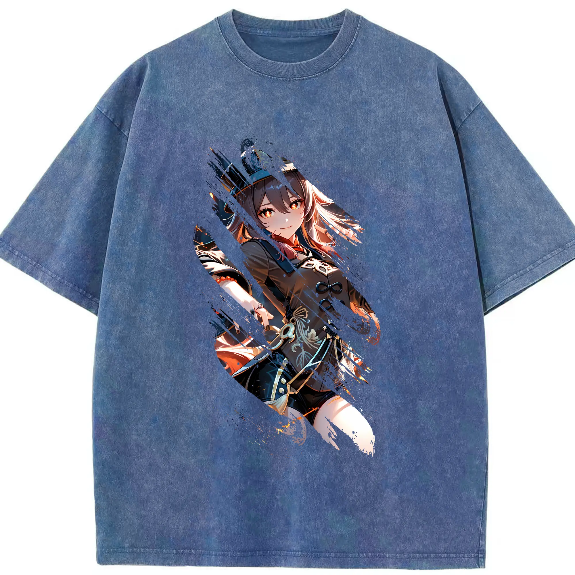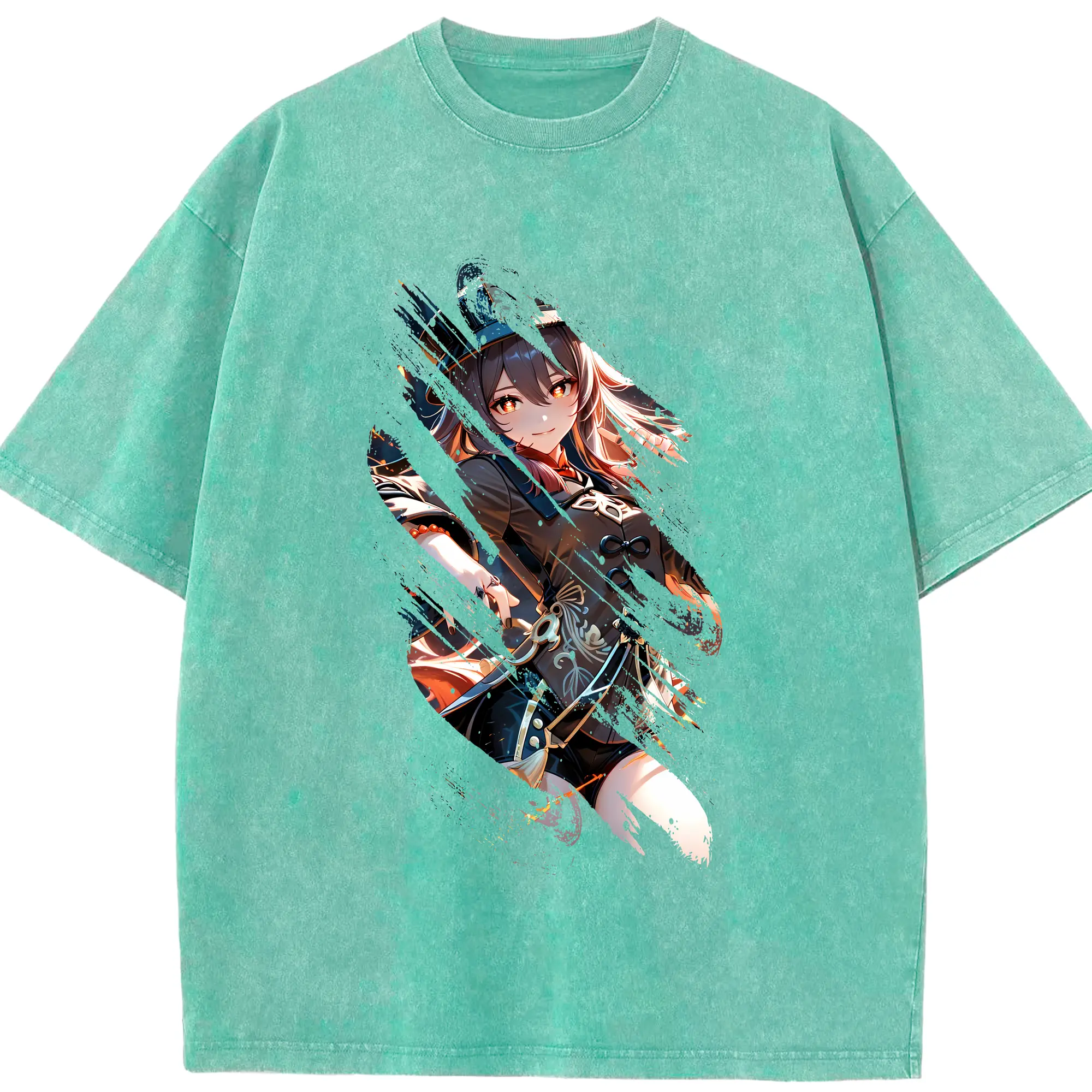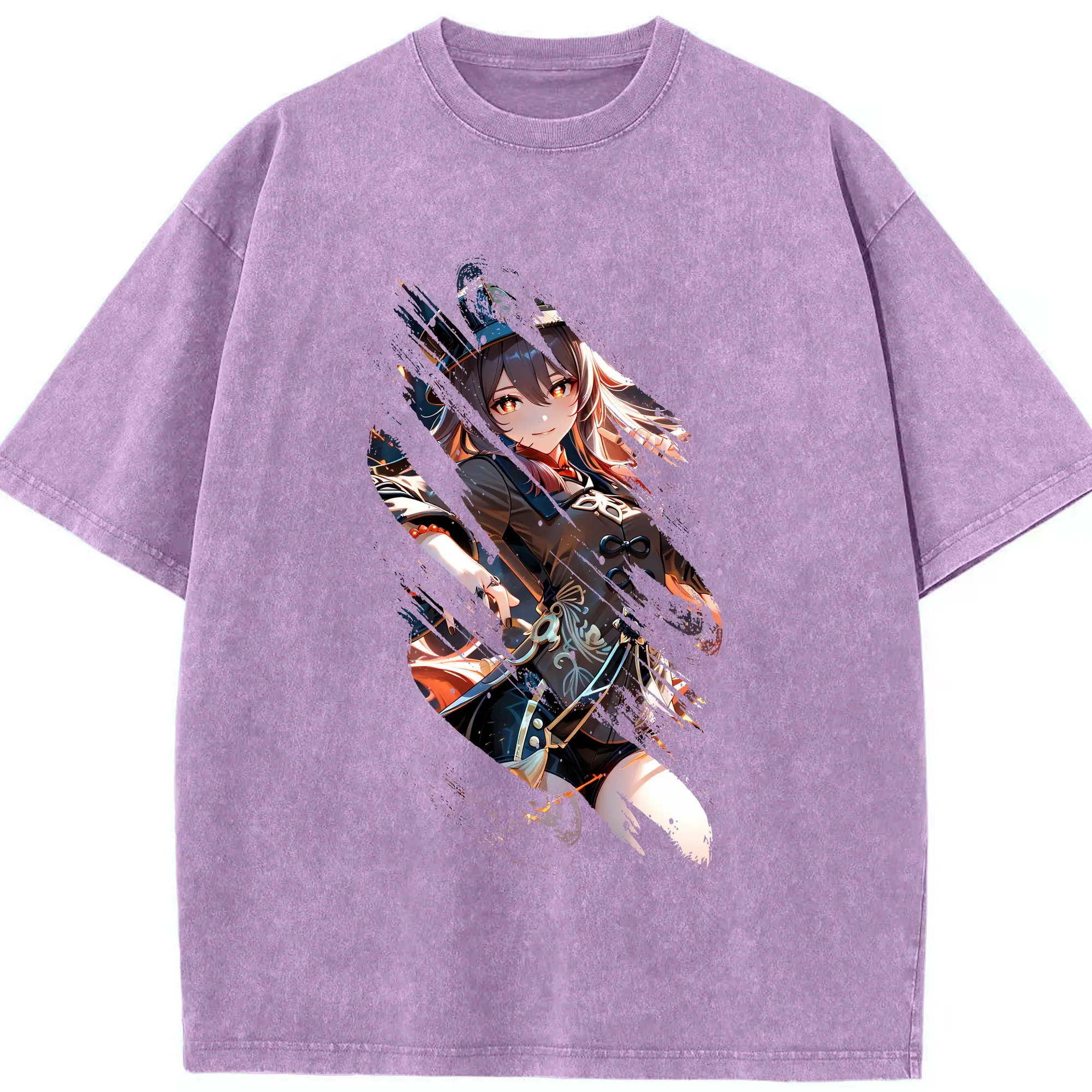 原 神 グッズ フータオ - 綿100% ヴィンテージ風 半袖Tシャツ ・ 背面プリント ・ 柔らか肌触り ・ 通気性 快適 ・ スポーツ カジュアル 外出用