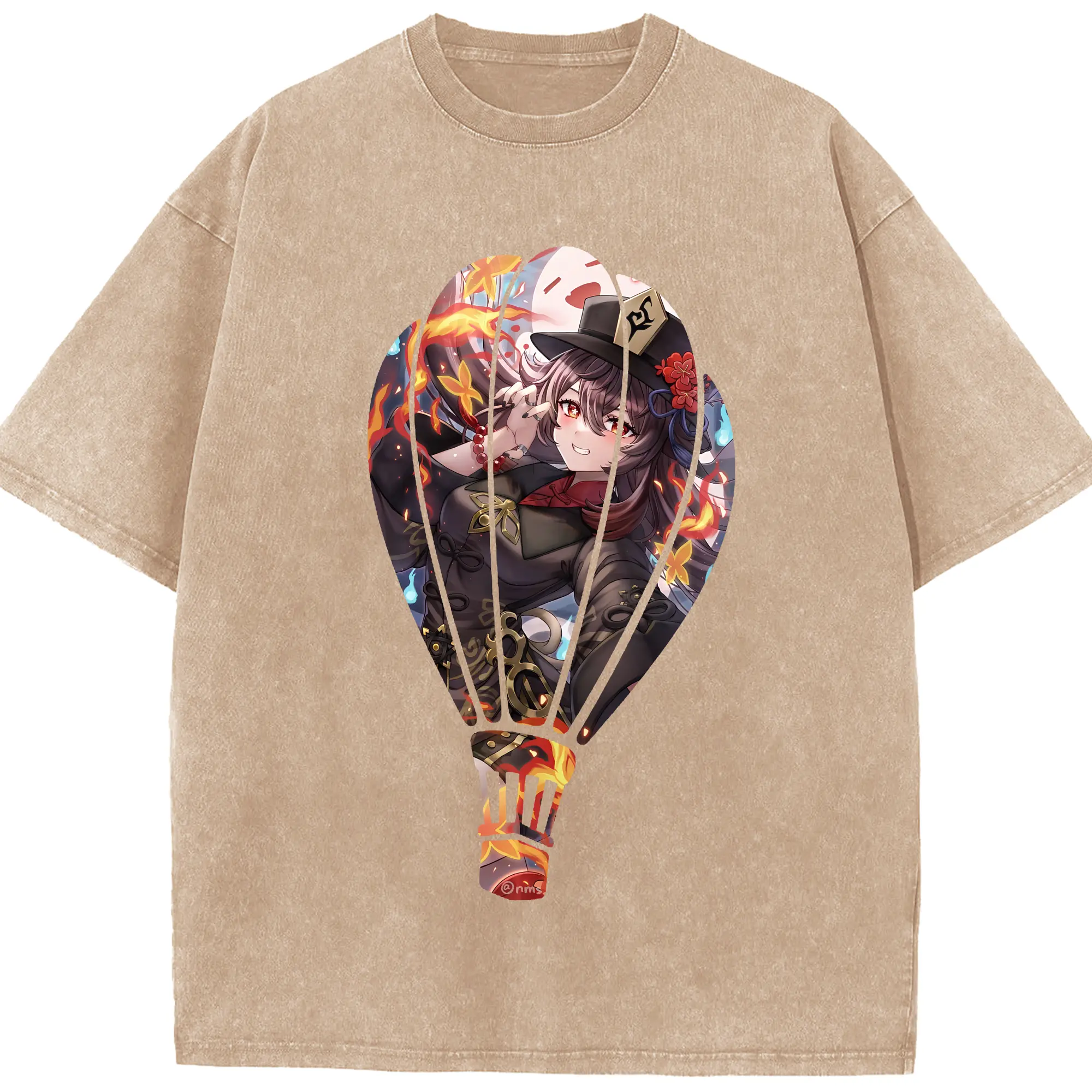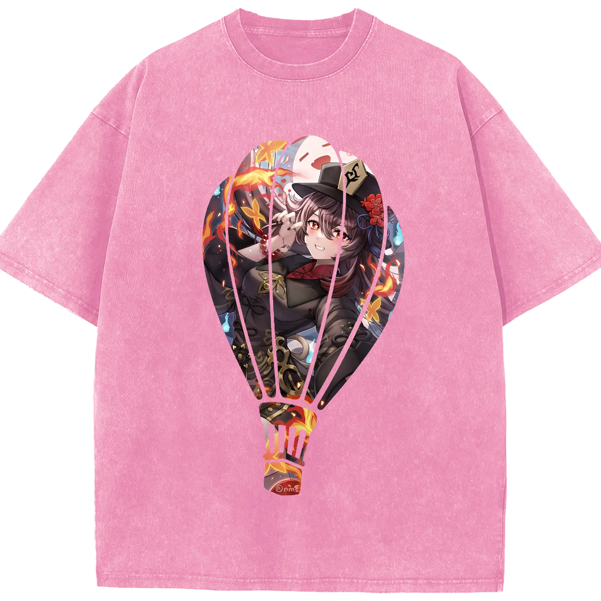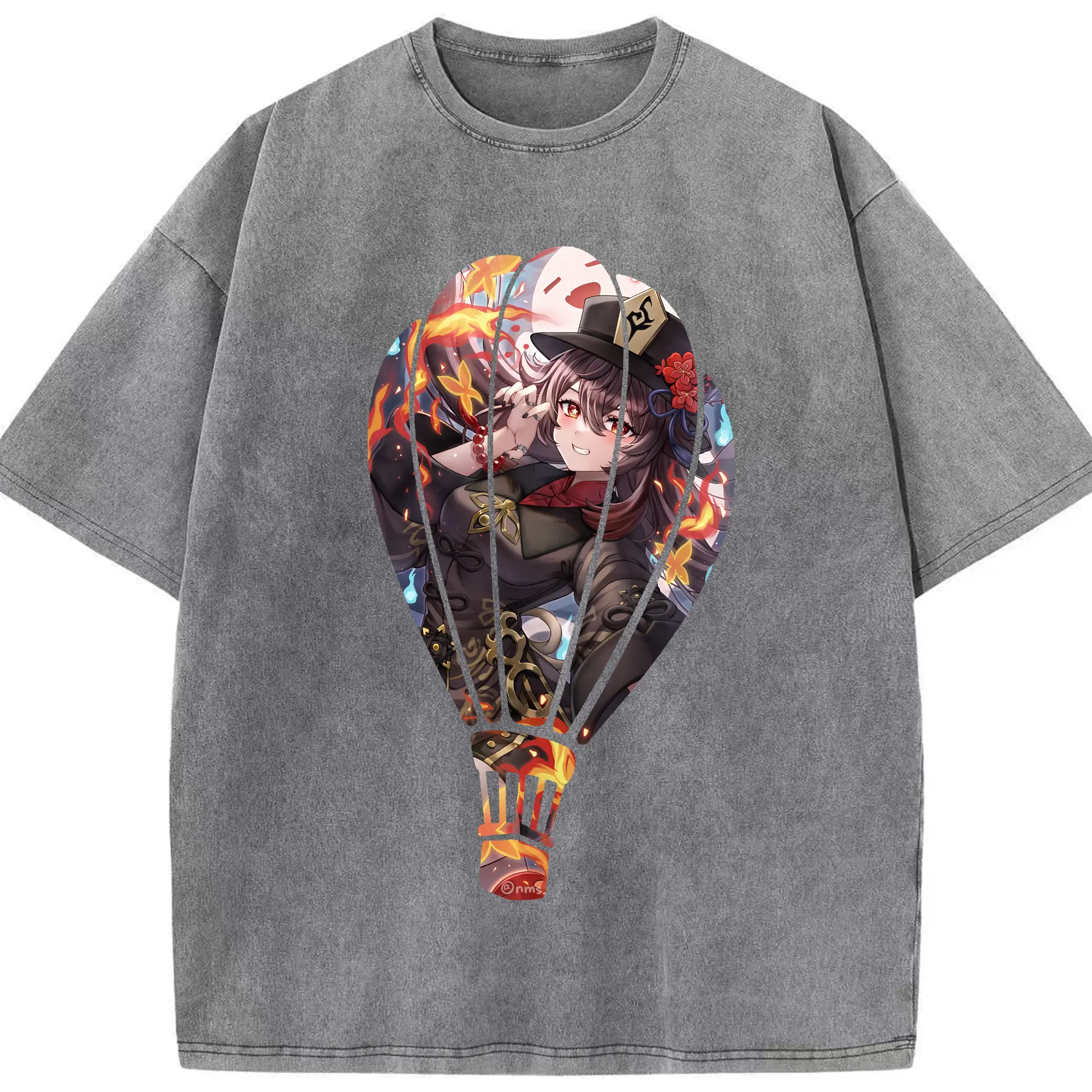 原 神 グッズ フータオ - 綿100% ヴィンテージ風 半袖Tシャツ ・ 背面プリント ・ 柔らか肌触り ・ 通気性 快適 ・ スポーツ カジュアル 外出用