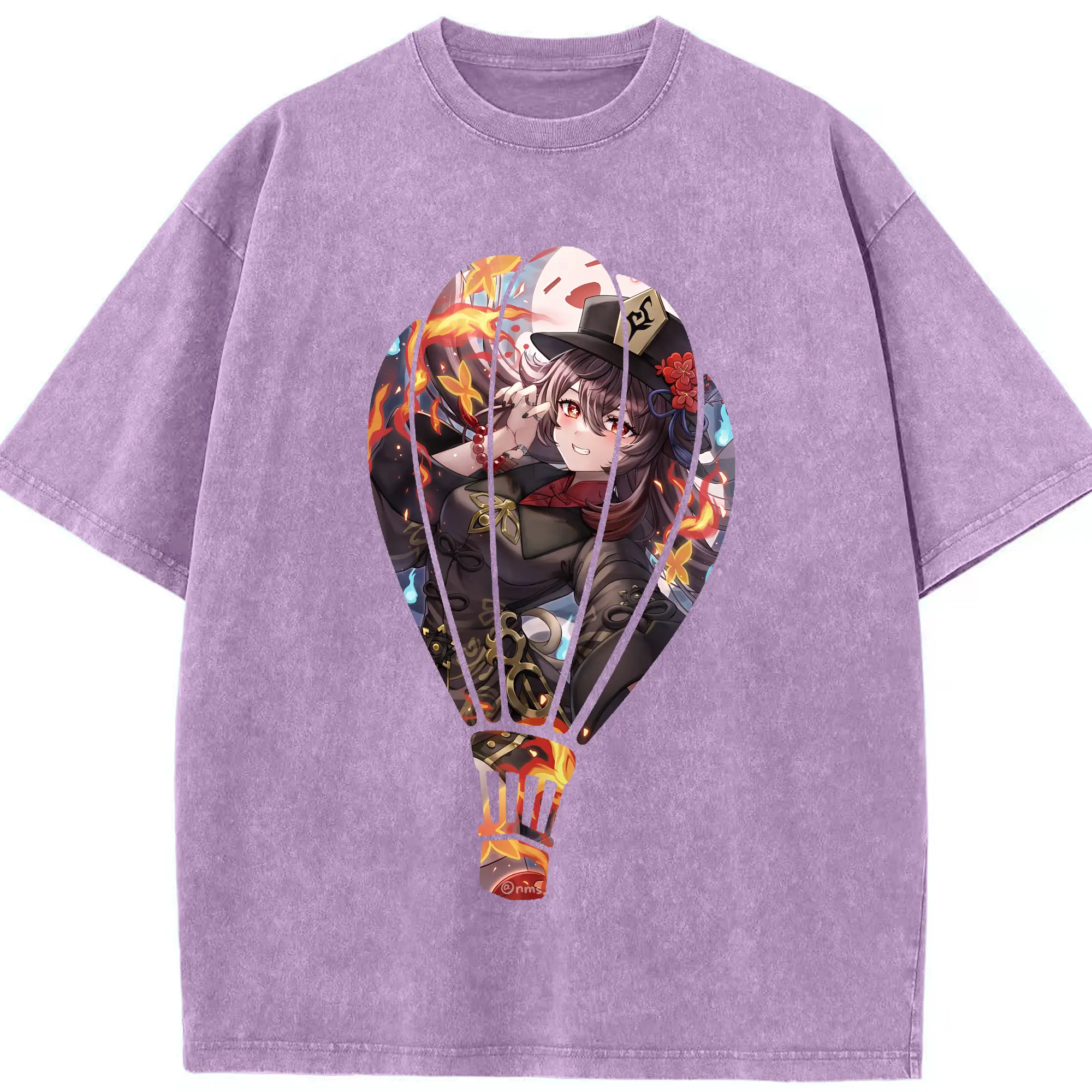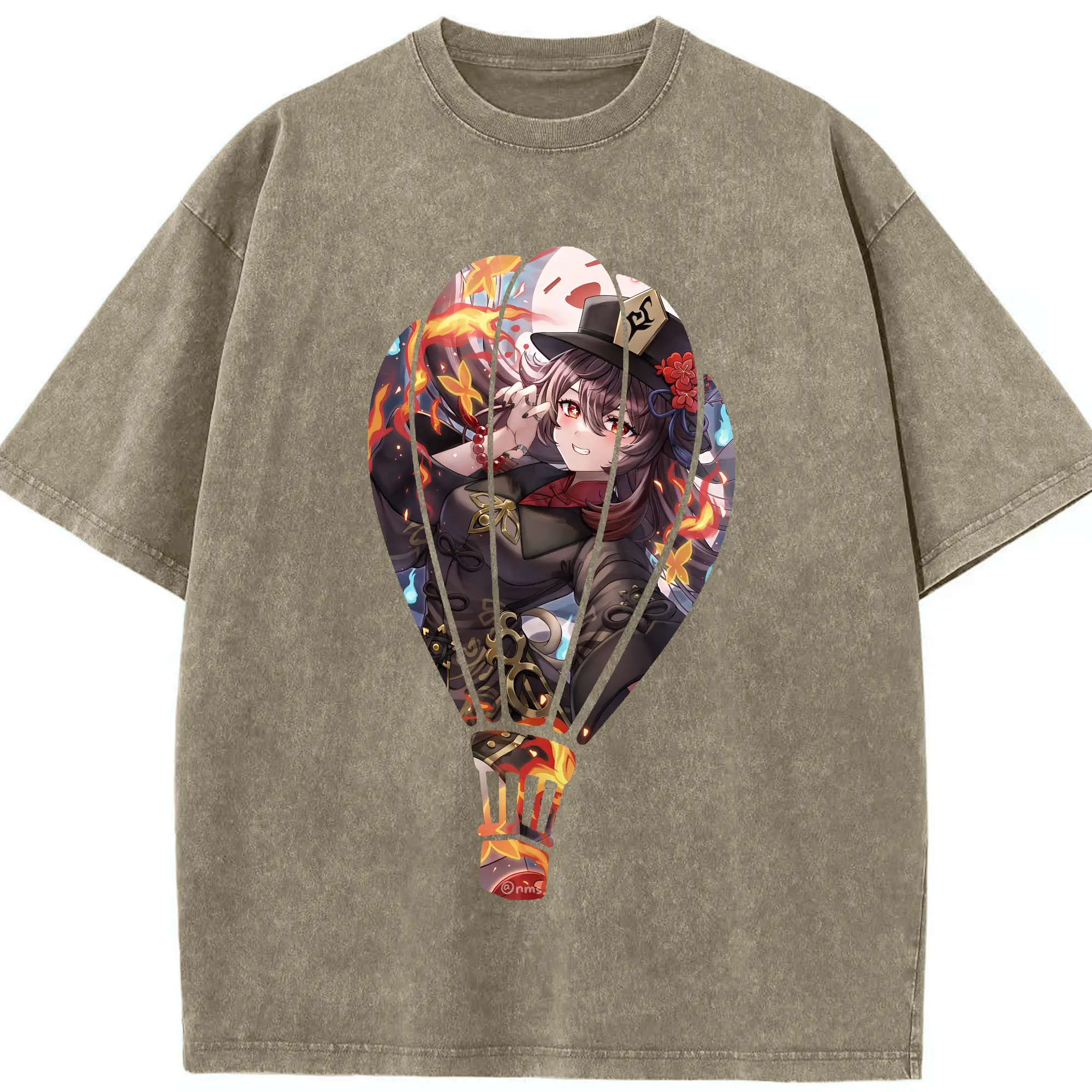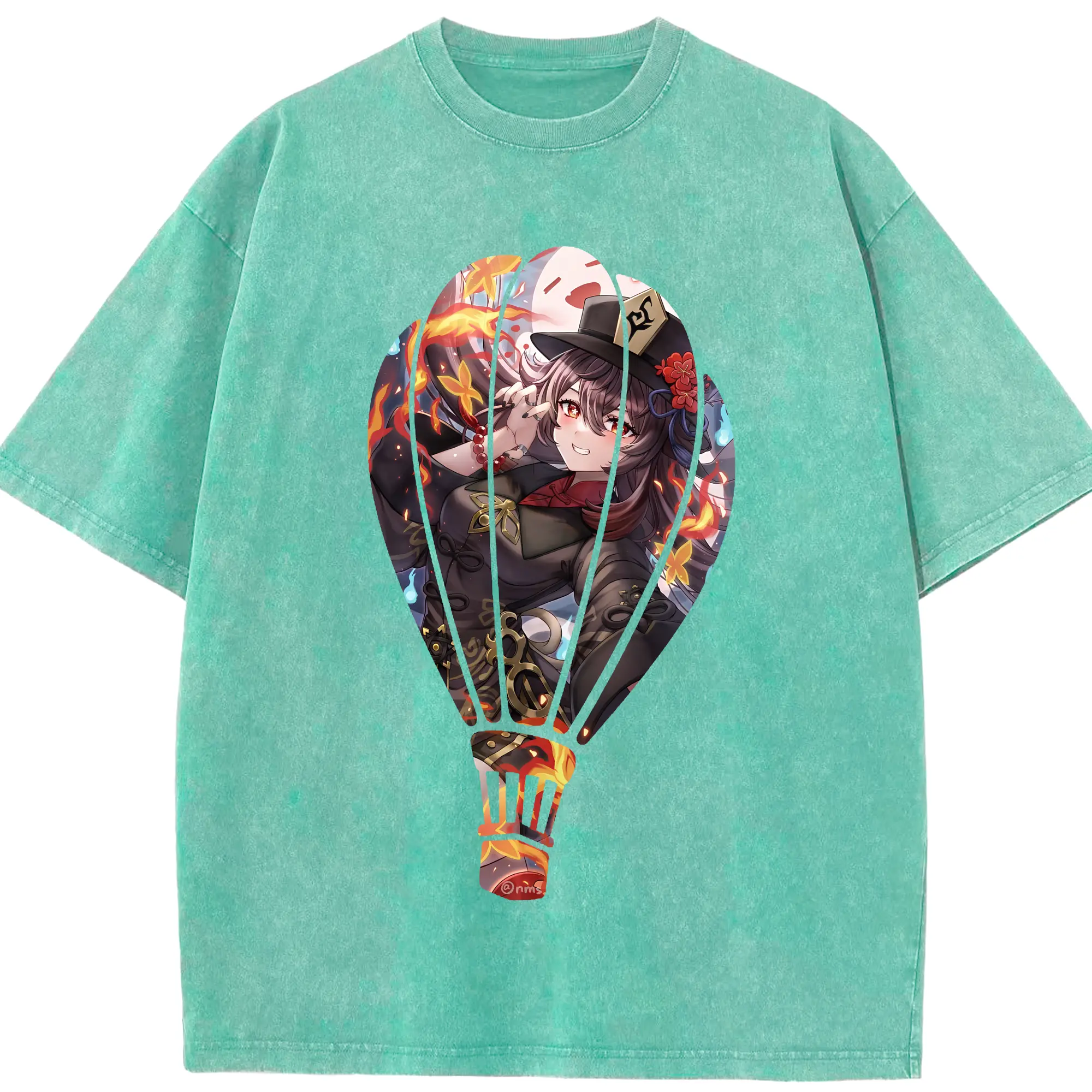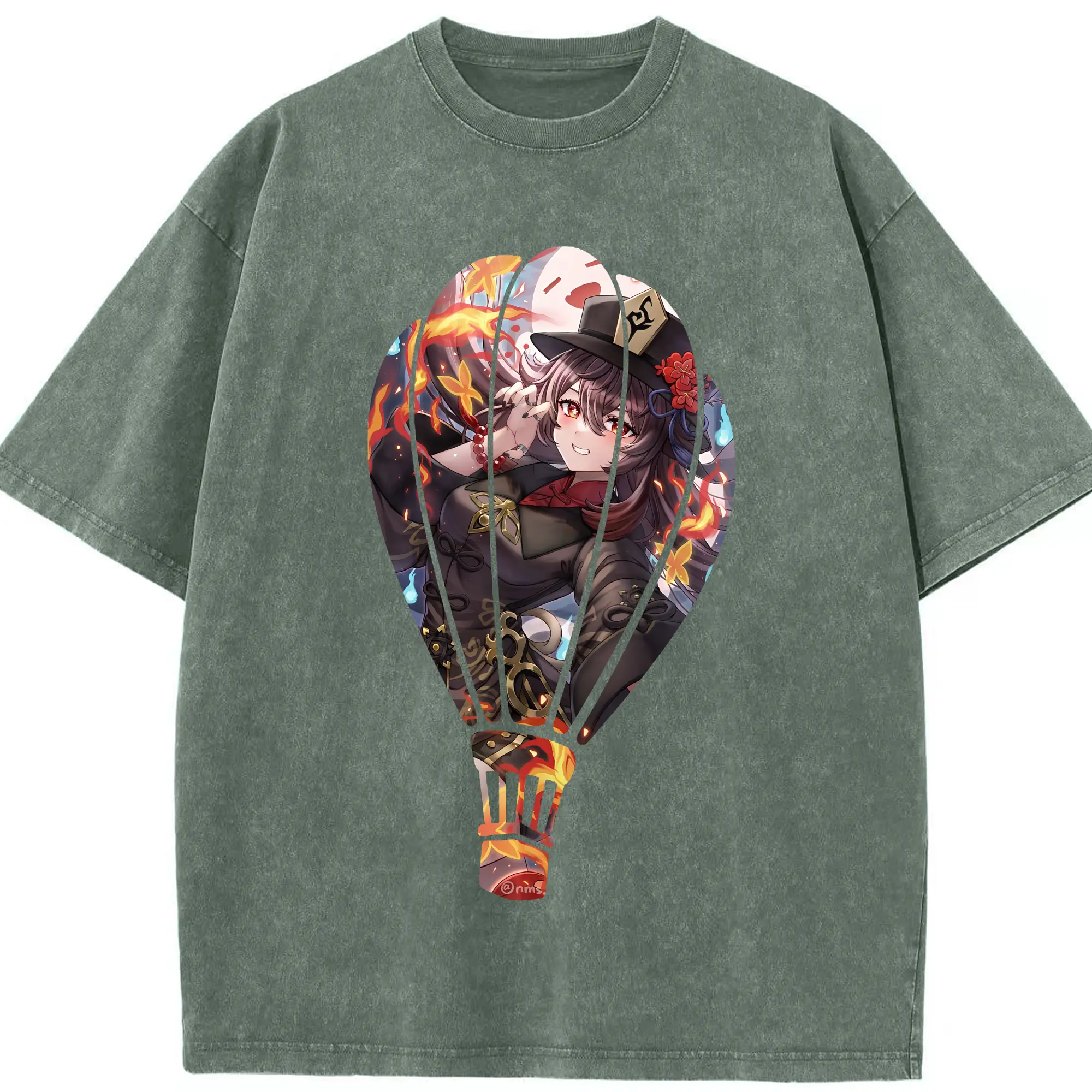 原 神 グッズ フータオ - 綿100% ヴィンテージ風 半袖Tシャツ ・ 背面プリント ・ 柔らか肌触り ・ 通気性 快適 ・ スポーツ カジュアル 外出用