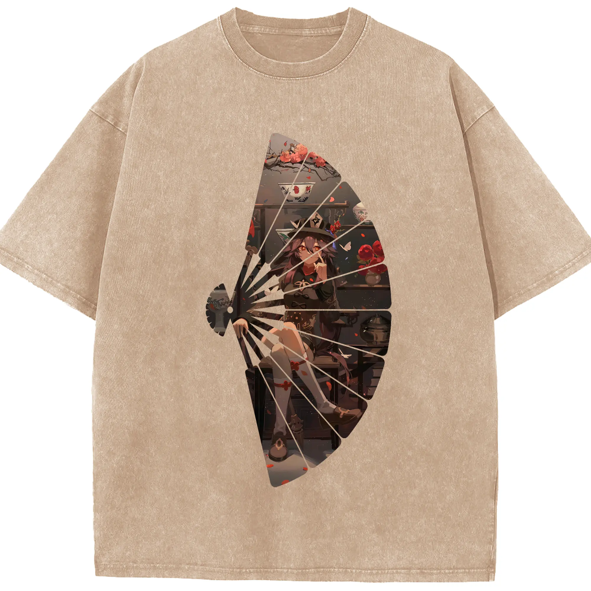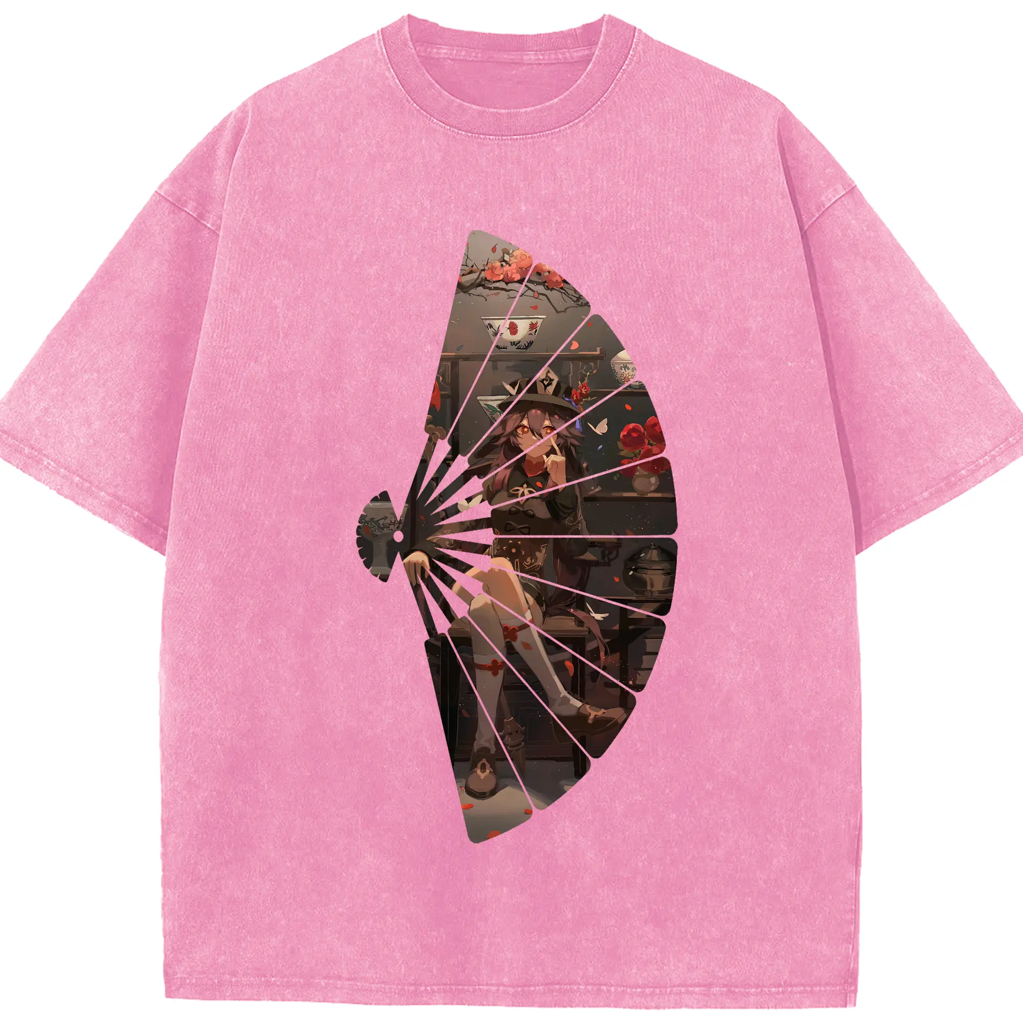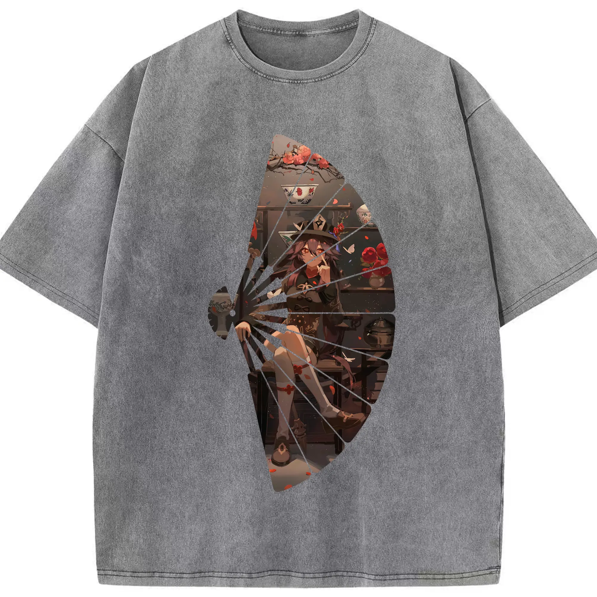 原 神 グッズ フータオ - 綿100% ヴィンテージ風 半袖Tシャツ ・ 背面プリント ・ 柔らか肌触り ・ 通気性 快適 ・ スポーツ カジュアル 外出用