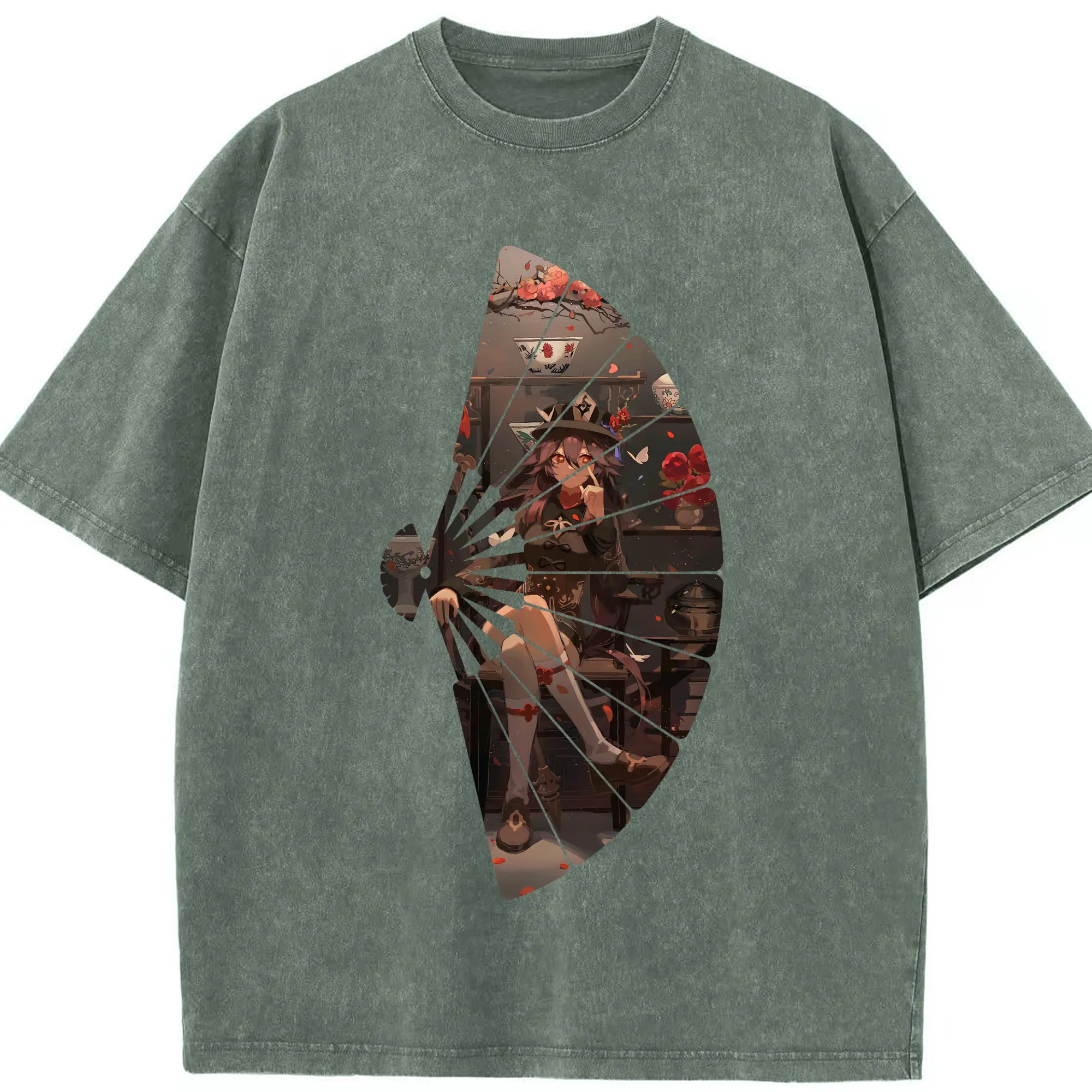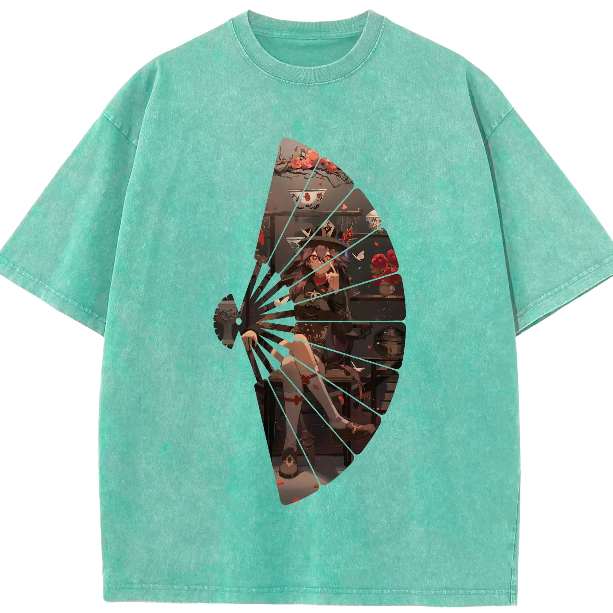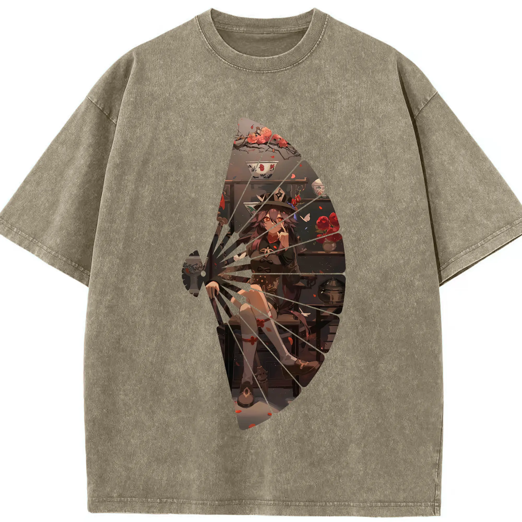 原 神 グッズ フータオ - 綿100% ヴィンテージ風 半袖Tシャツ ・ 背面プリント ・ 柔らか肌触り ・ 通気性 快適 ・ スポーツ カジュアル 外出用
