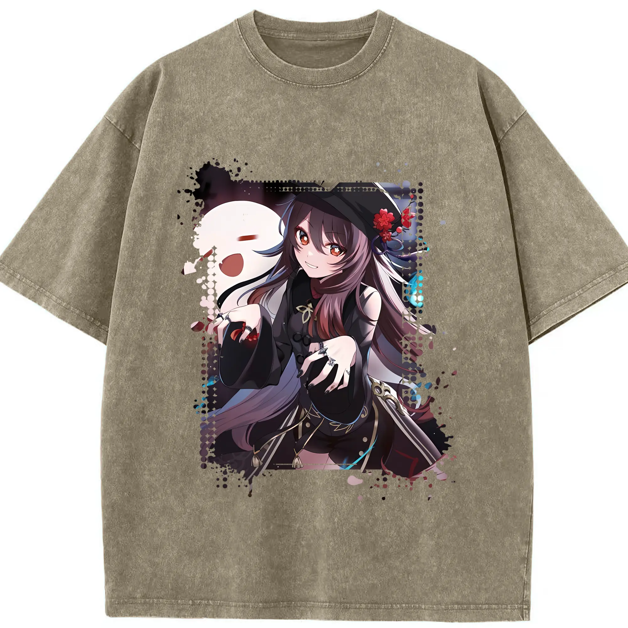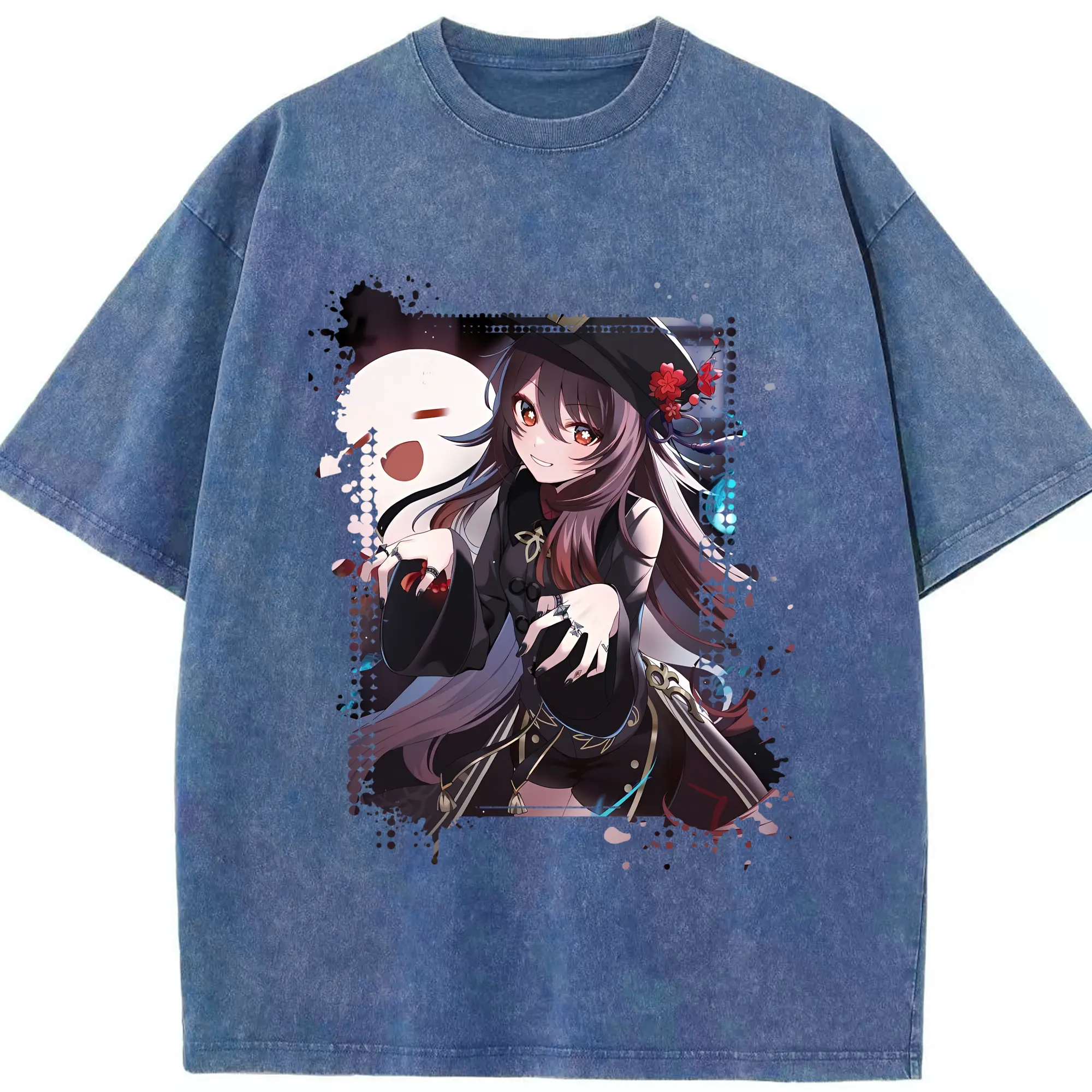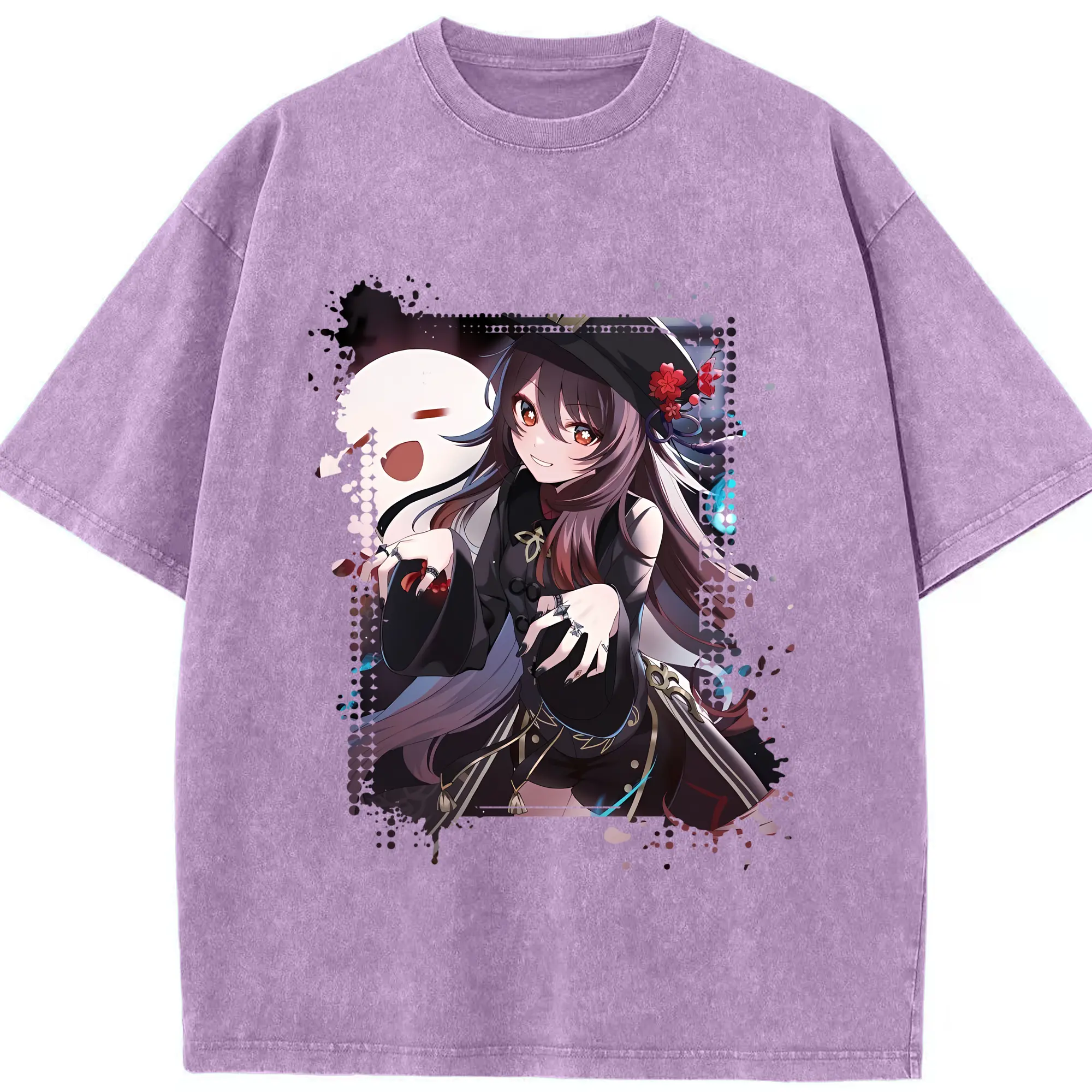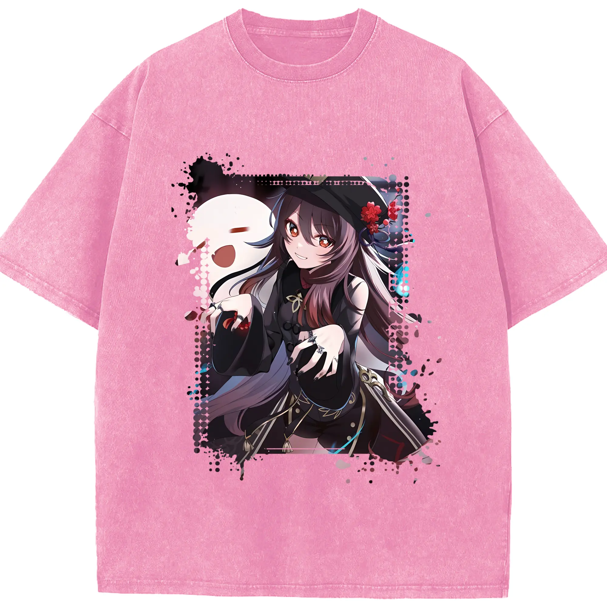 原 神 グッズ フータオ - 綿100% ヴィンテージ風 半袖Tシャツ ・ 背面プリント ・ 柔らか肌触り ・ 通気性 快適 ・ スポーツ カジュアル 外出用