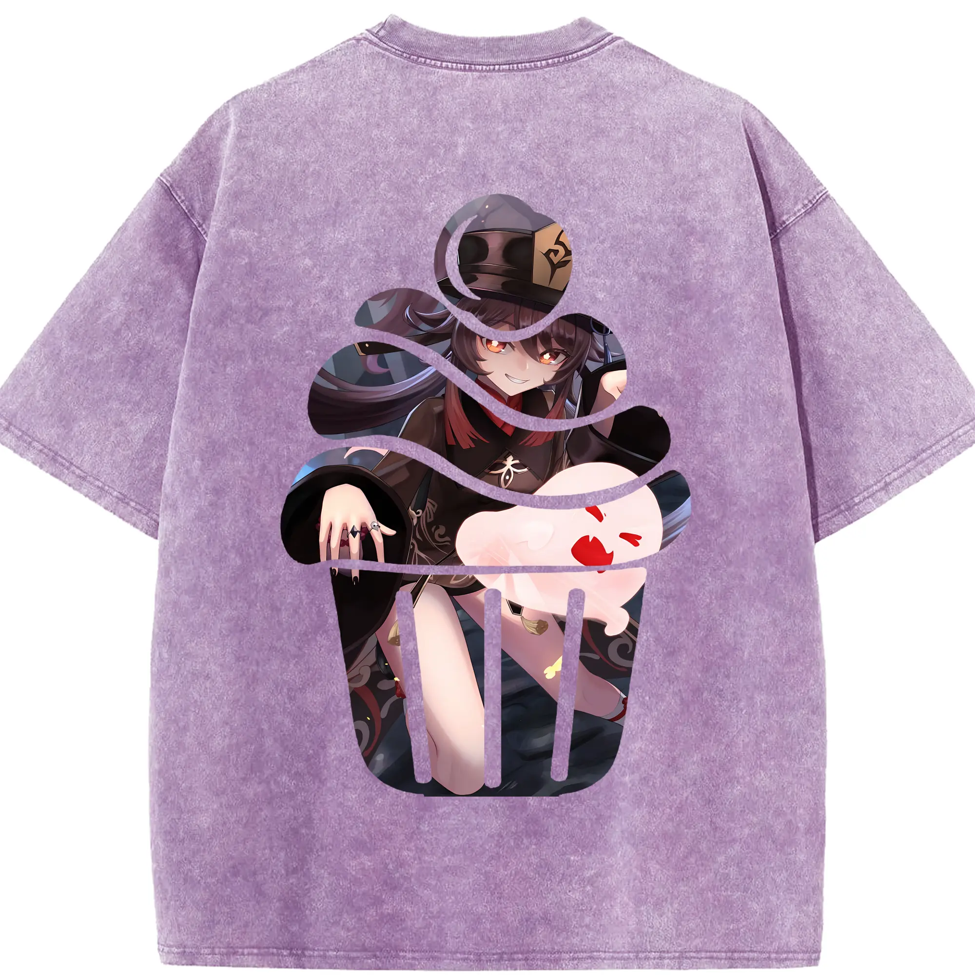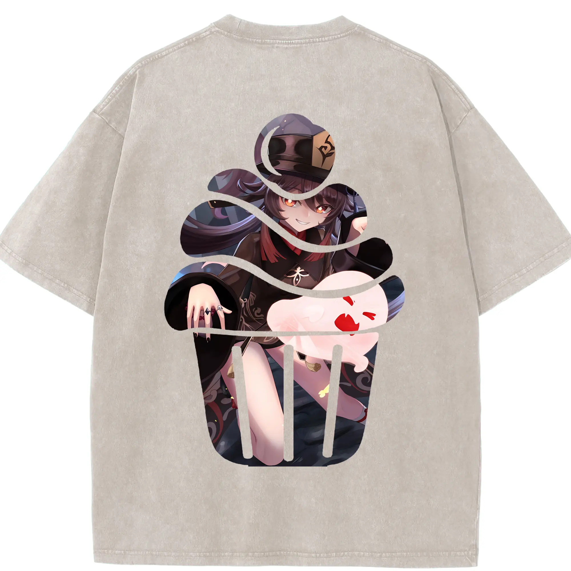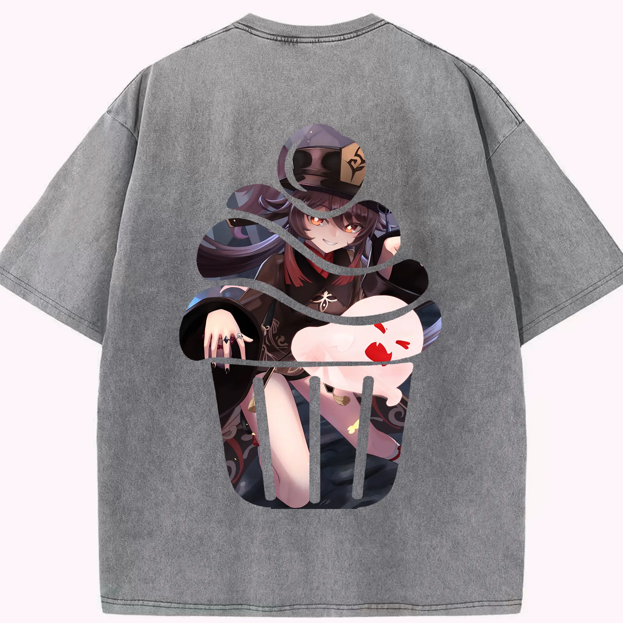 原 神 グッズ フータオ - 綿100% ヴィンテージ風 半袖Tシャツ ・ フロントプリント ・ 柔らか肌触り ・ 通気性 快適 ・ スポーツ カジュアル 外出用
