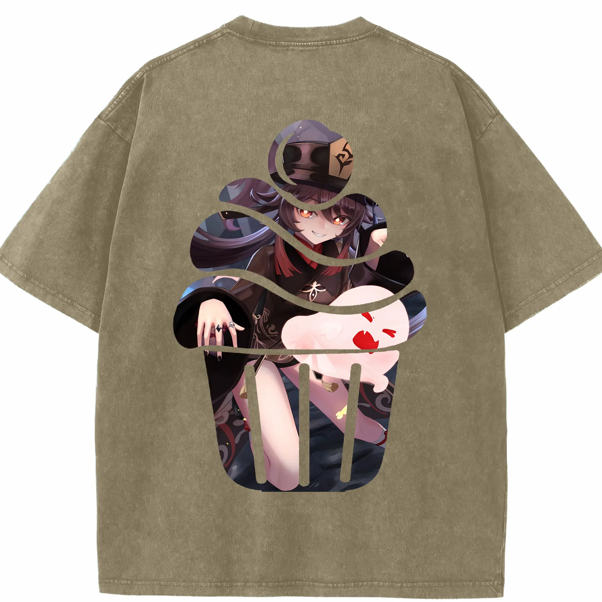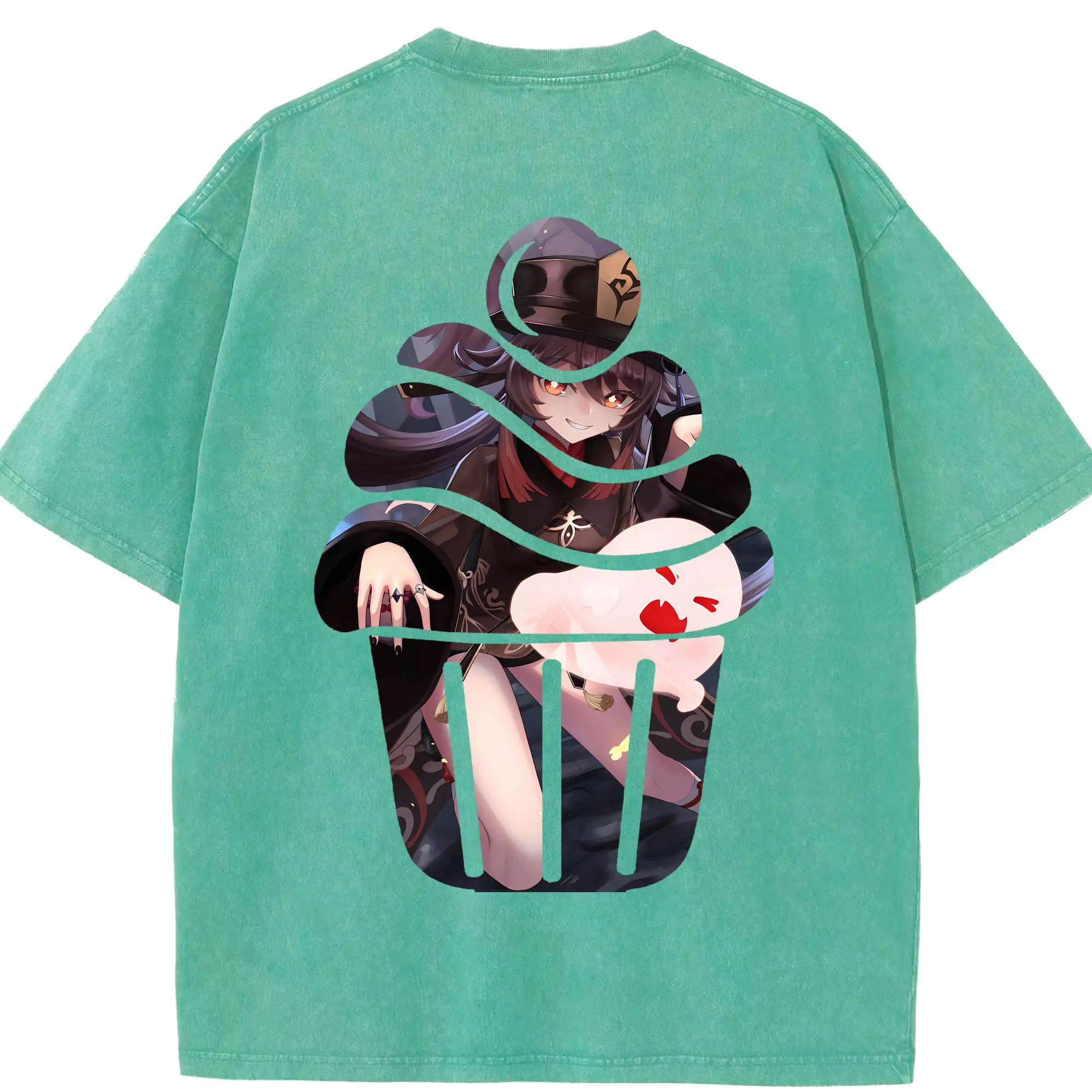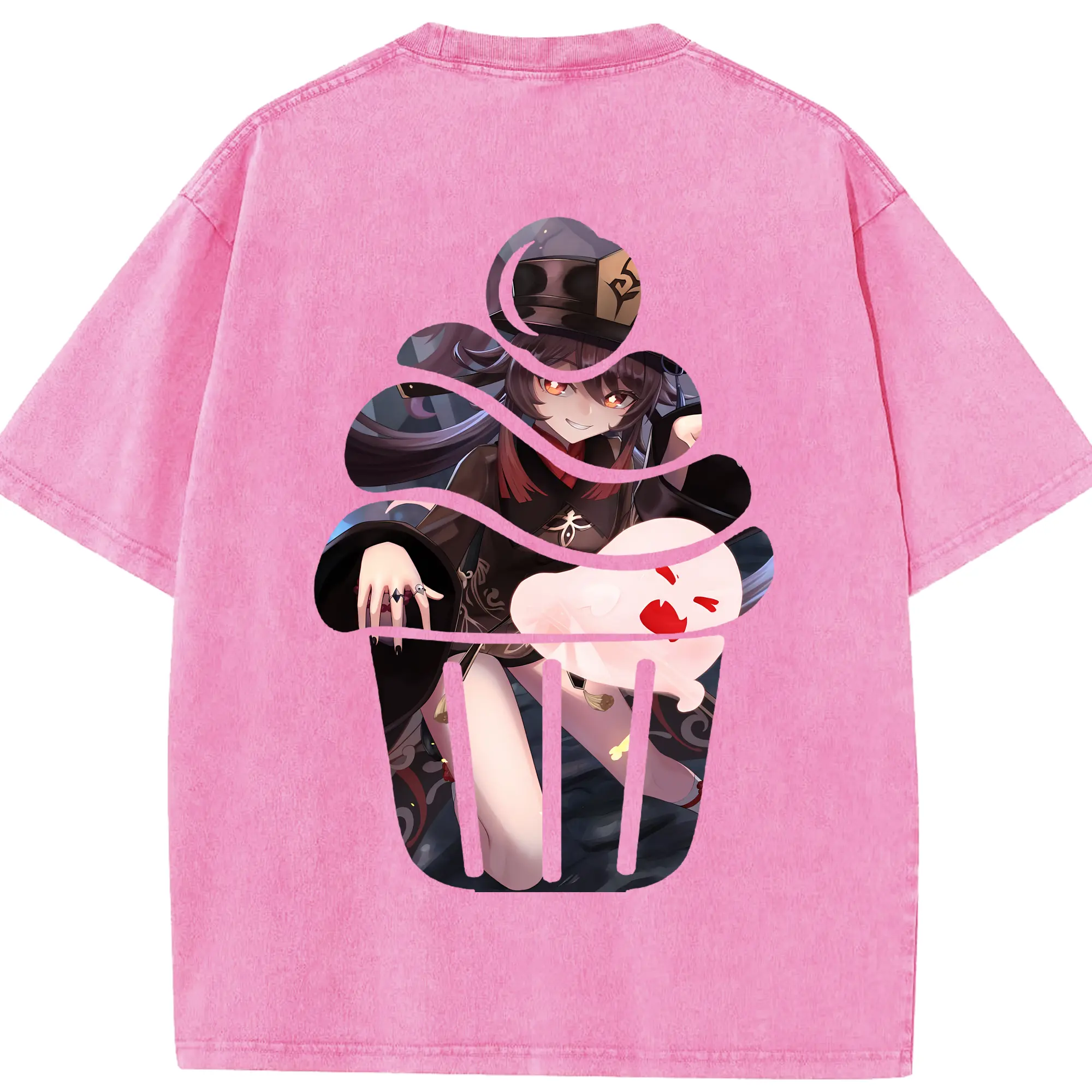 原 神 グッズ フータオ - 綿100% ヴィンテージ風 半袖Tシャツ ・ フロントプリント ・ 柔らか肌触り ・ 通気性 快適 ・ スポーツ カジュアル 外出用