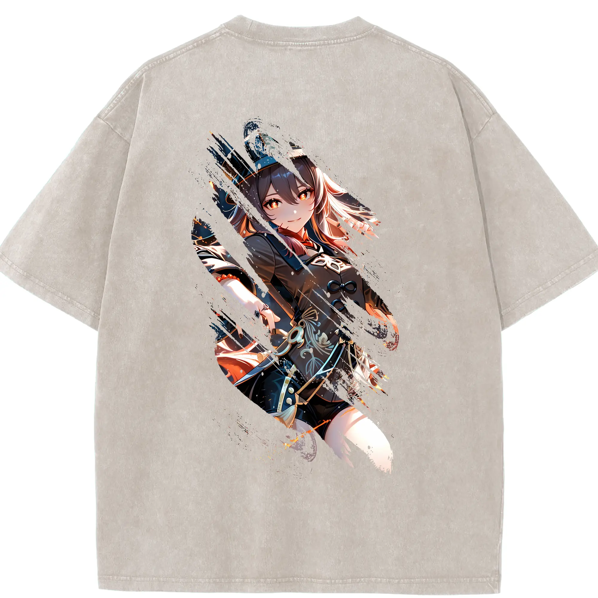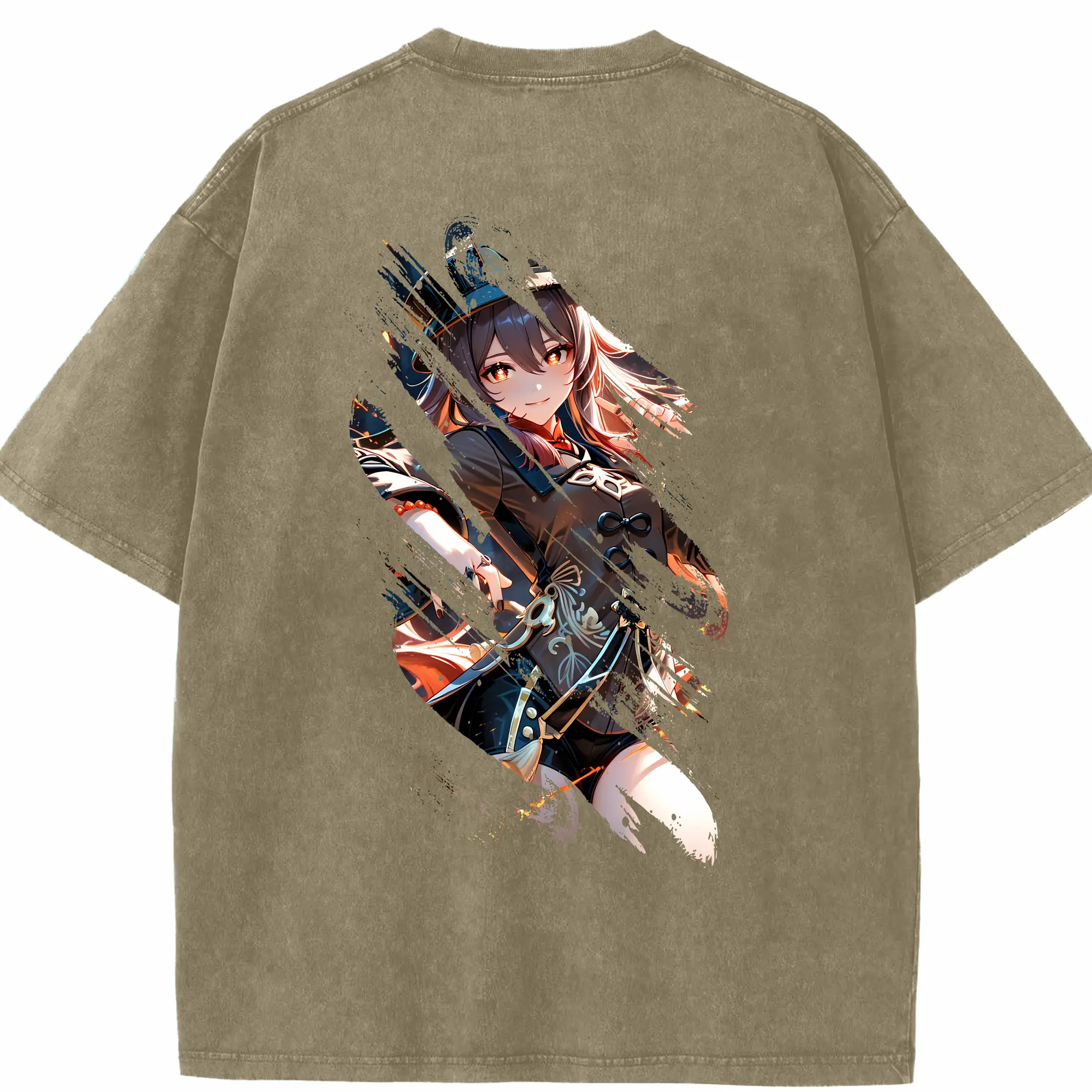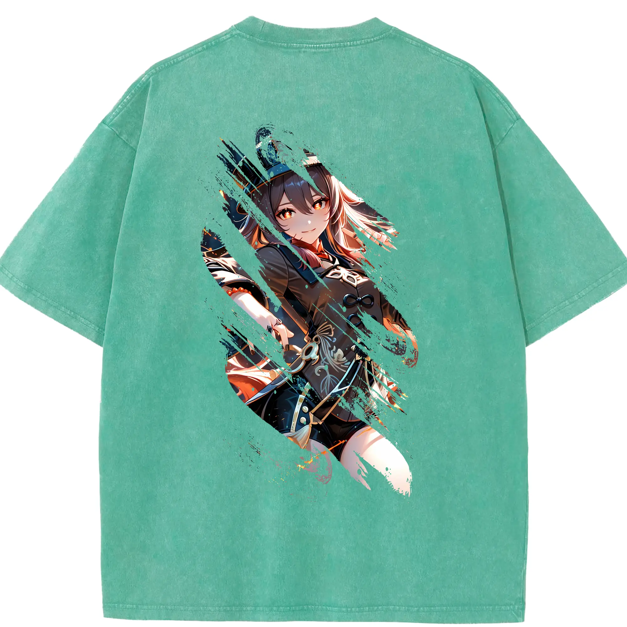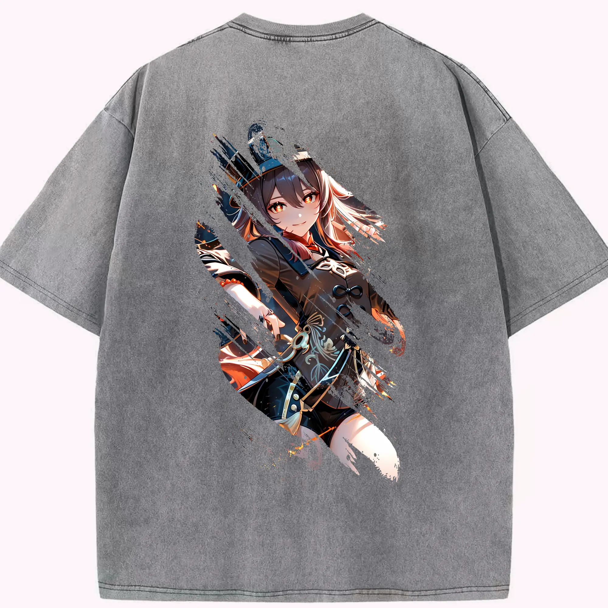 原 神 グッズ フータオ - 綿100% ヴィンテージ風 半袖Tシャツ ・ フロントプリント ・ 柔らか肌触り ・ 通気性 快適 ・ スポーツ カジュアル 外出用
