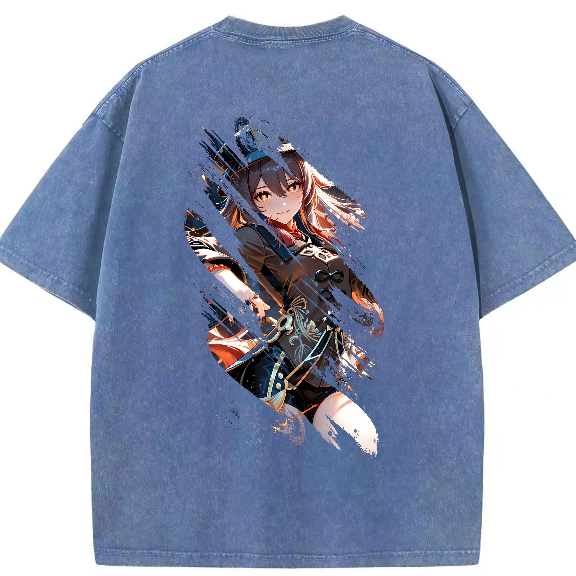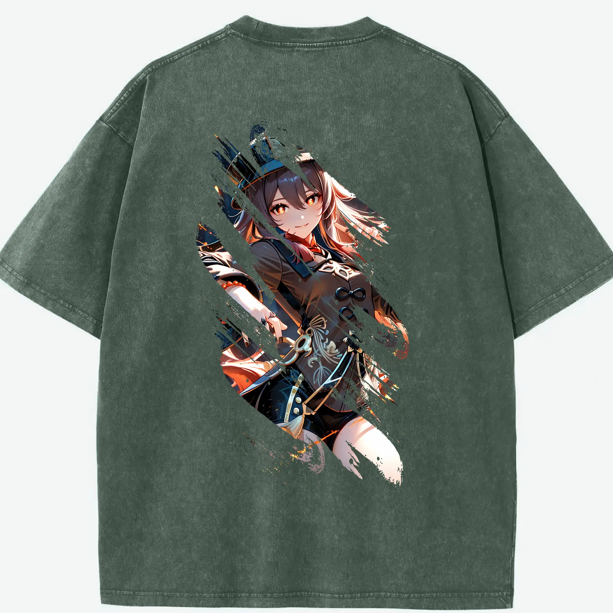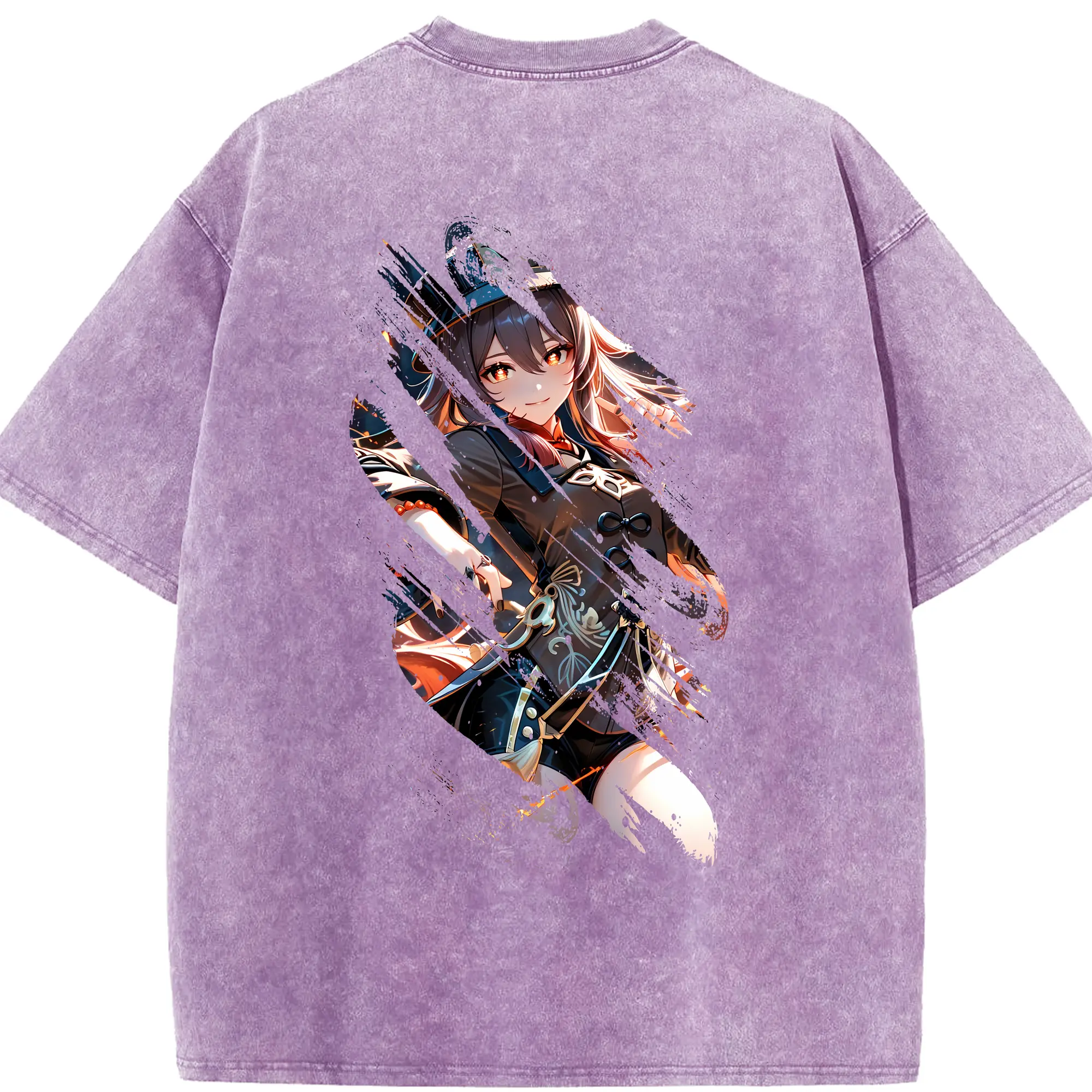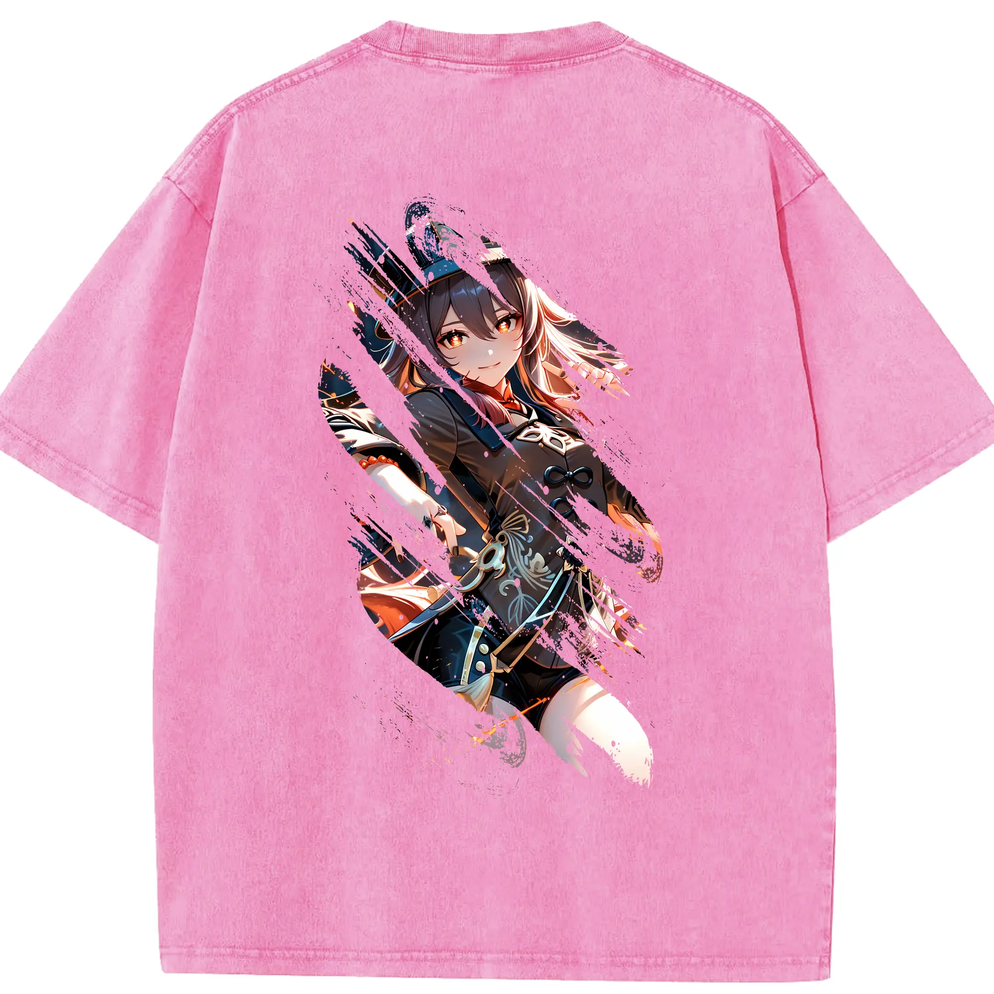 原 神 グッズ フータオ - 綿100% ヴィンテージ風 半袖Tシャツ ・ フロントプリント ・ 柔らか肌触り ・ 通気性 快適 ・ スポーツ カジュアル 外出用