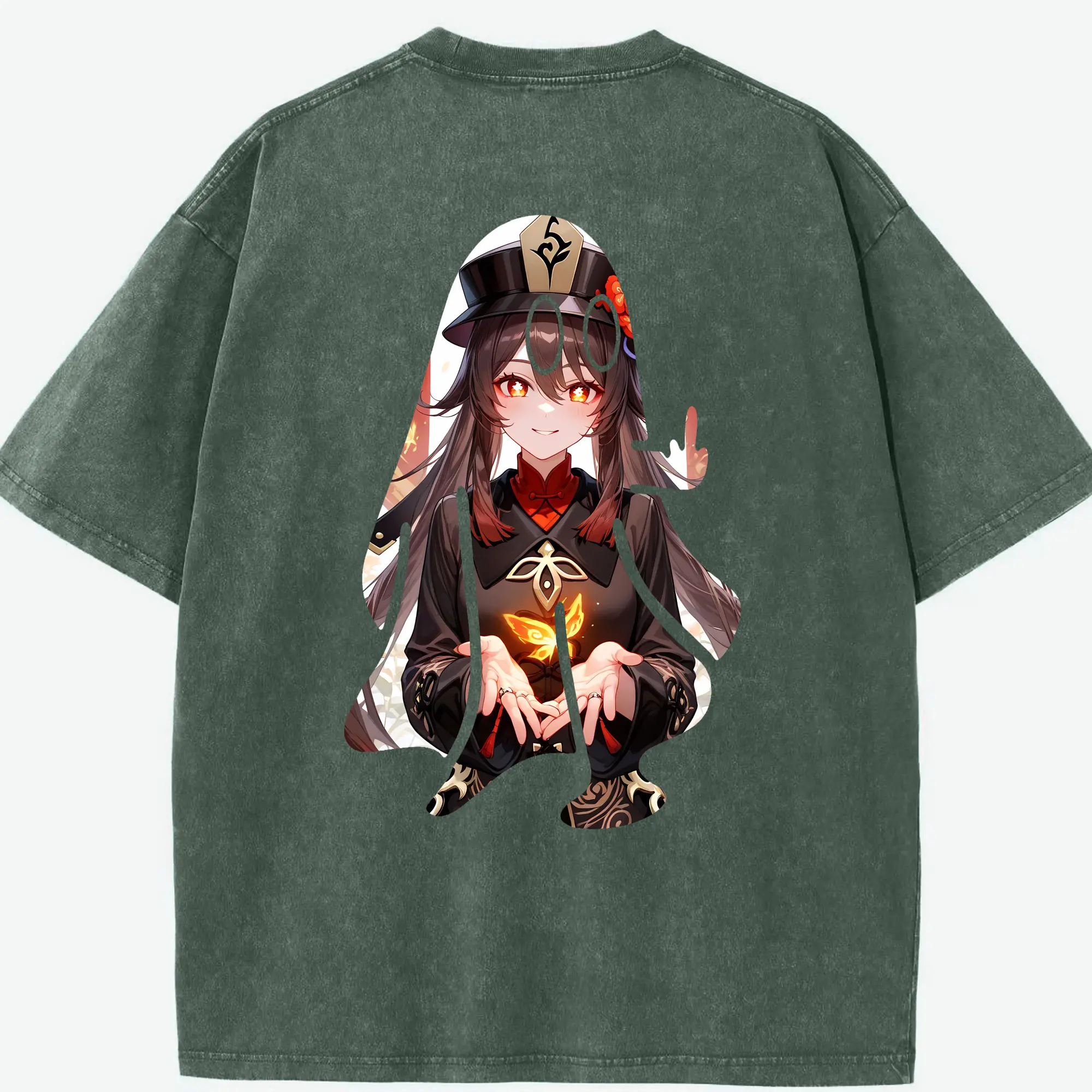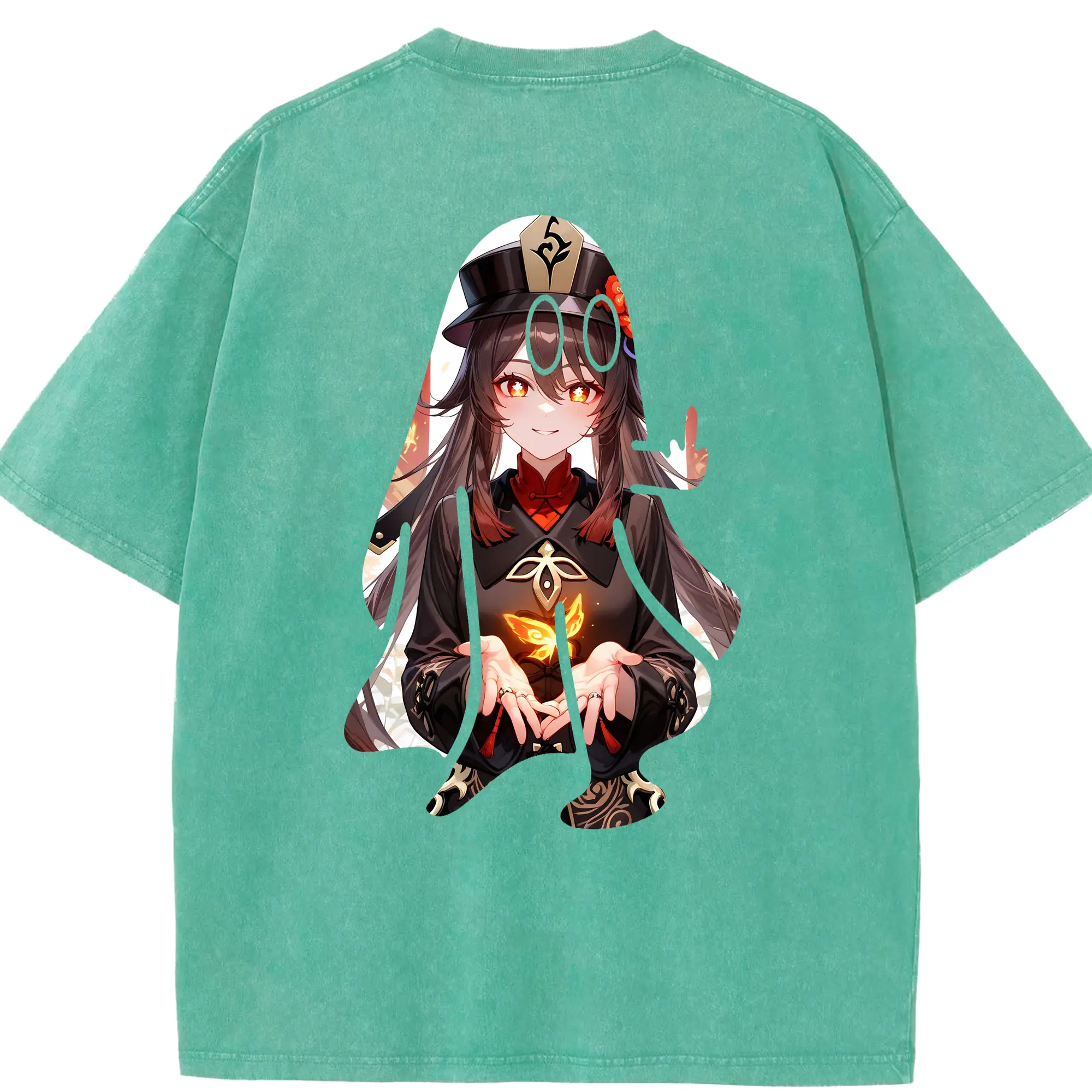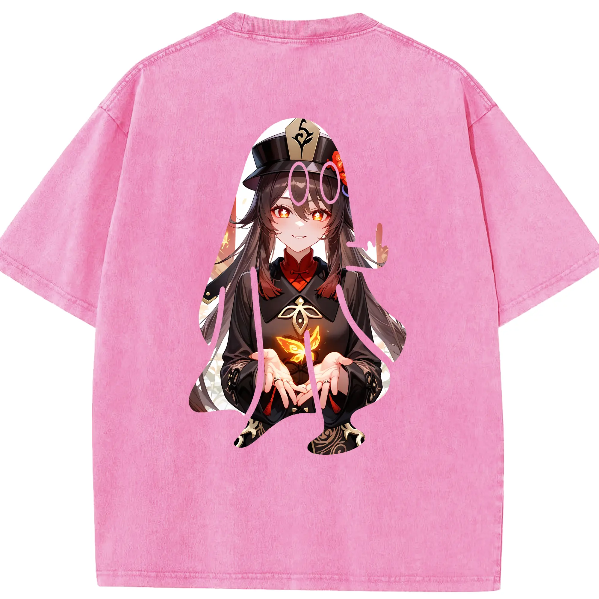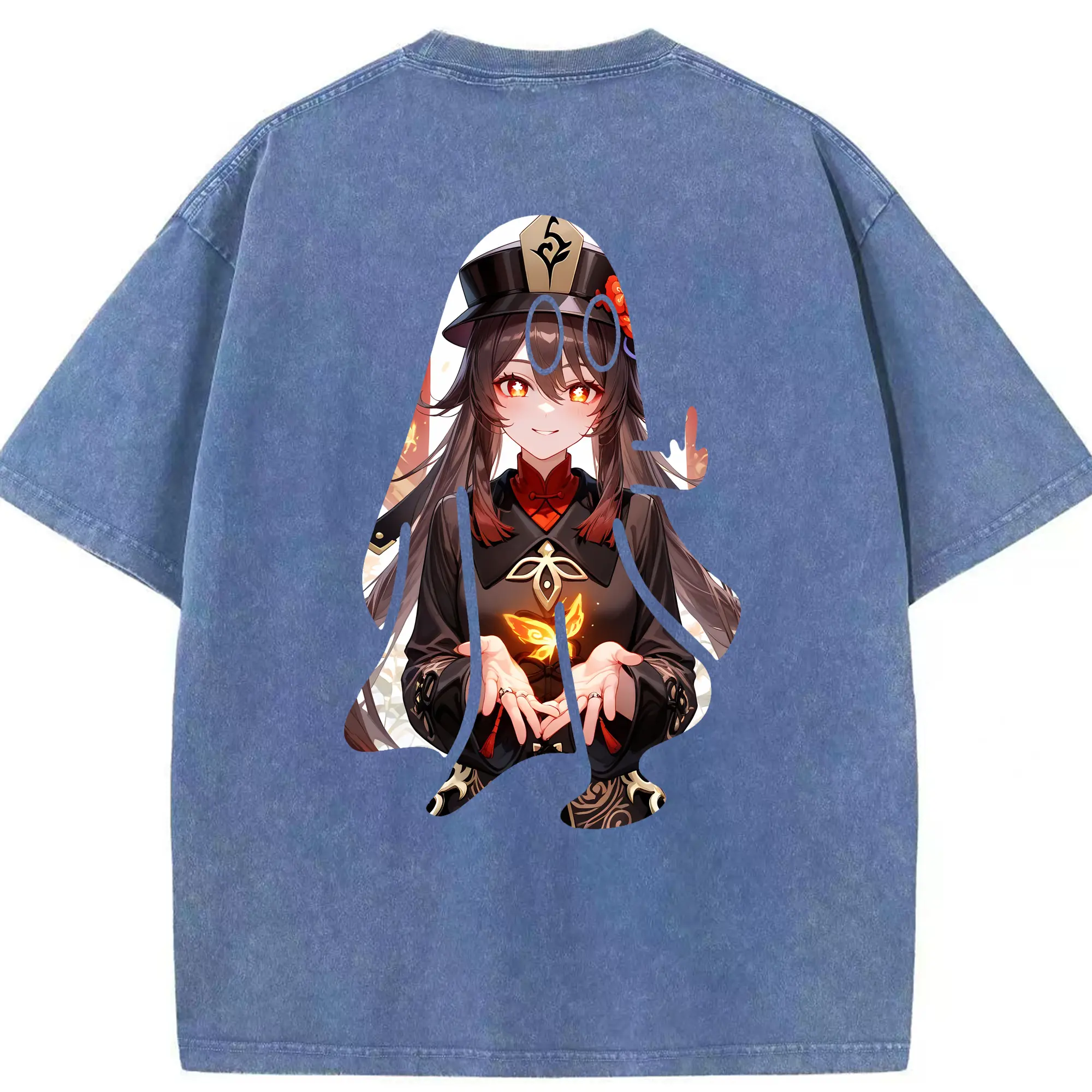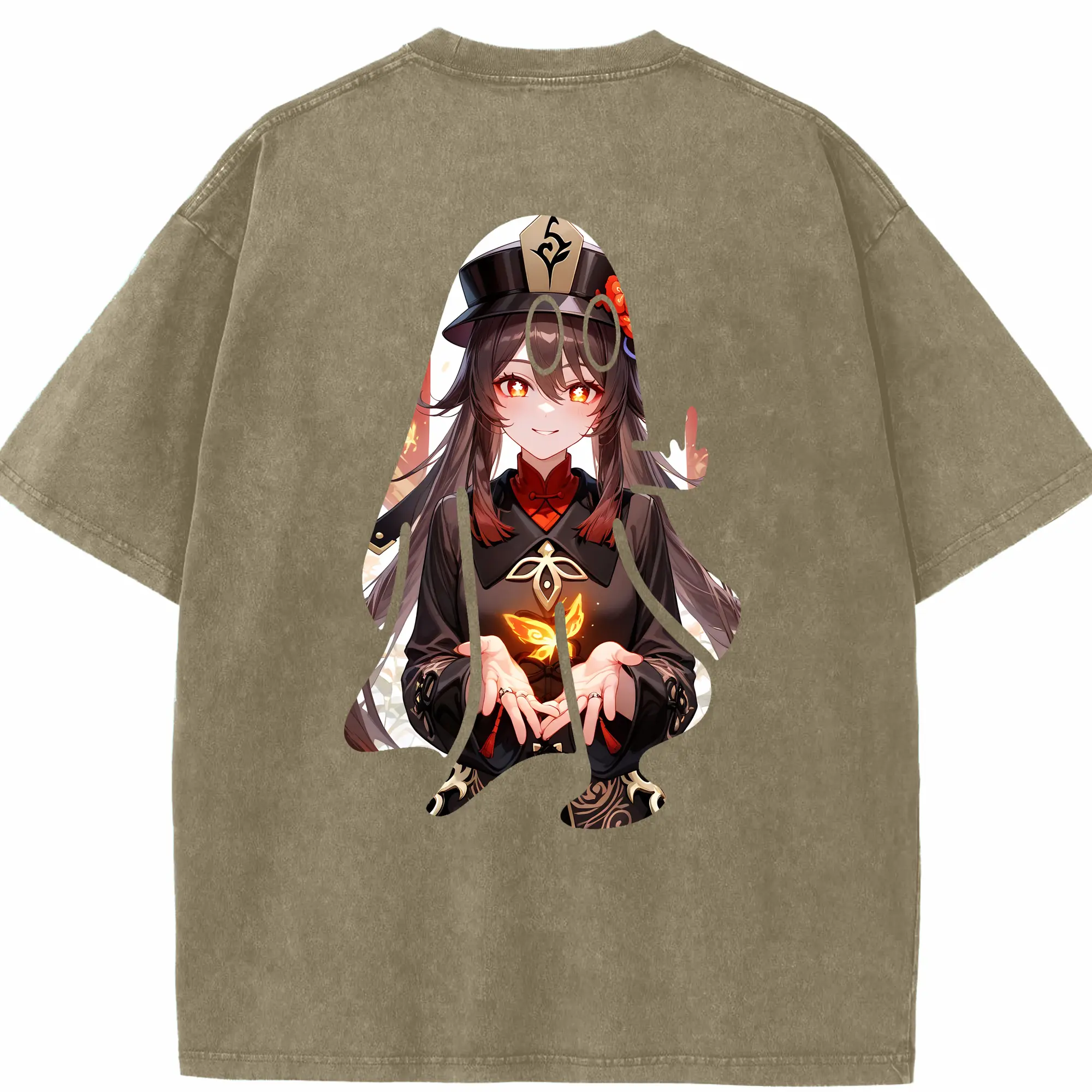 原 神 グッズ フータオ - 綿100% ヴィンテージ風 半袖Tシャツ ・ フロントプリント ・ 柔らか肌触り ・ 通気性 快適 ・ スポーツ カジュアル 外出用