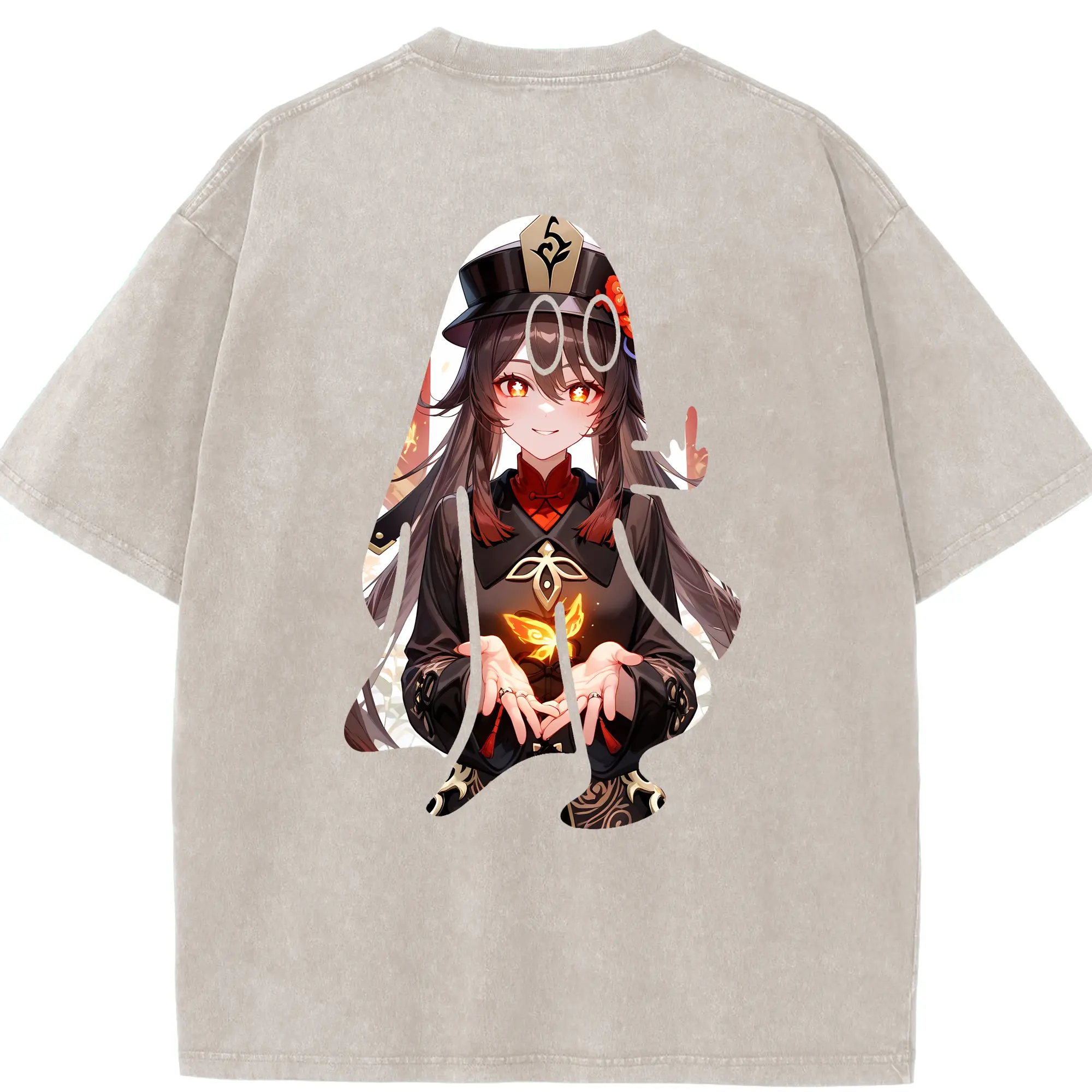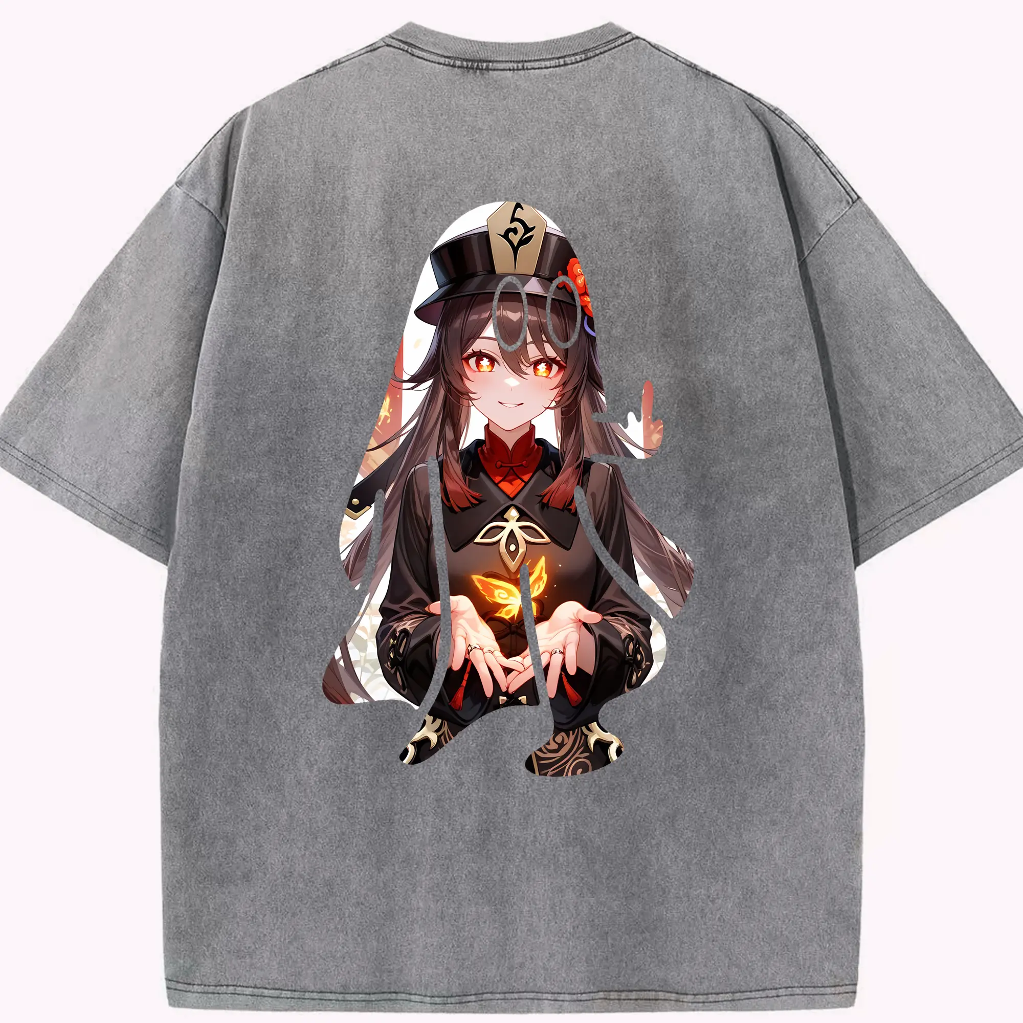 原 神 グッズ フータオ - 綿100% ヴィンテージ風 半袖Tシャツ ・ 背面プリント ・ 柔らか肌触り ・ 通気性 快適 ・ スポーツ カジュアル 外出用