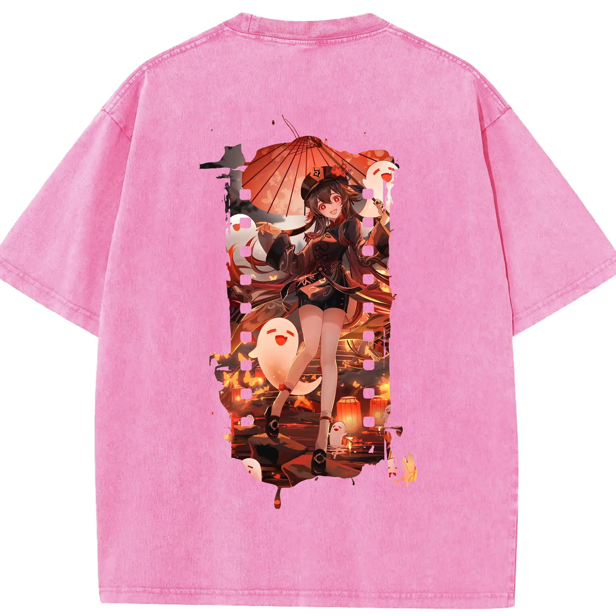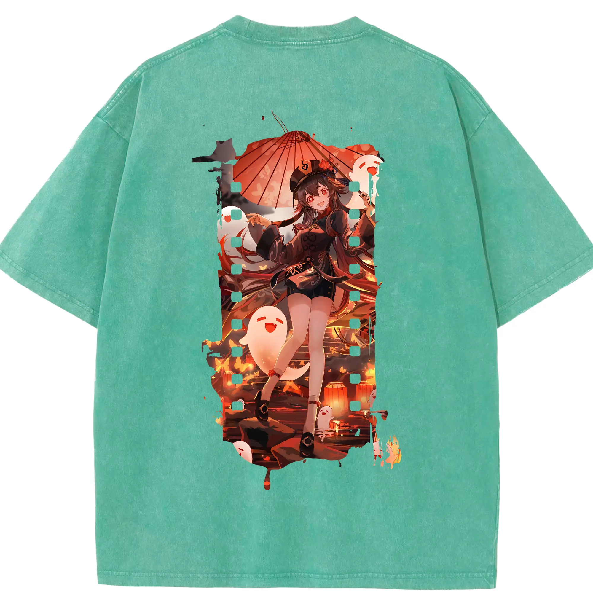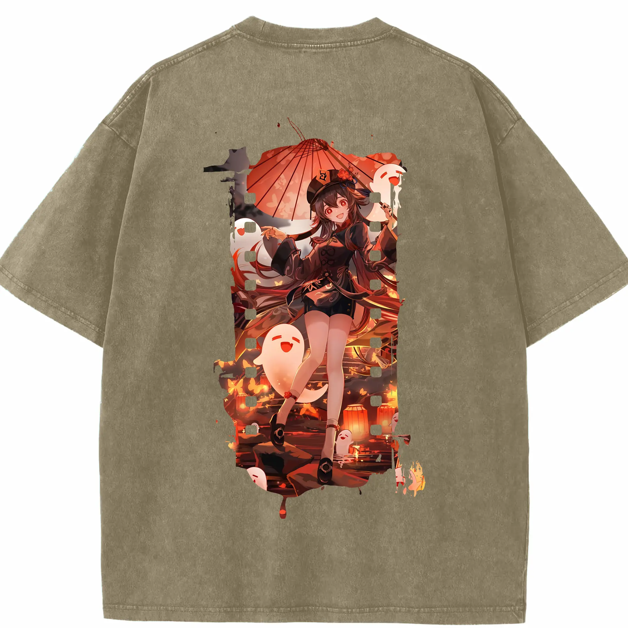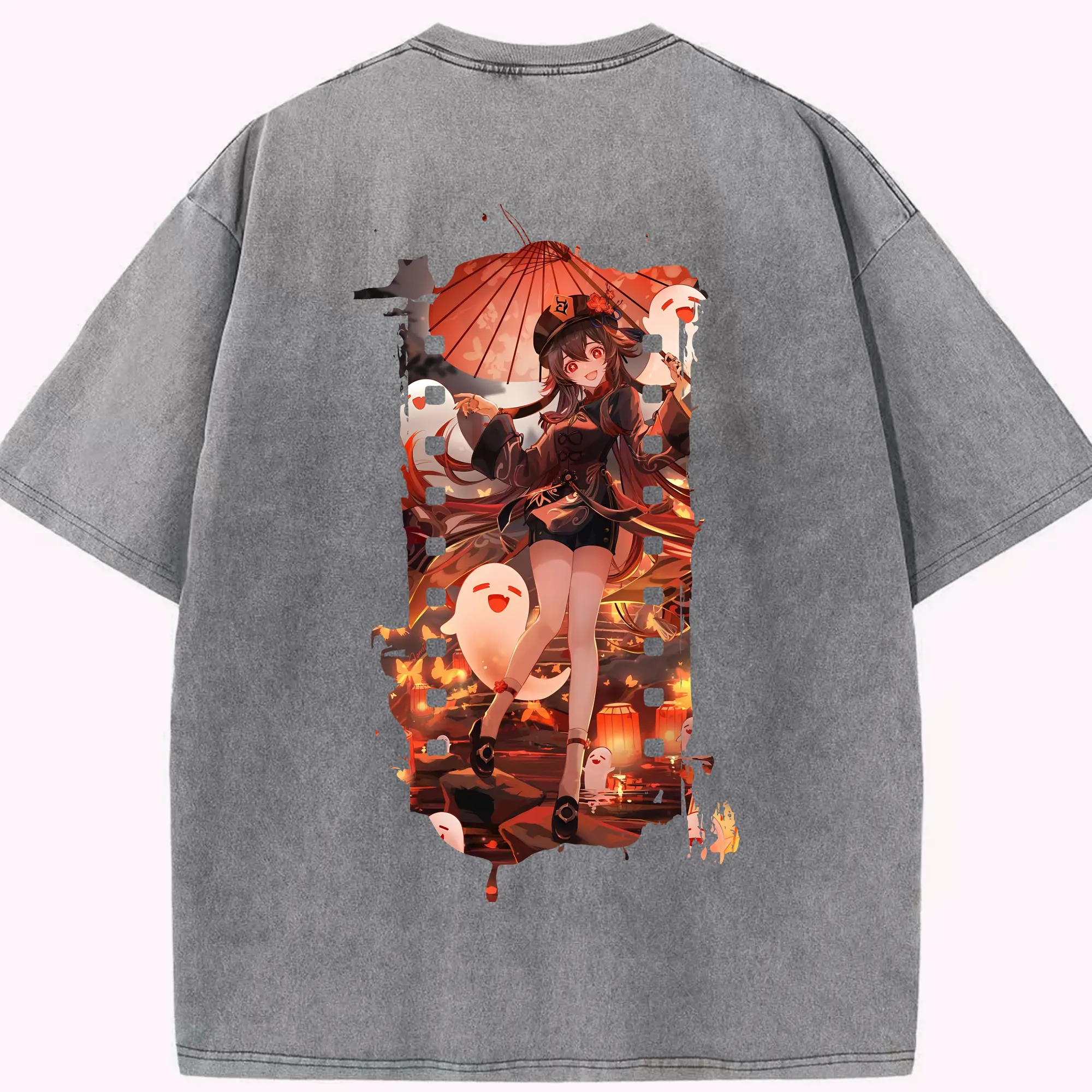 原 神 グッズ フータオ - 綿100% ヴィンテージ風 半袖Tシャツ ・ フロントプリント ・ 柔らか肌触り ・ 通気性 快適 ・ スポーツ カジュアル 外出用