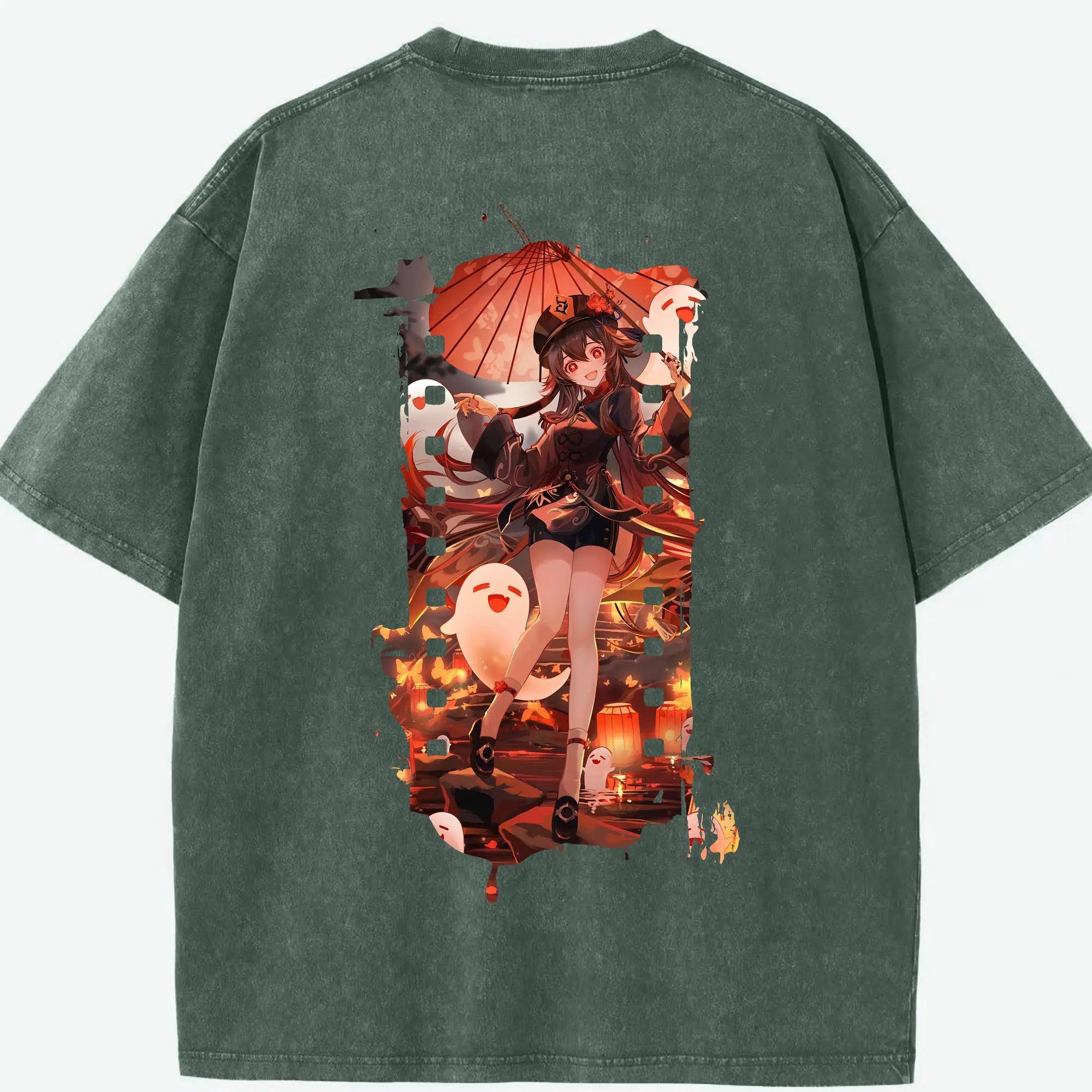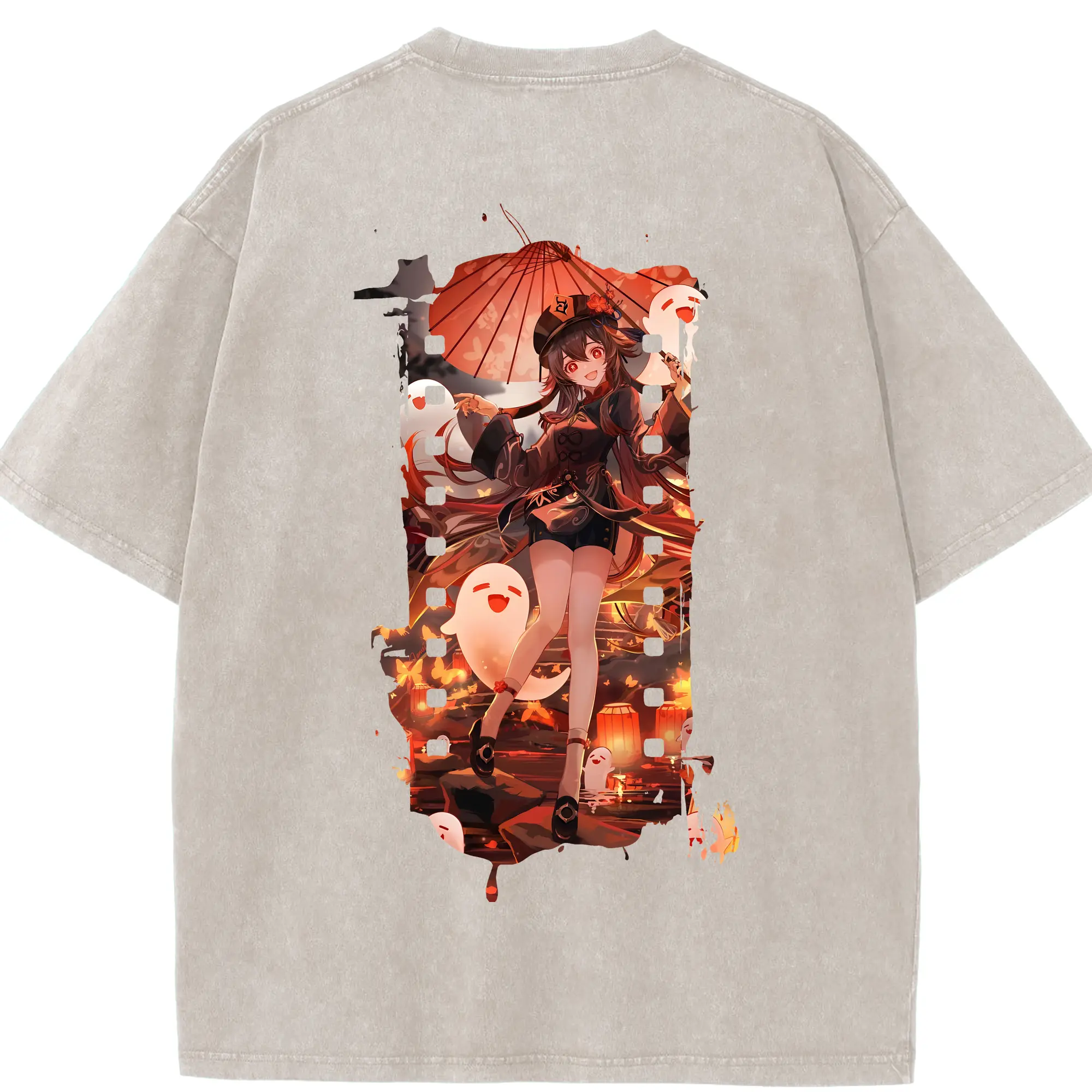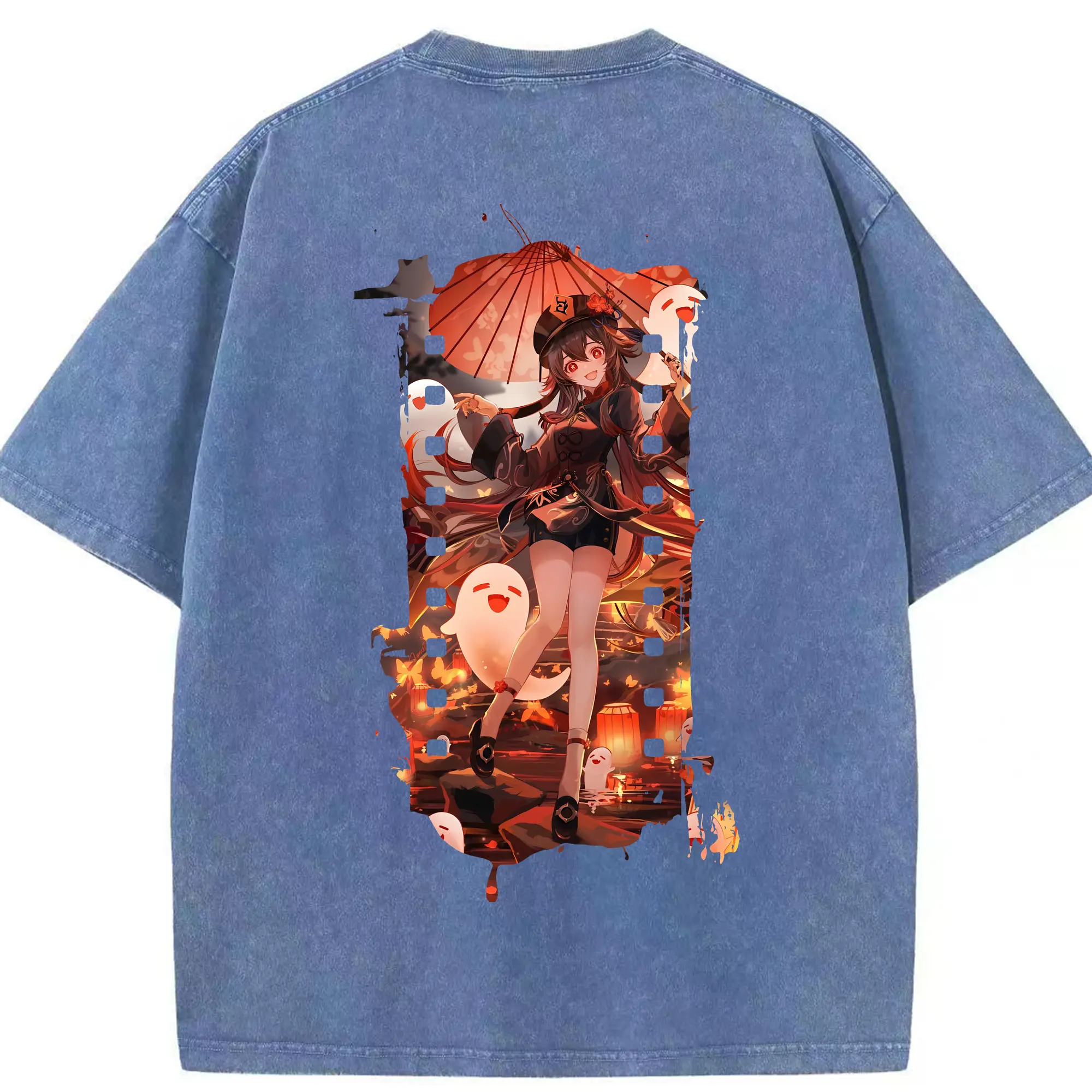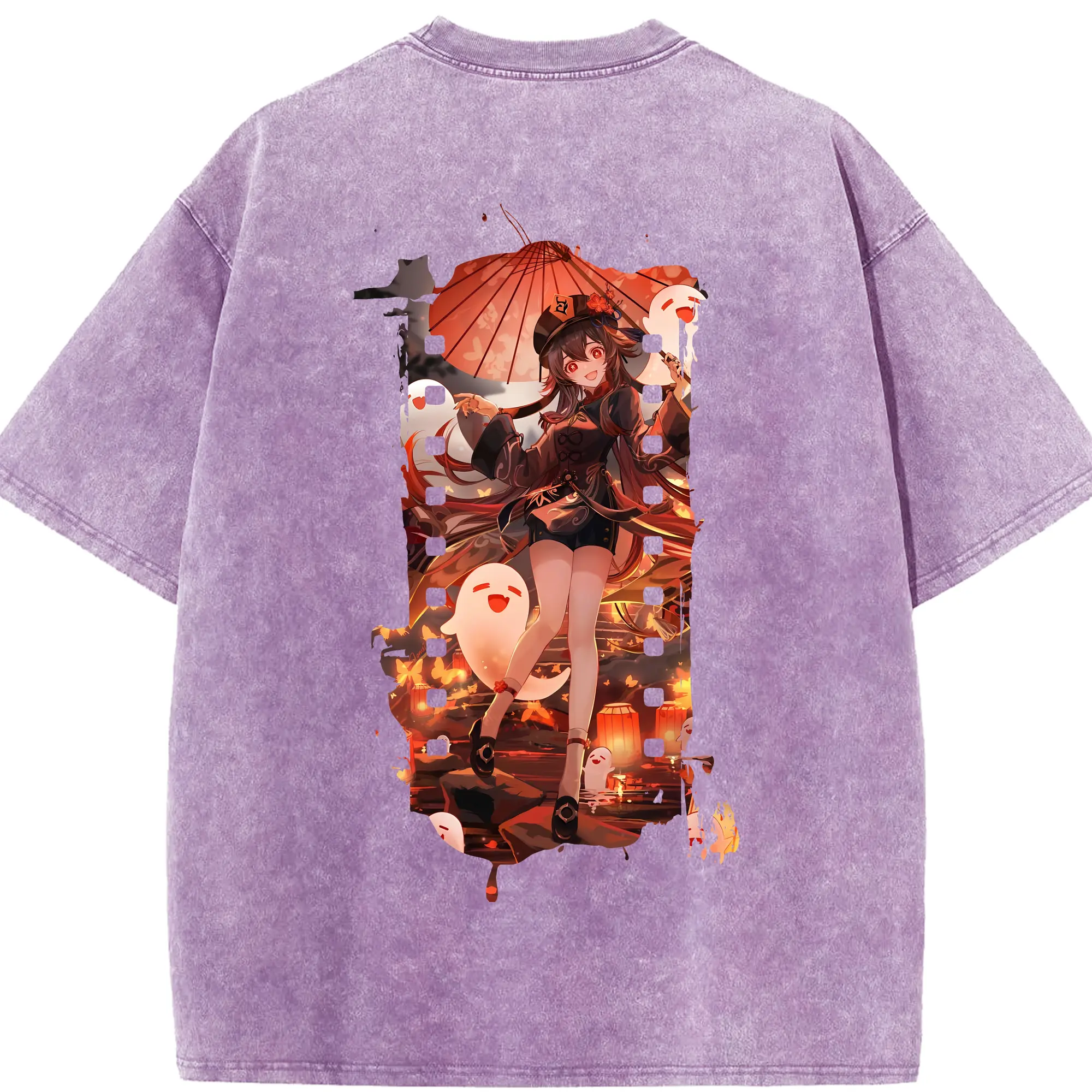 原 神 グッズ フータオ - 綿100% ヴィンテージ風 半袖Tシャツ ・ フロントプリント ・ 柔らか肌触り ・ 通気性 快適 ・ スポーツ カジュアル 外出用