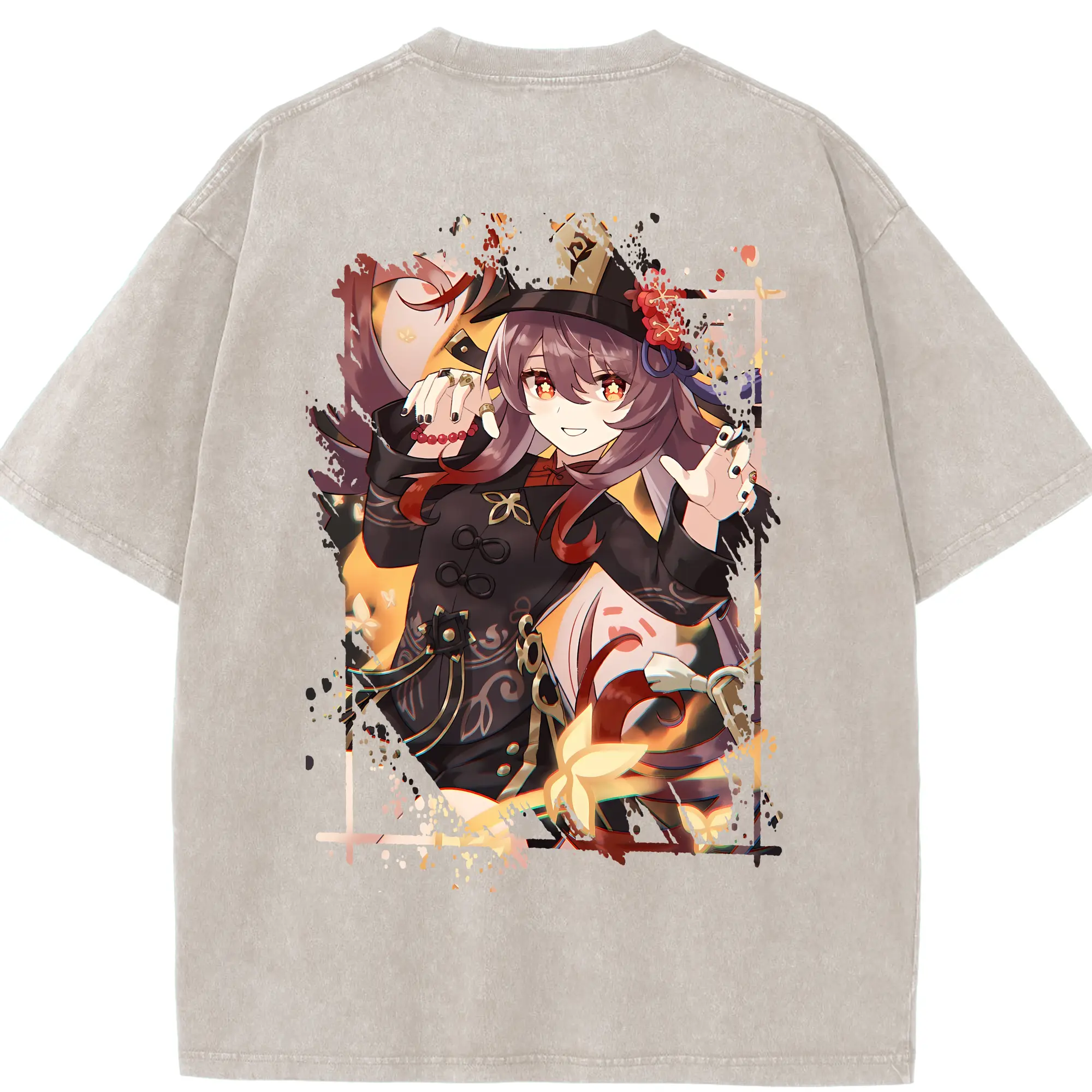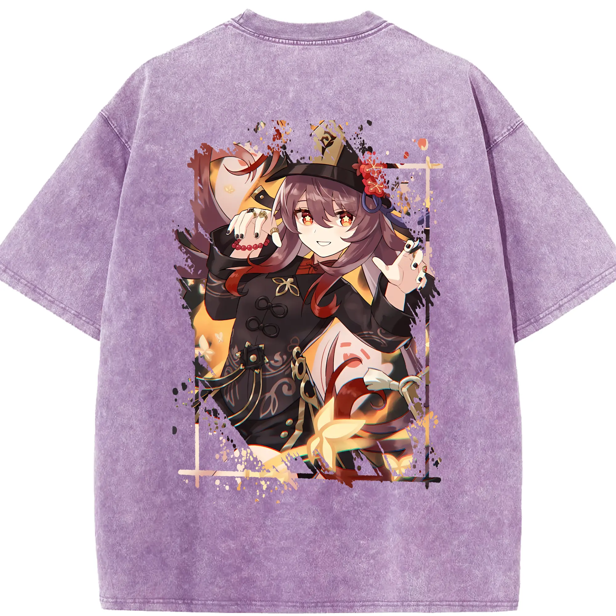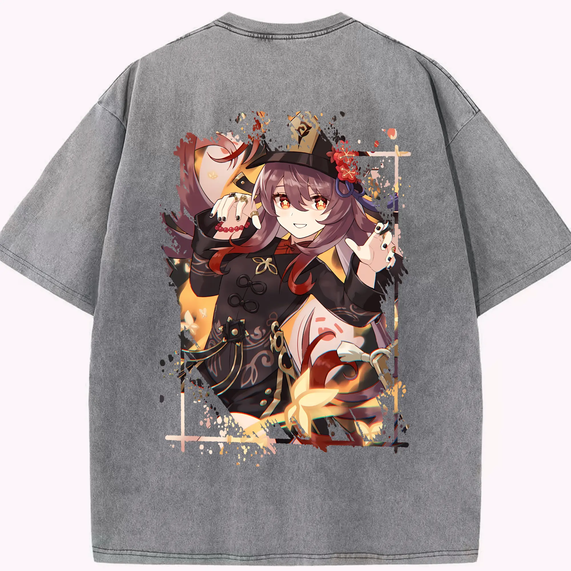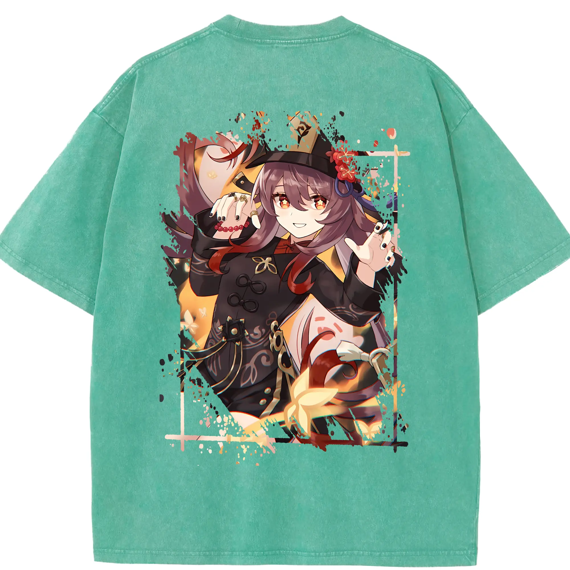原 神 グッズ フータオ - 綿100% ヴィンテージ風 半袖Tシャツ ・ フロントプリント ・ 柔らか肌触り ・ 通気性 快適 ・ スポーツ カジュアル 外出用