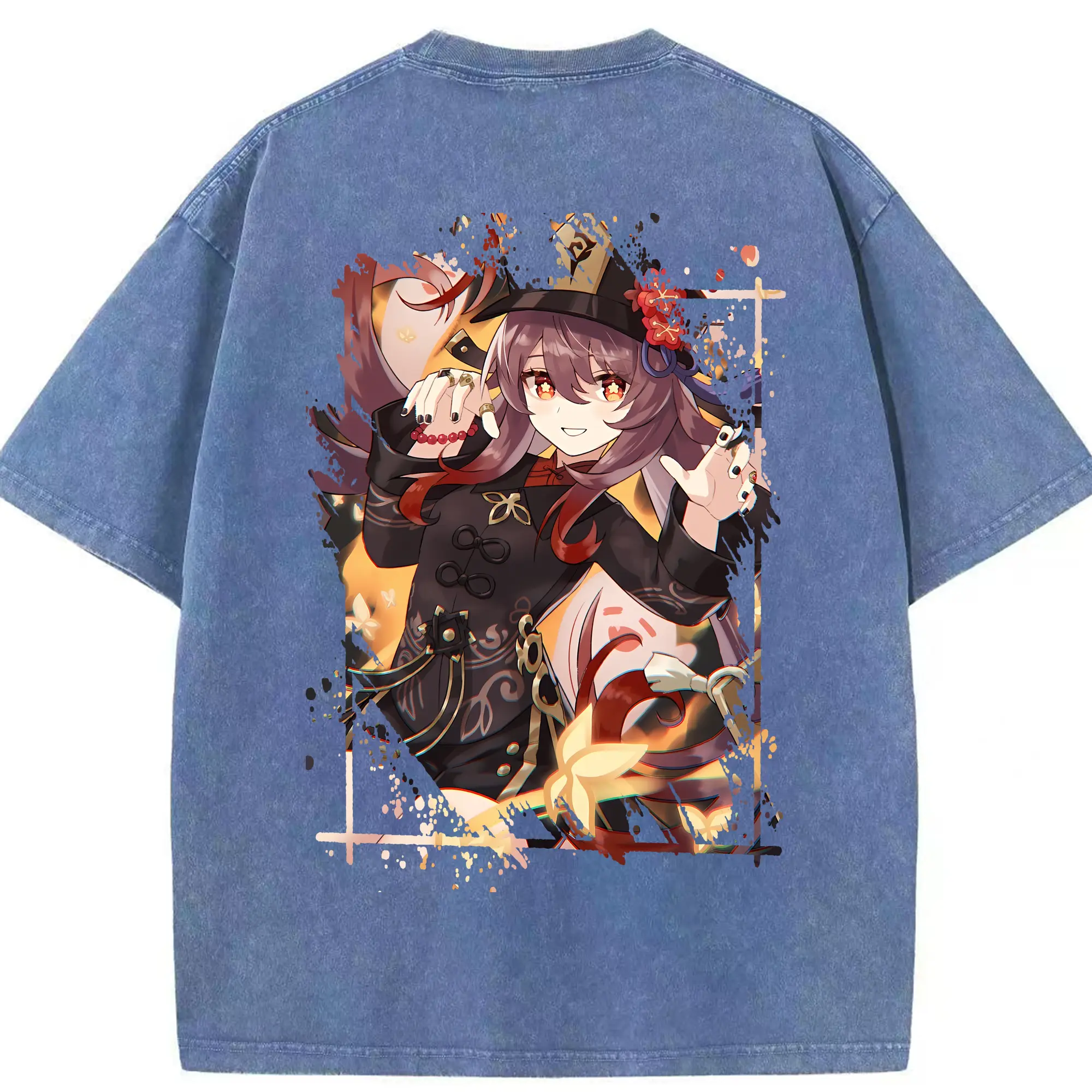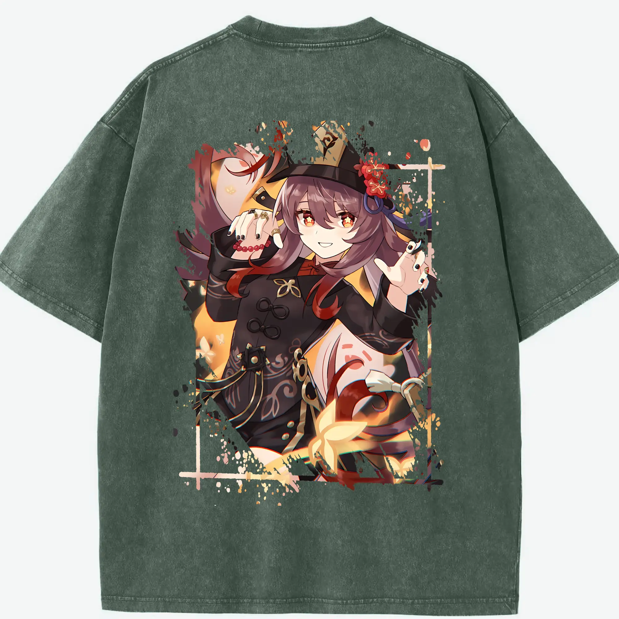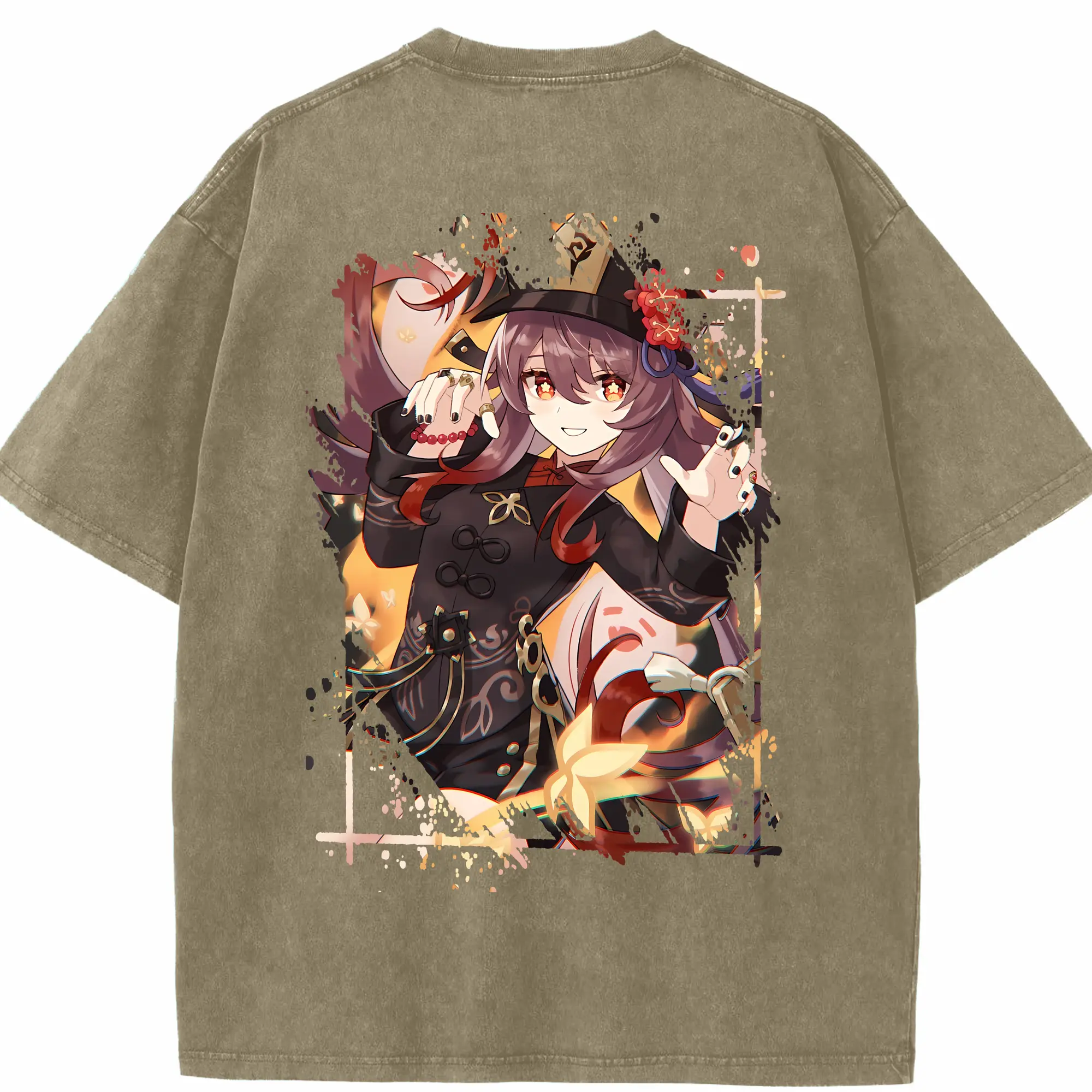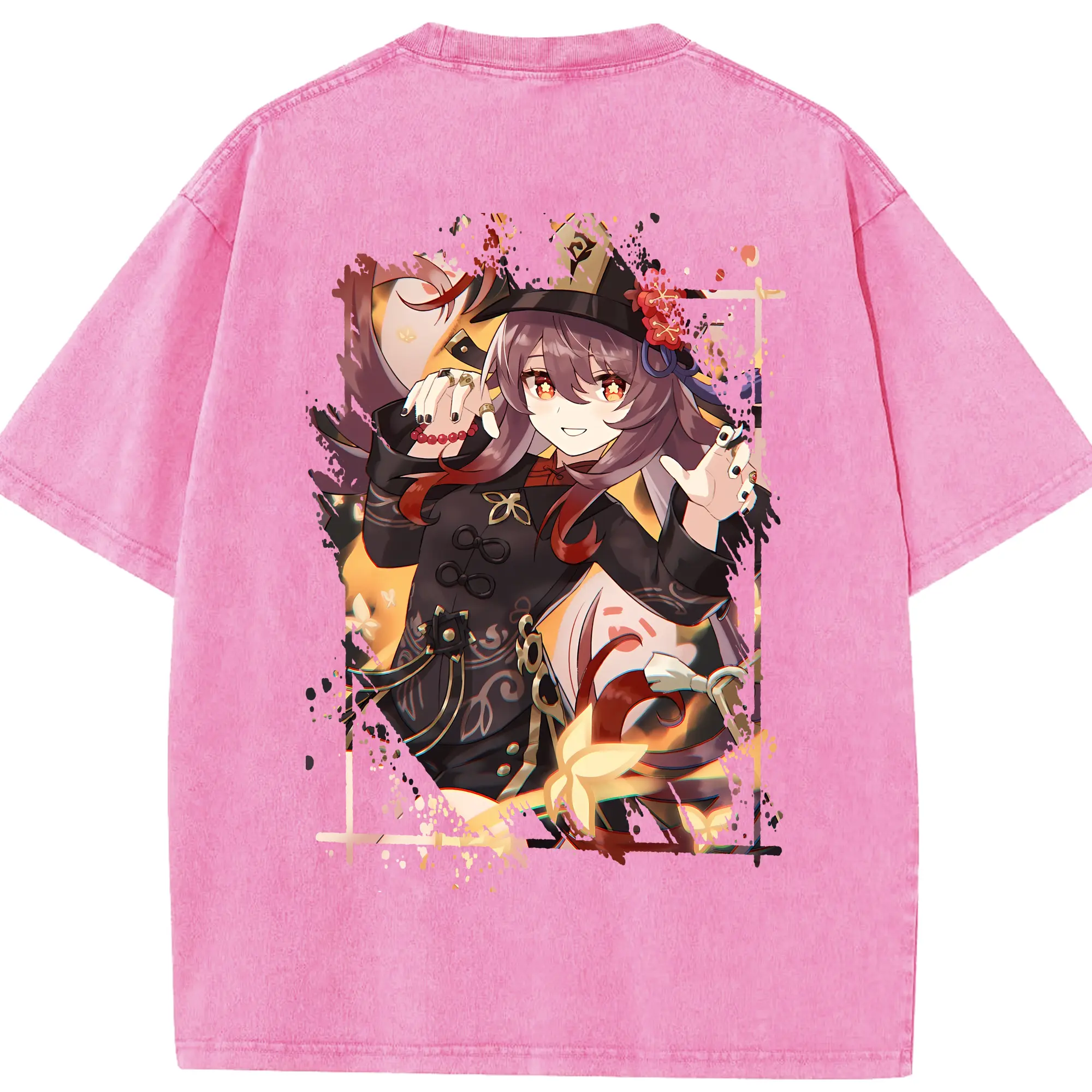 原 神 グッズ フータオ - 綿100% ヴィンテージ風 半袖Tシャツ ・ フロントプリント ・ 柔らか肌触り ・ 通気性 快適 ・ スポーツ カジュアル 外出用