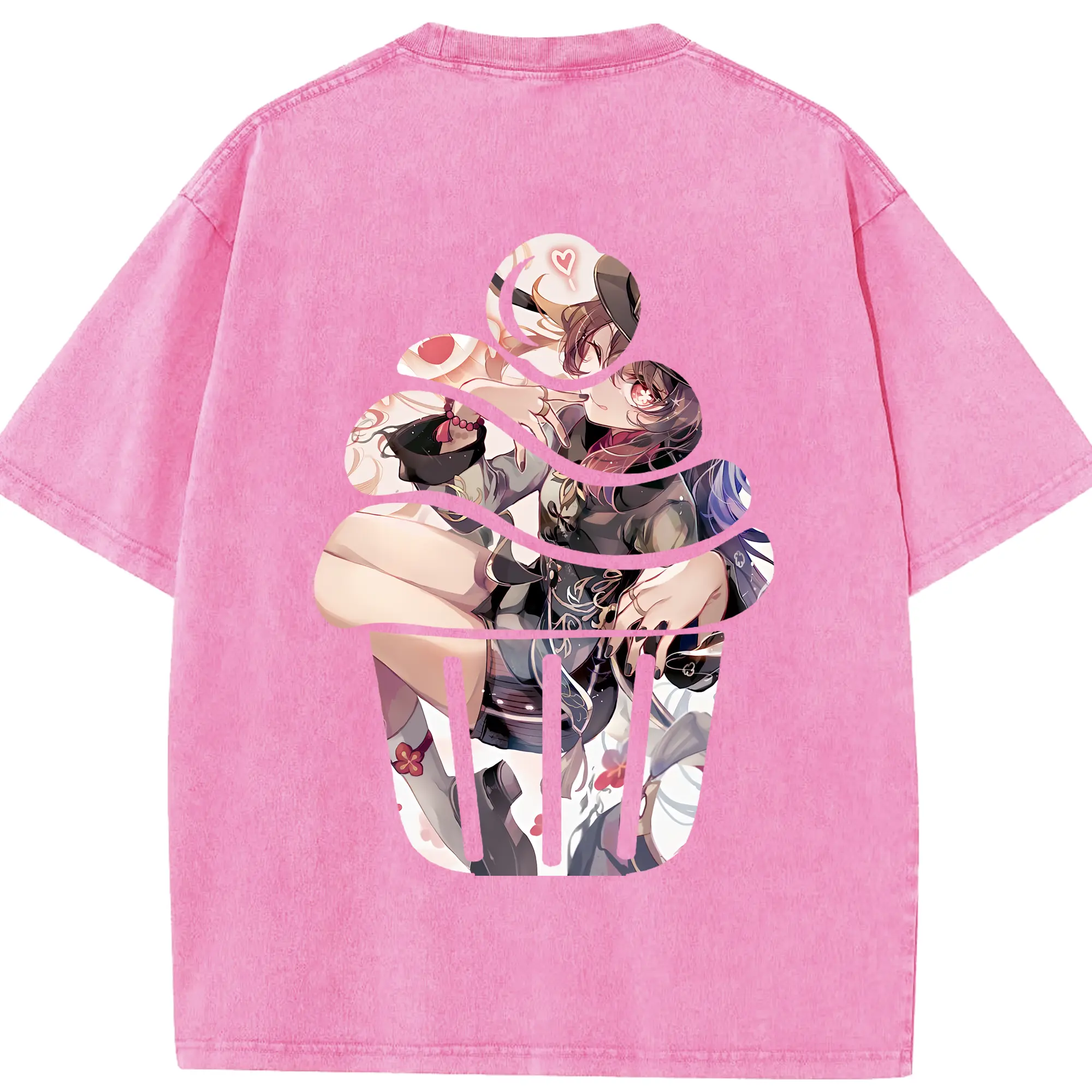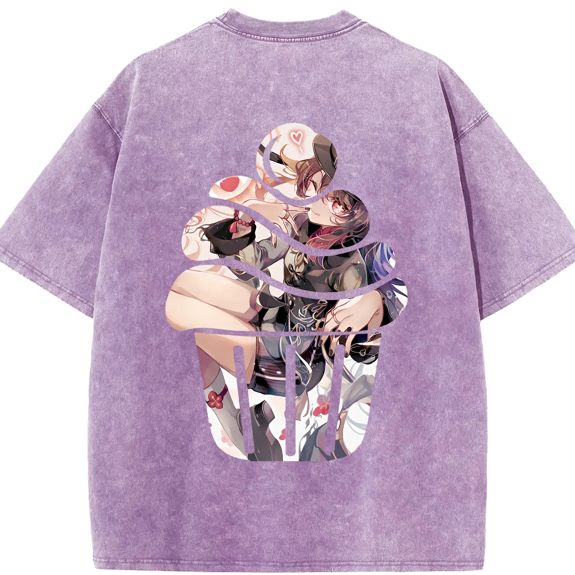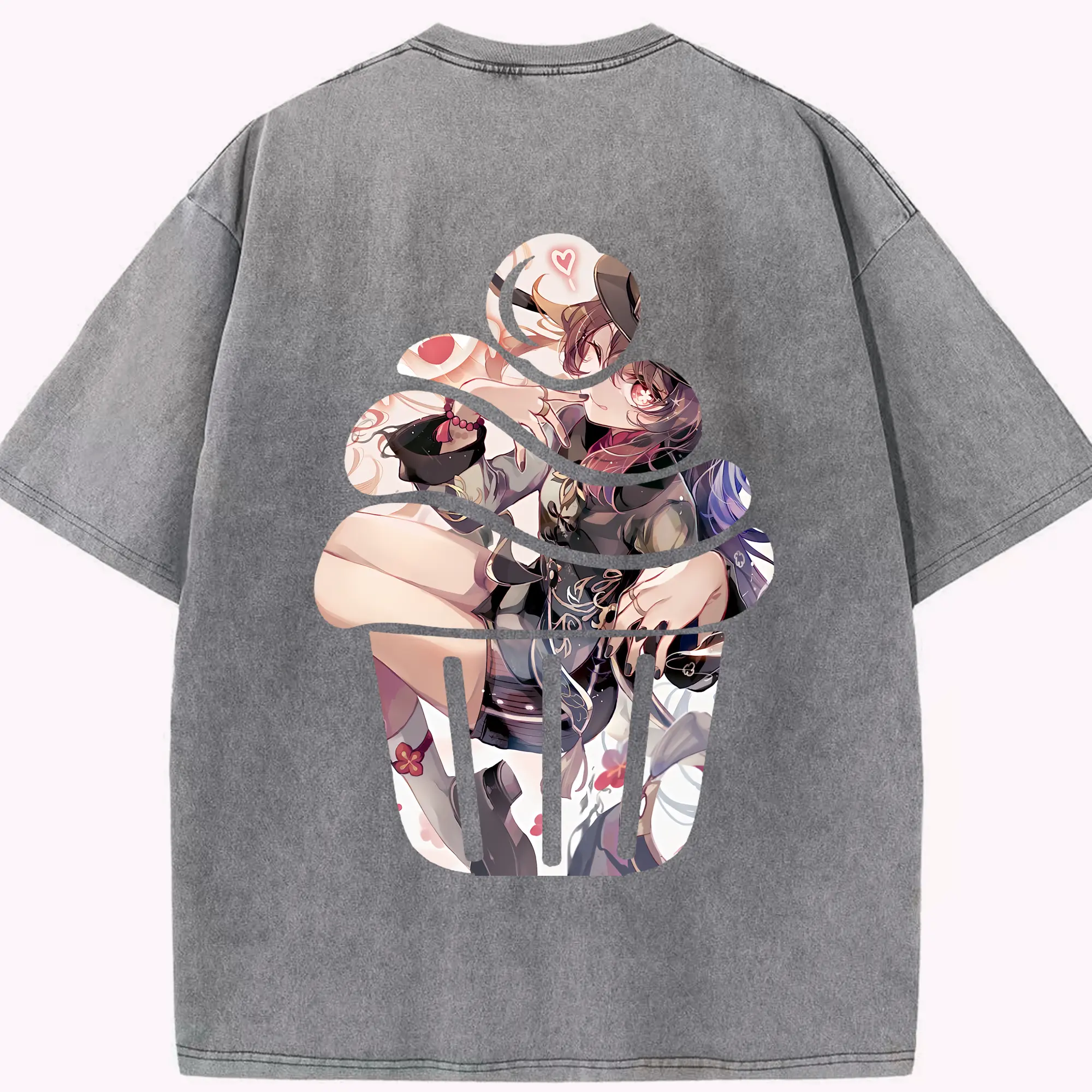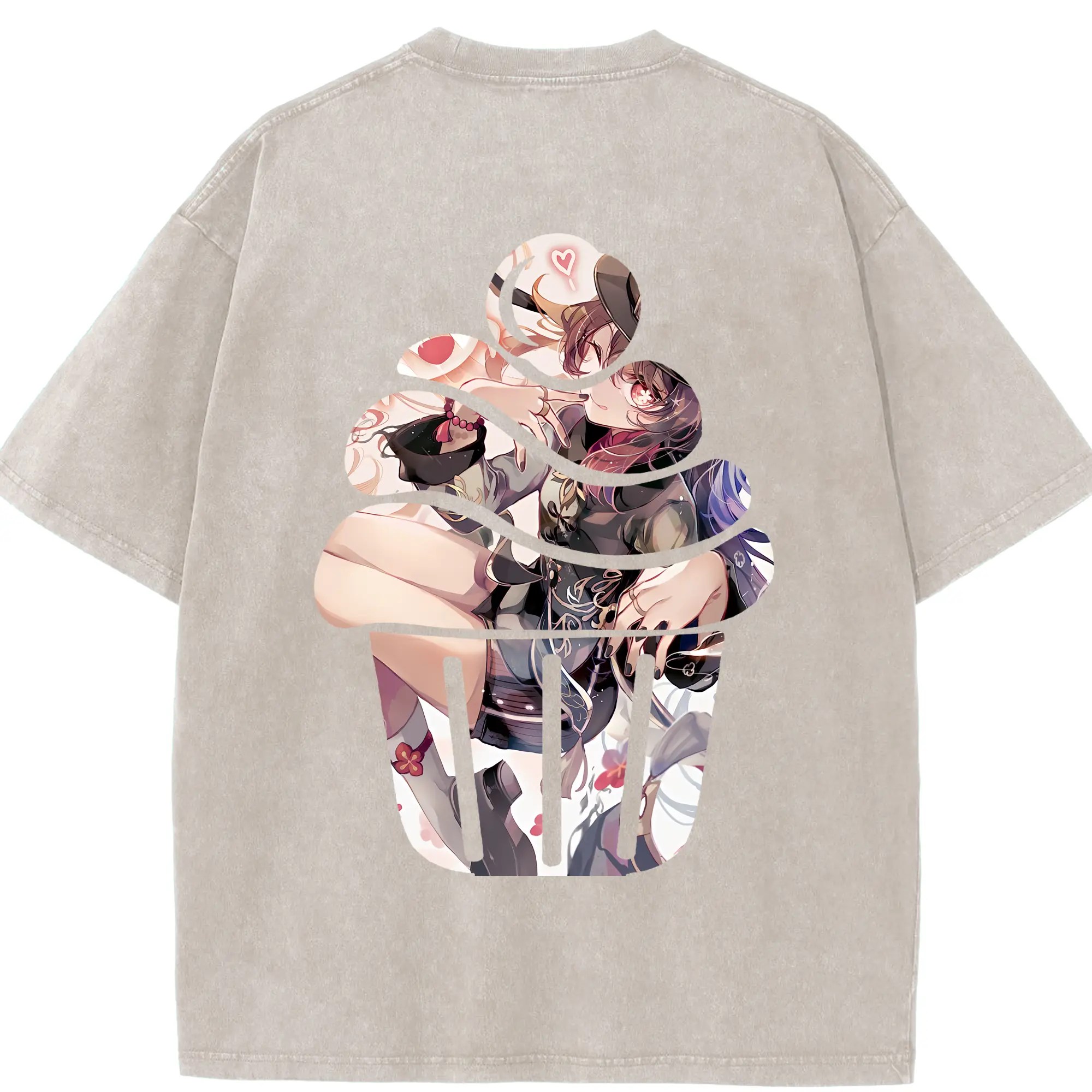 原 神 グッズ フータオ - 綿100% ヴィンテージ風 半袖Tシャツ ・ フロントプリント ・ 柔らか肌触り ・ 通気性 快適 ・ スポーツ カジュアル 外出用