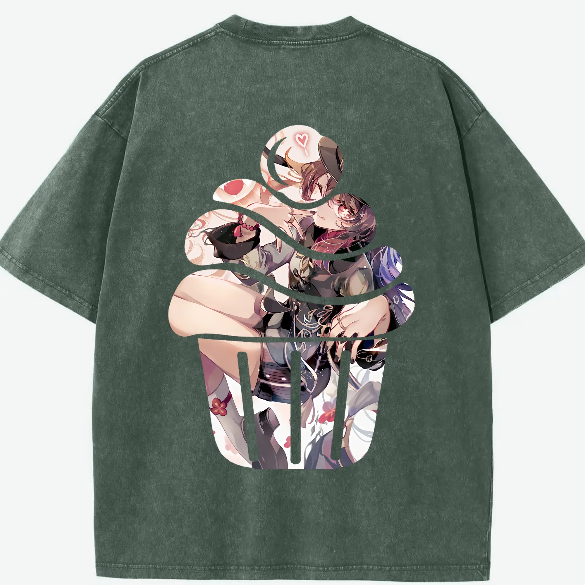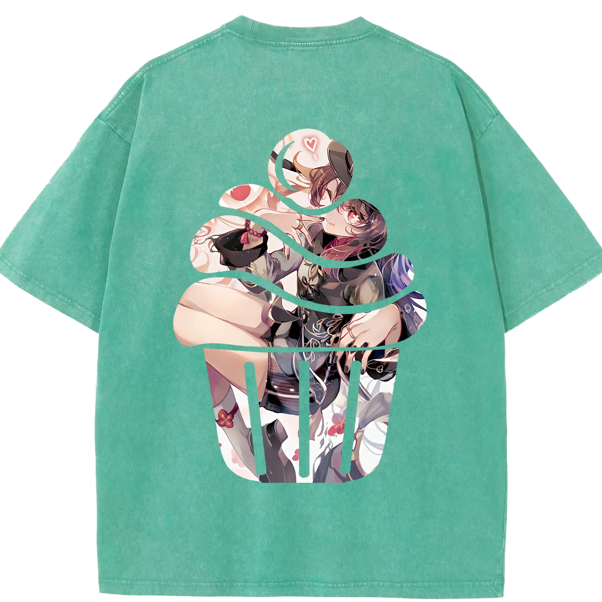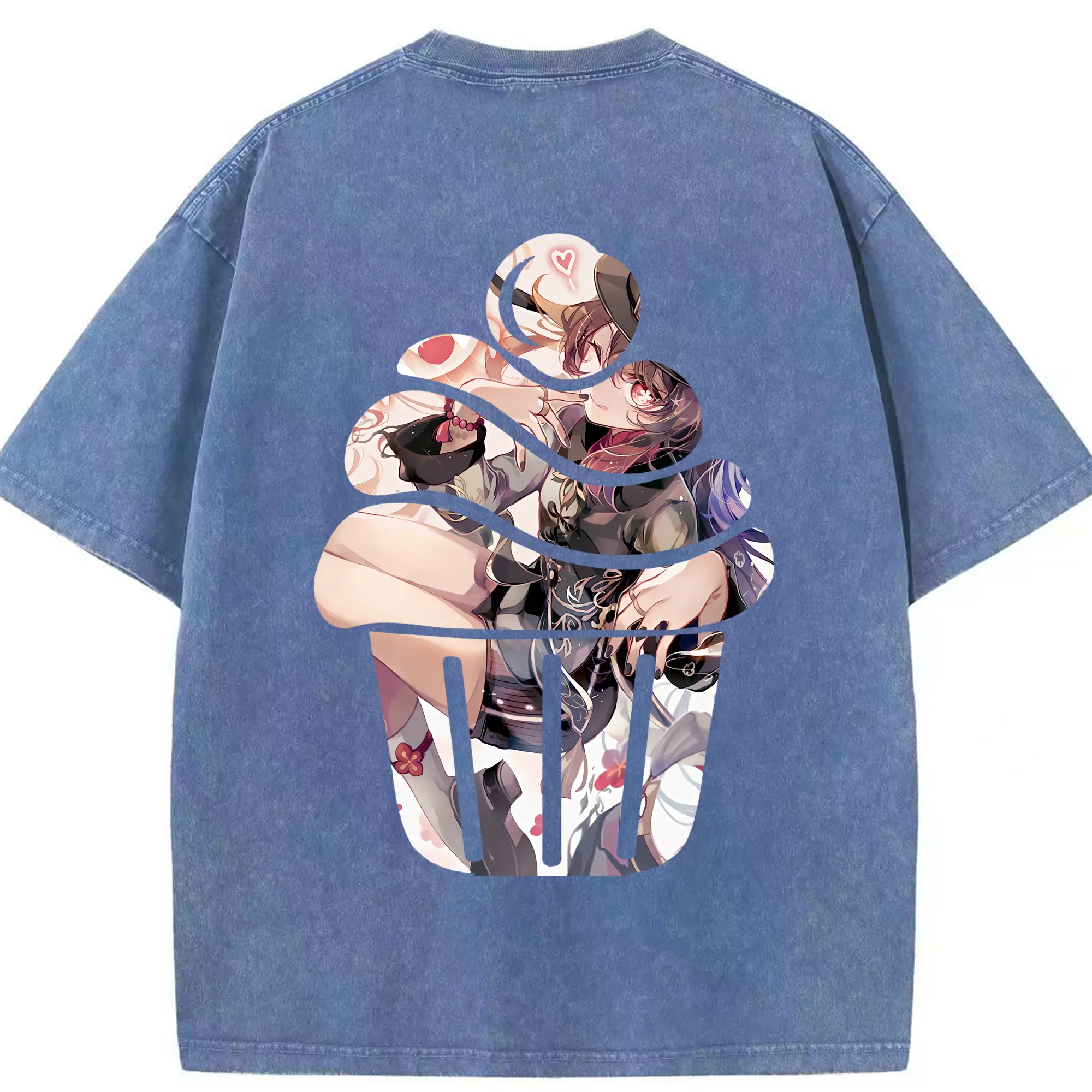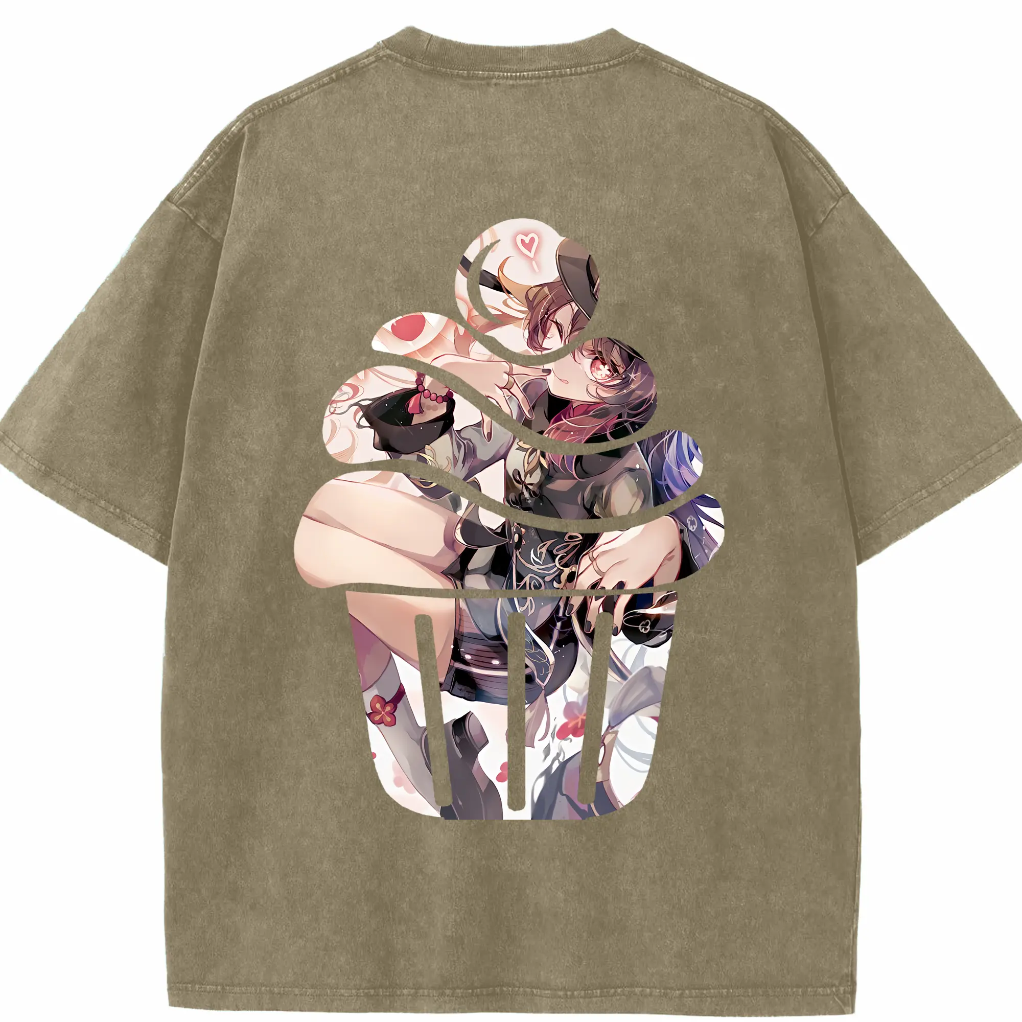 原 神 グッズ フータオ - 綿100% ヴィンテージ風 半袖Tシャツ ・ フロントプリント ・ 柔らか肌触り ・ 通気性 快適 ・ スポーツ カジュアル 外出用
