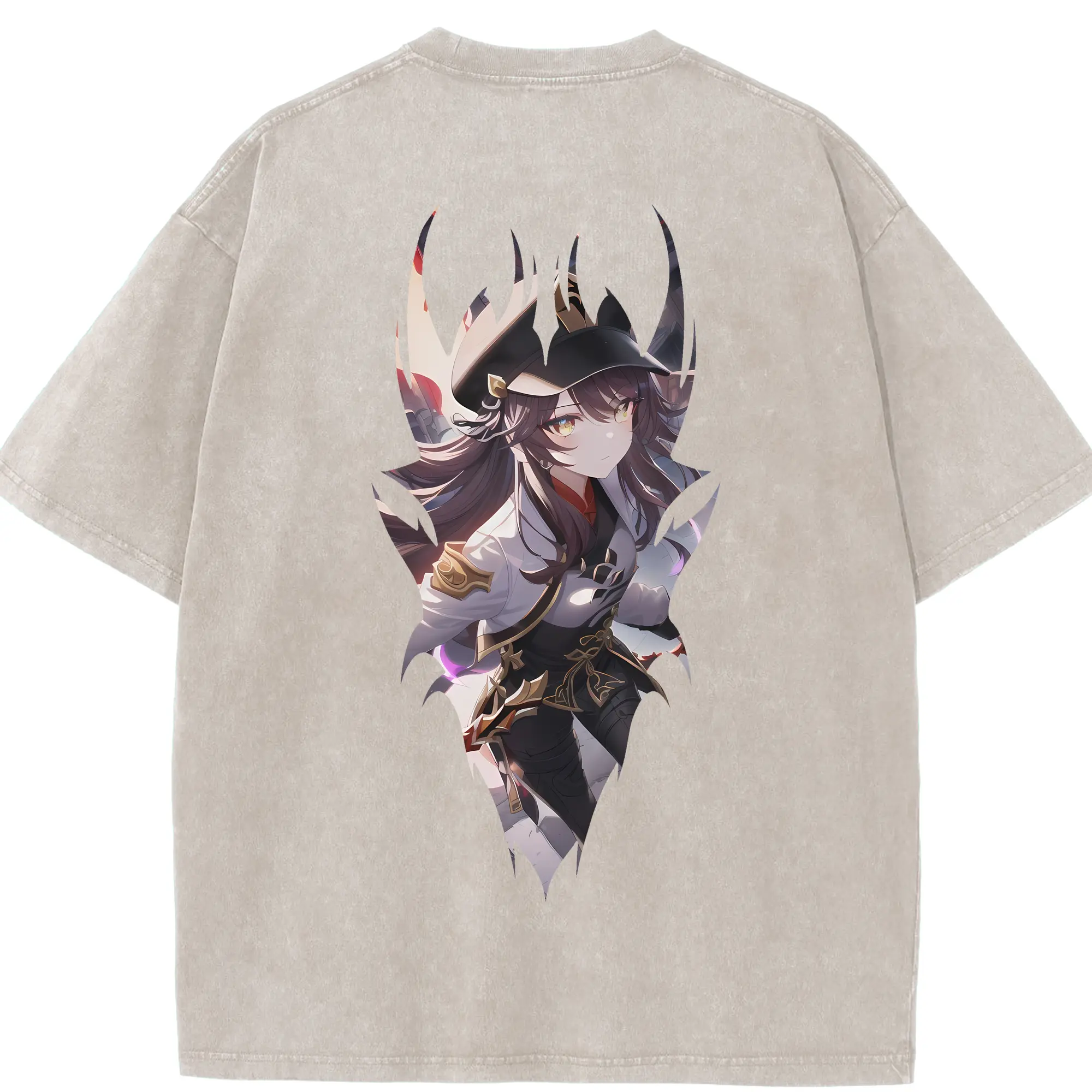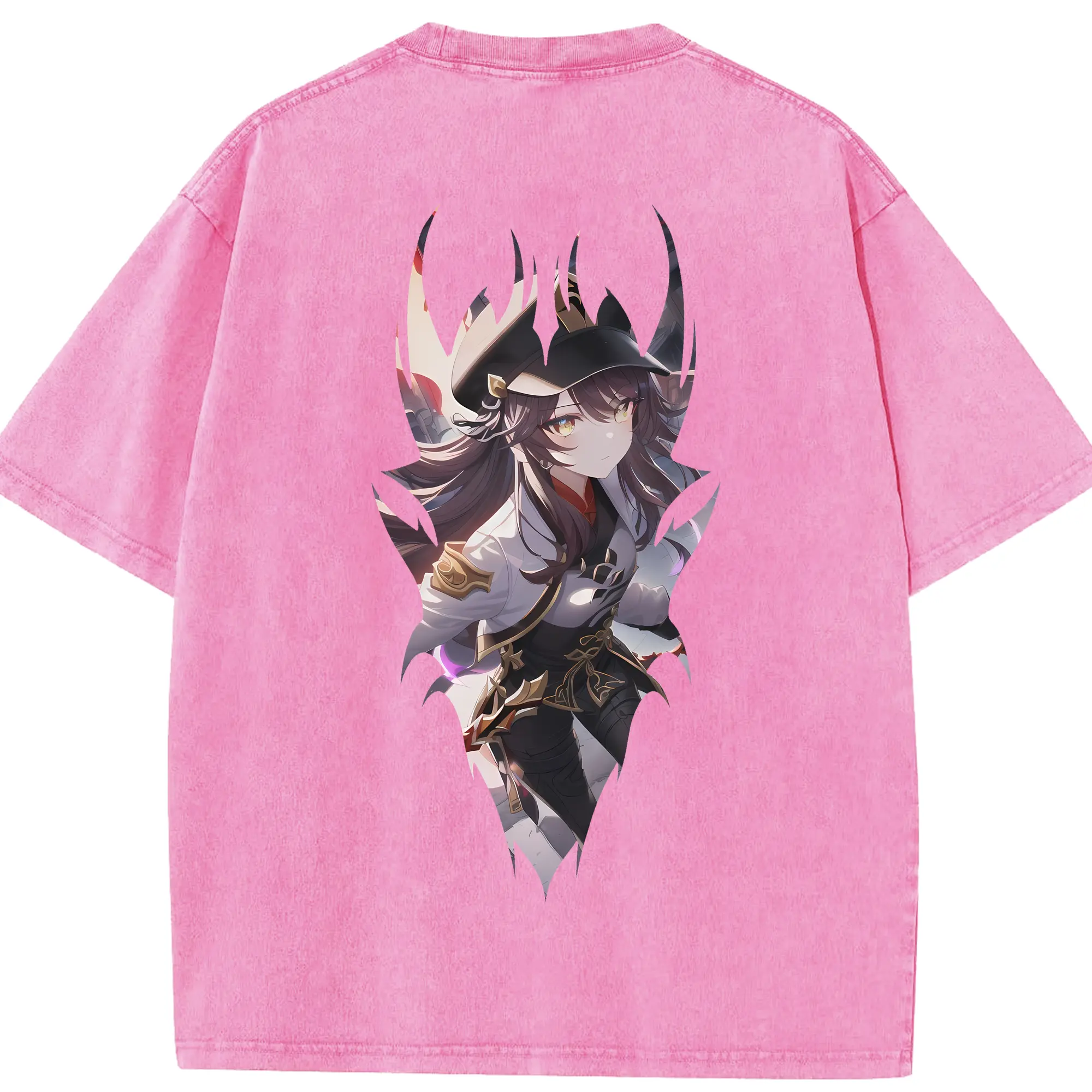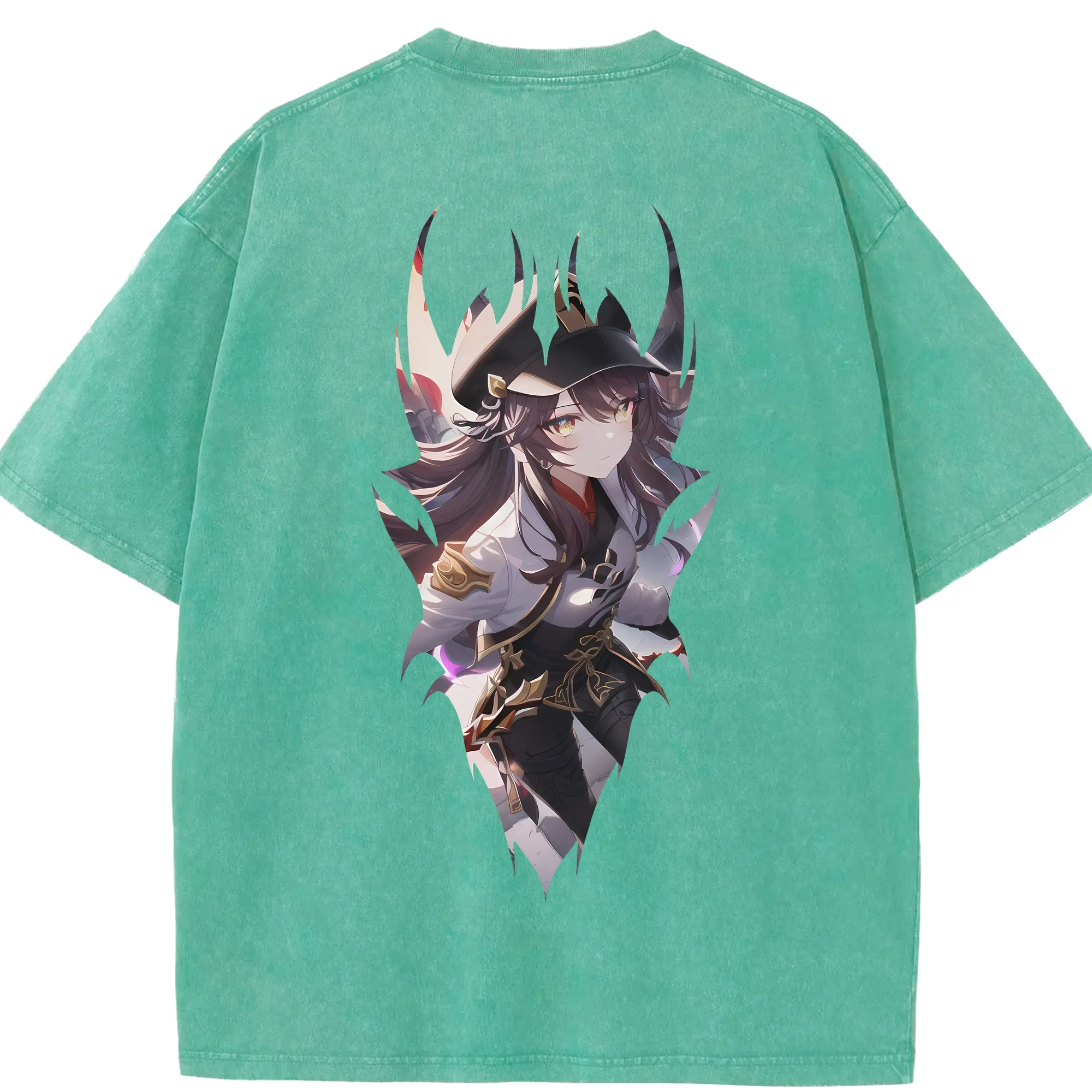 原 神 グッズ フータオ - 綿100% ヴィンテージ風 半袖Tシャツ ・ フロントプリント ・ 柔らか肌触り ・ 通気性 快適 ・ スポーツ カジュアル 外出用