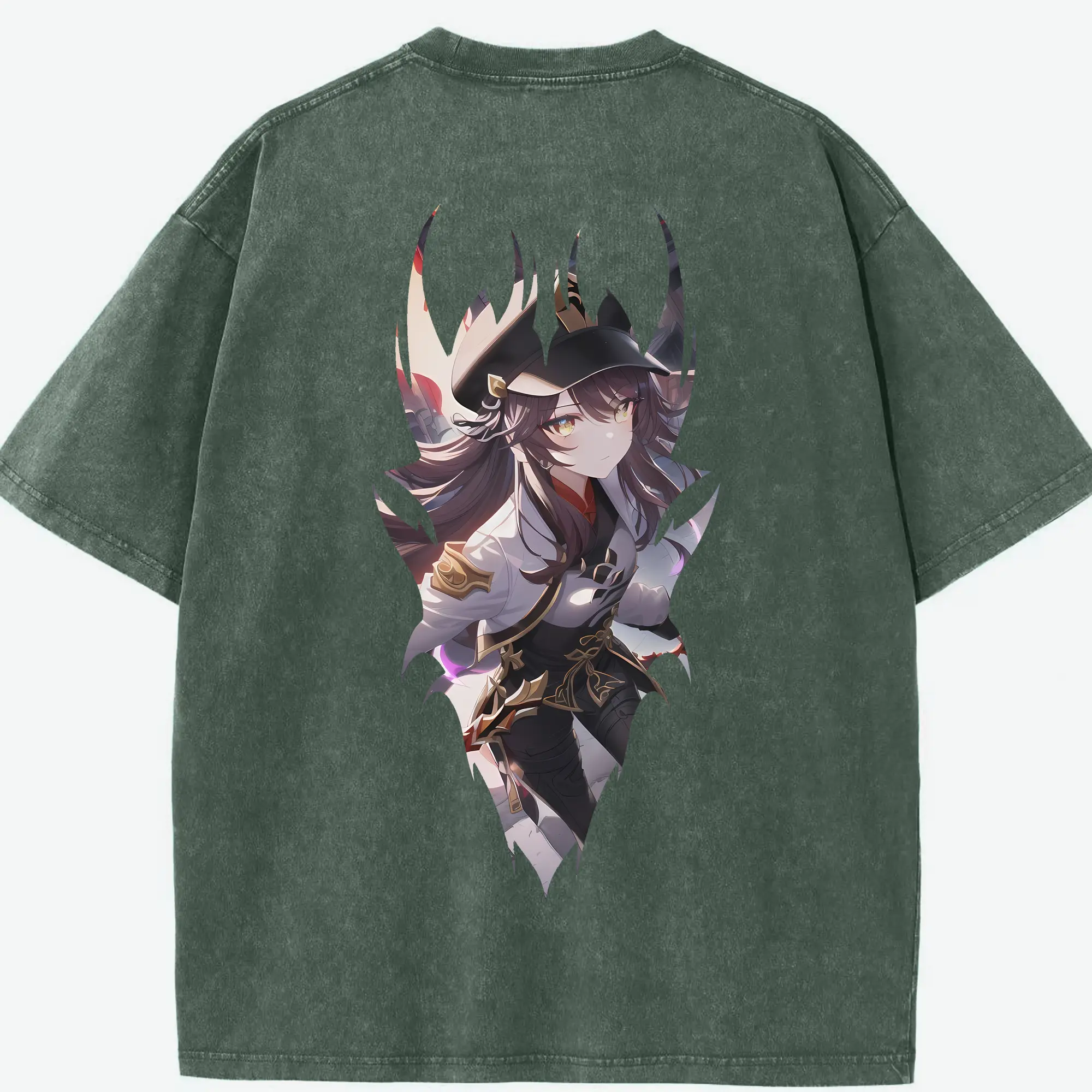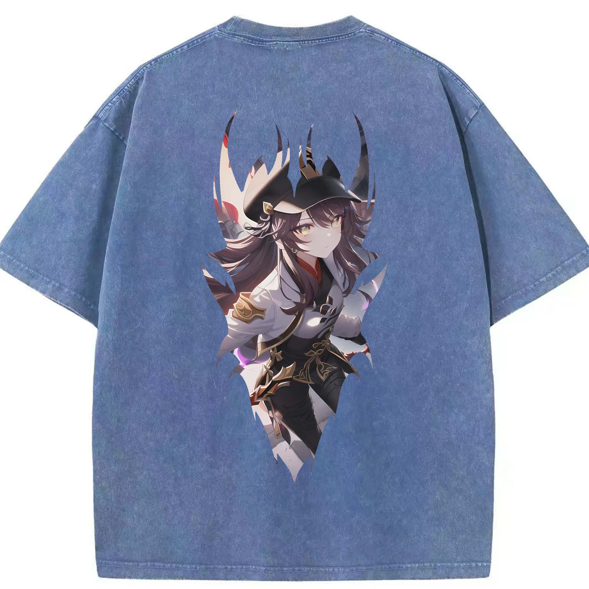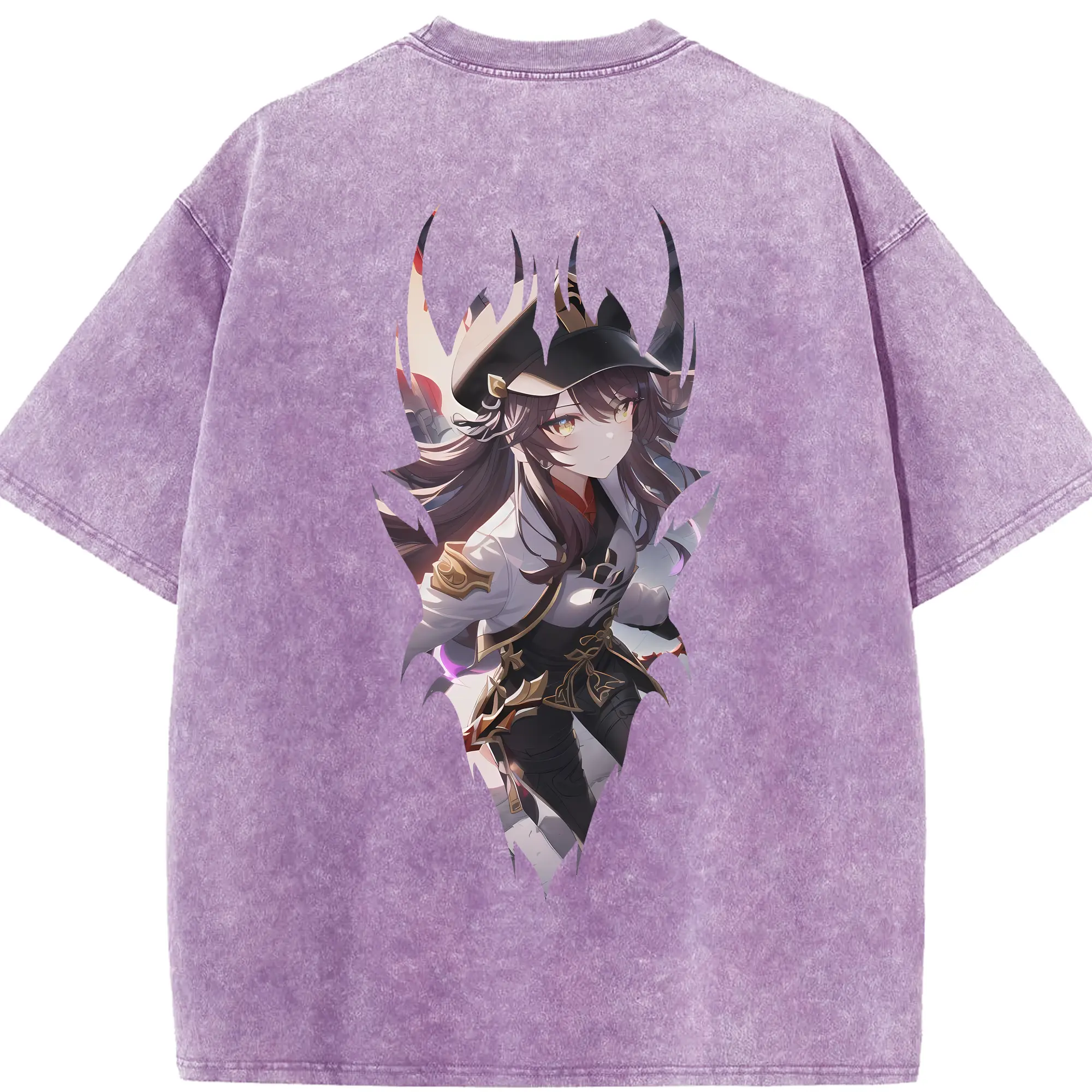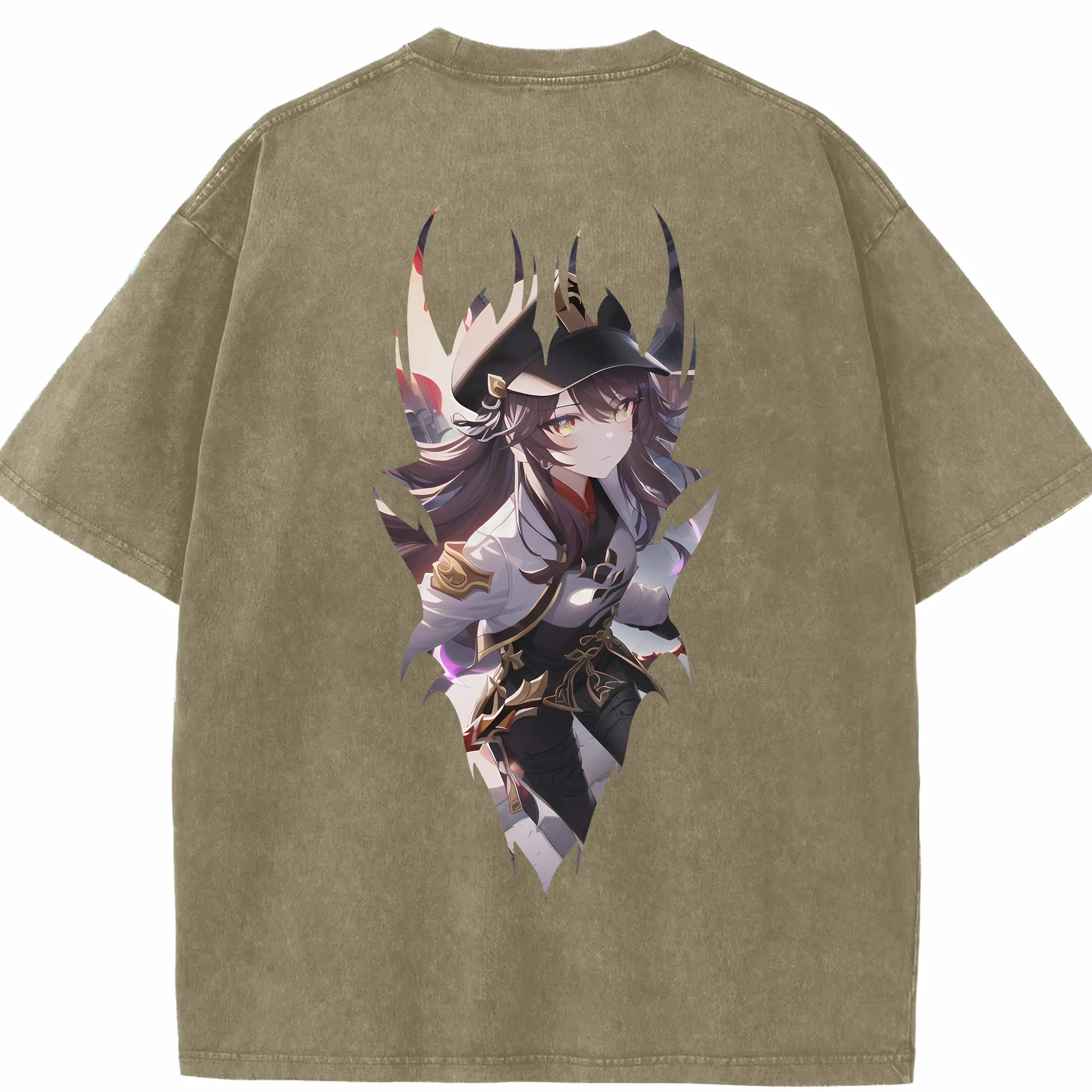 原 神 グッズ フータオ - 綿100% ヴィンテージ風 半袖Tシャツ ・ フロントプリント ・ 柔らか肌触り ・ 通気性 快適 ・ スポーツ カジュアル 外出用