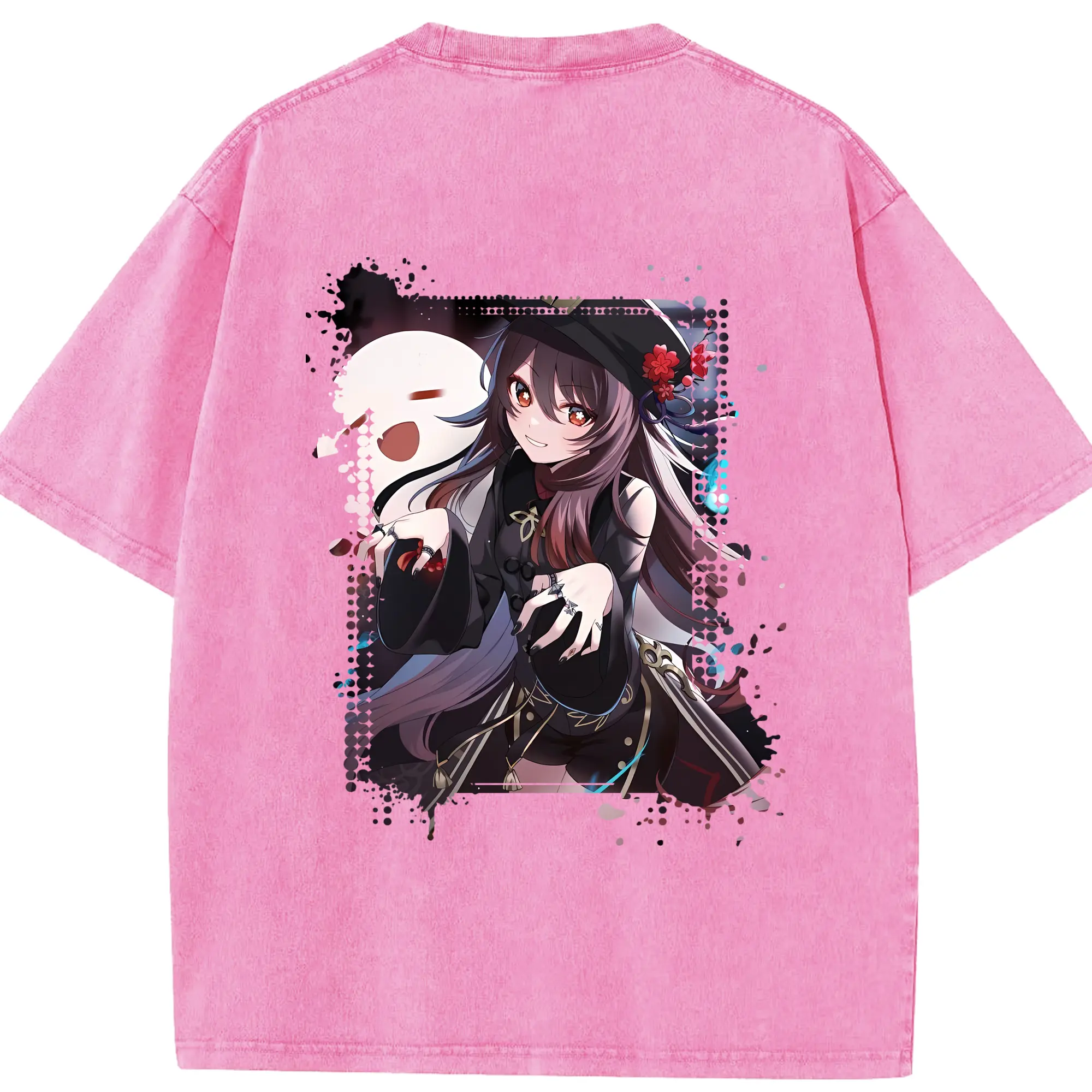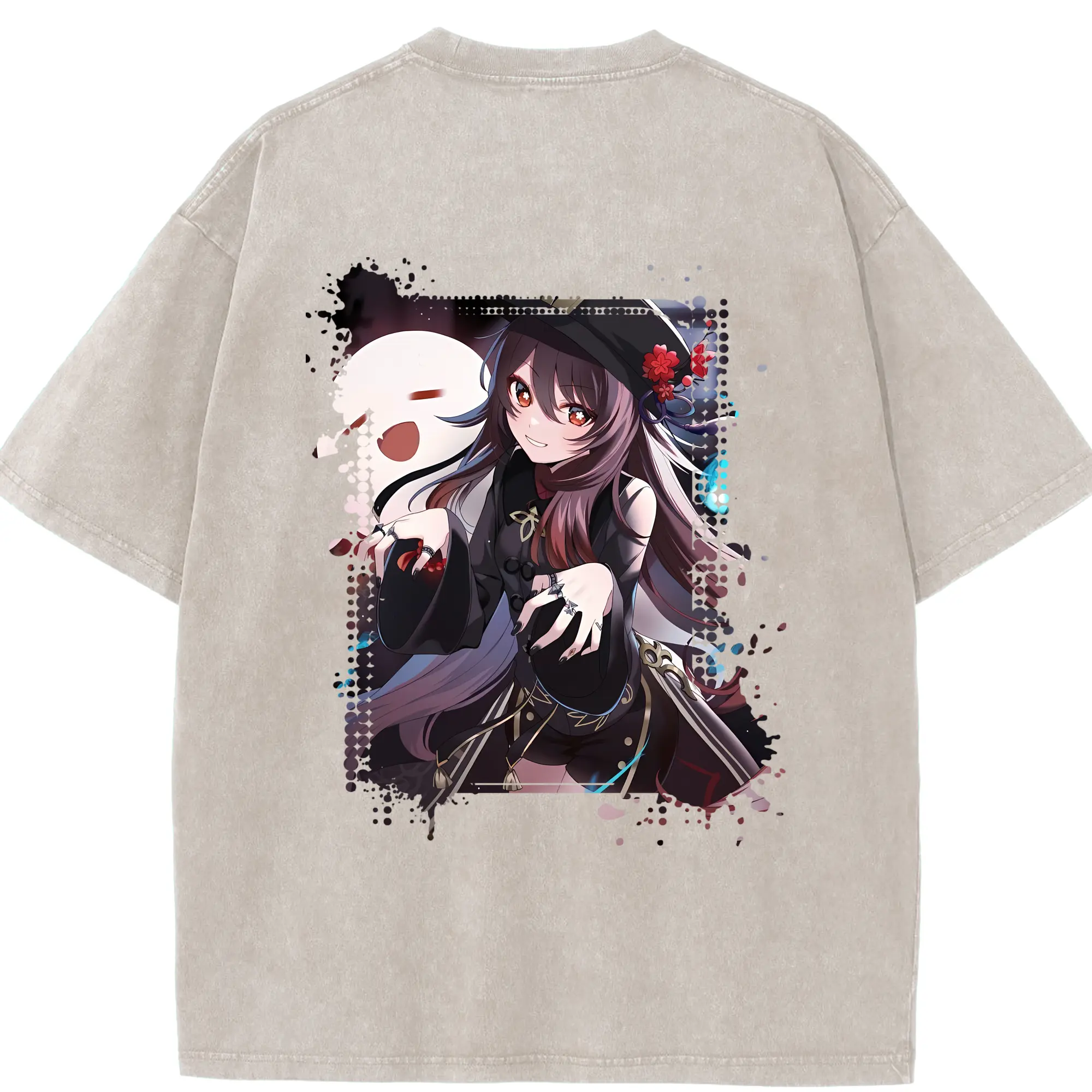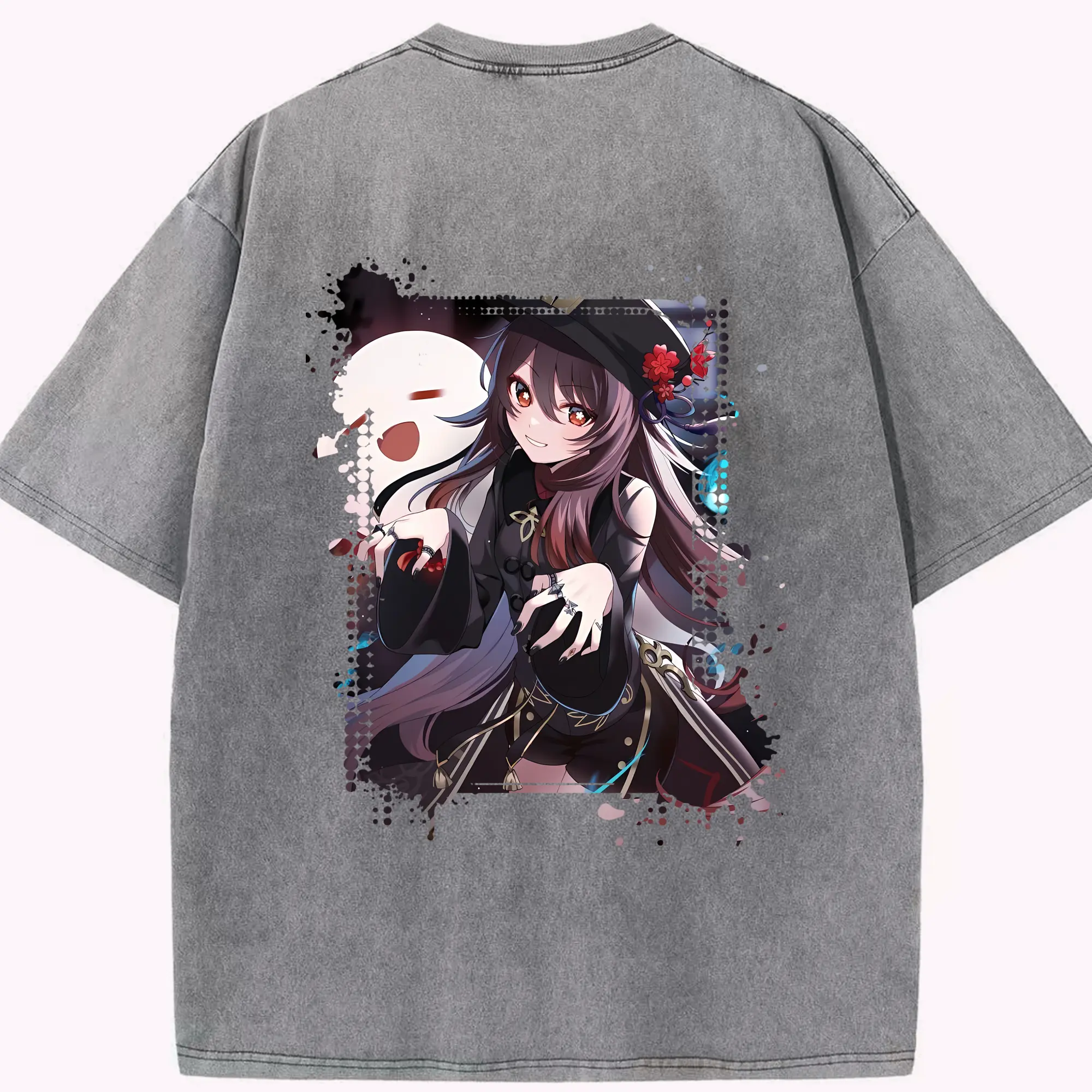 原 神 グッズ フータオ - 綿100% ヴィンテージ風 半袖Tシャツ ・ フロントプリント ・ 柔らか肌触り ・ 通気性 快適 ・ スポーツ カジュアル 外出用