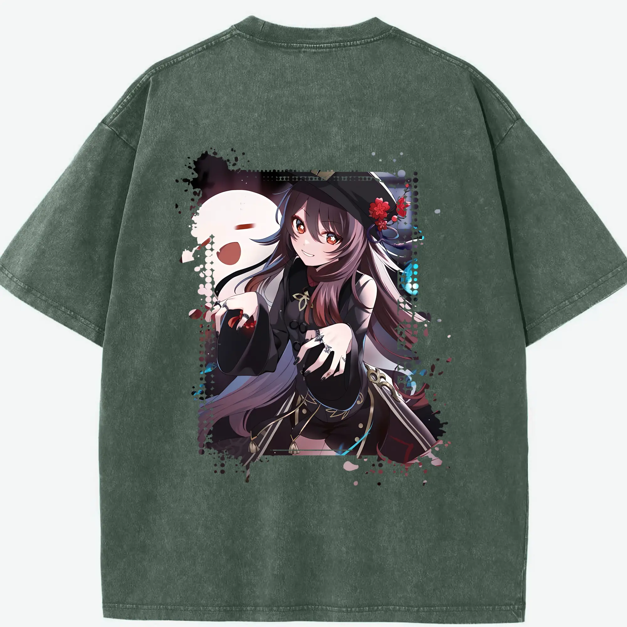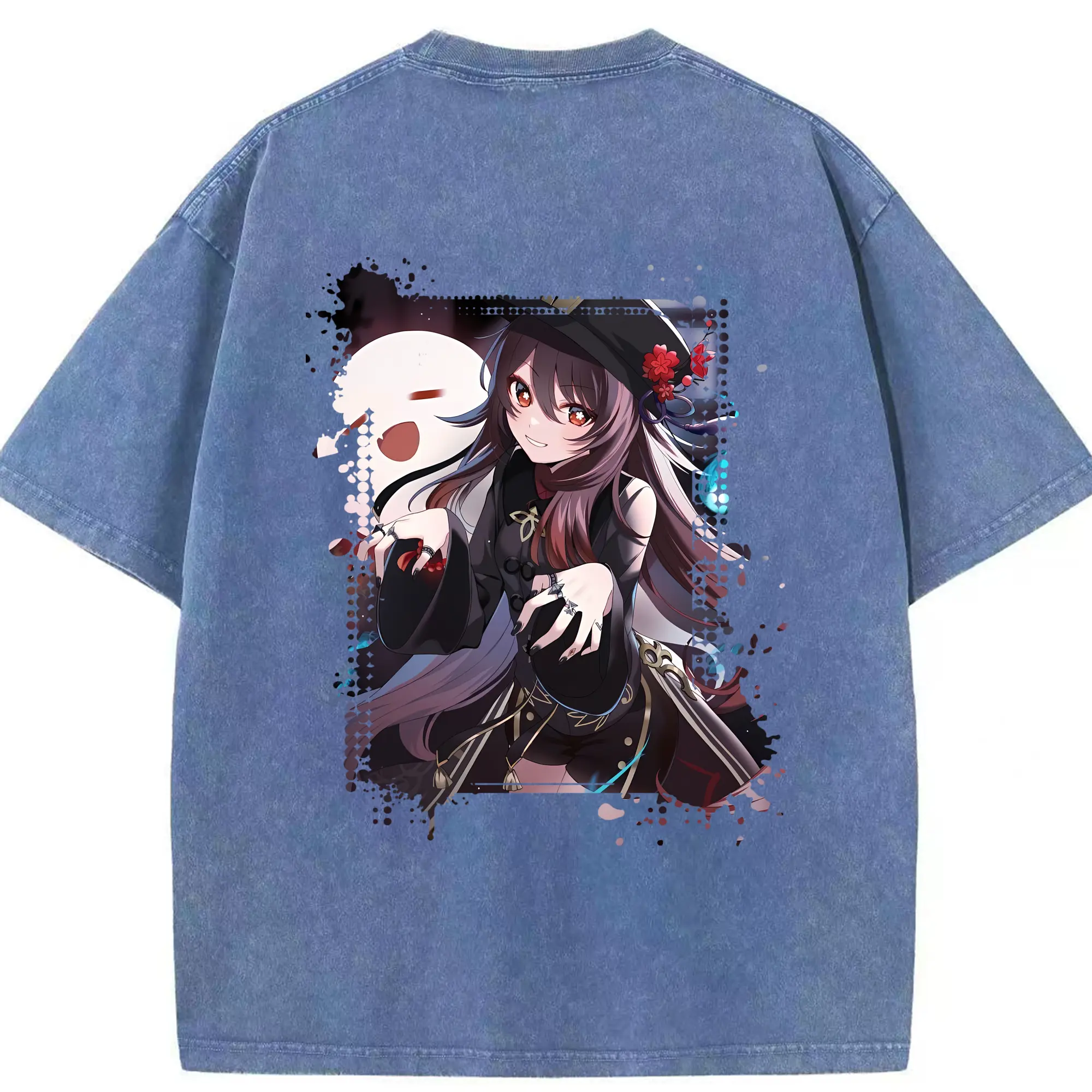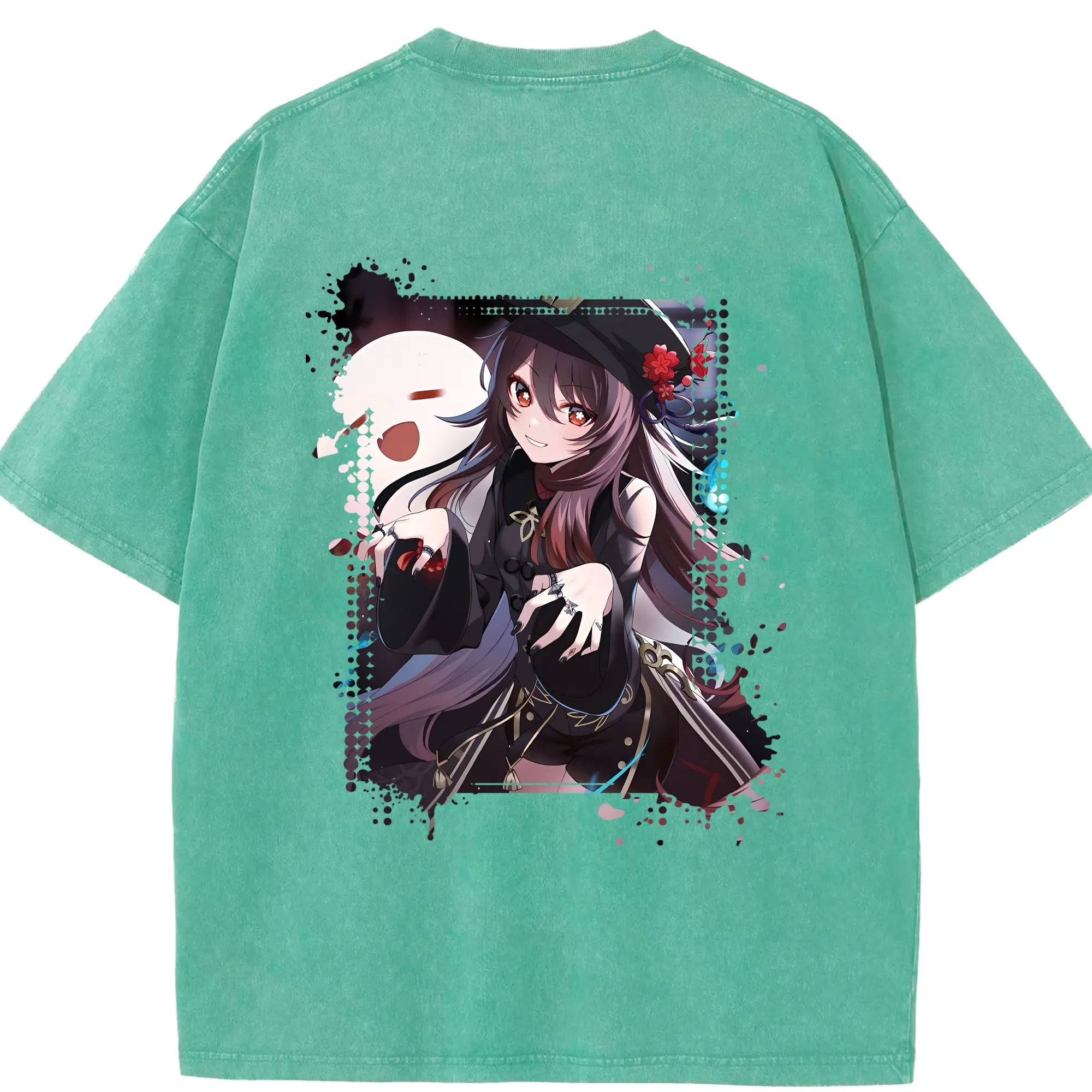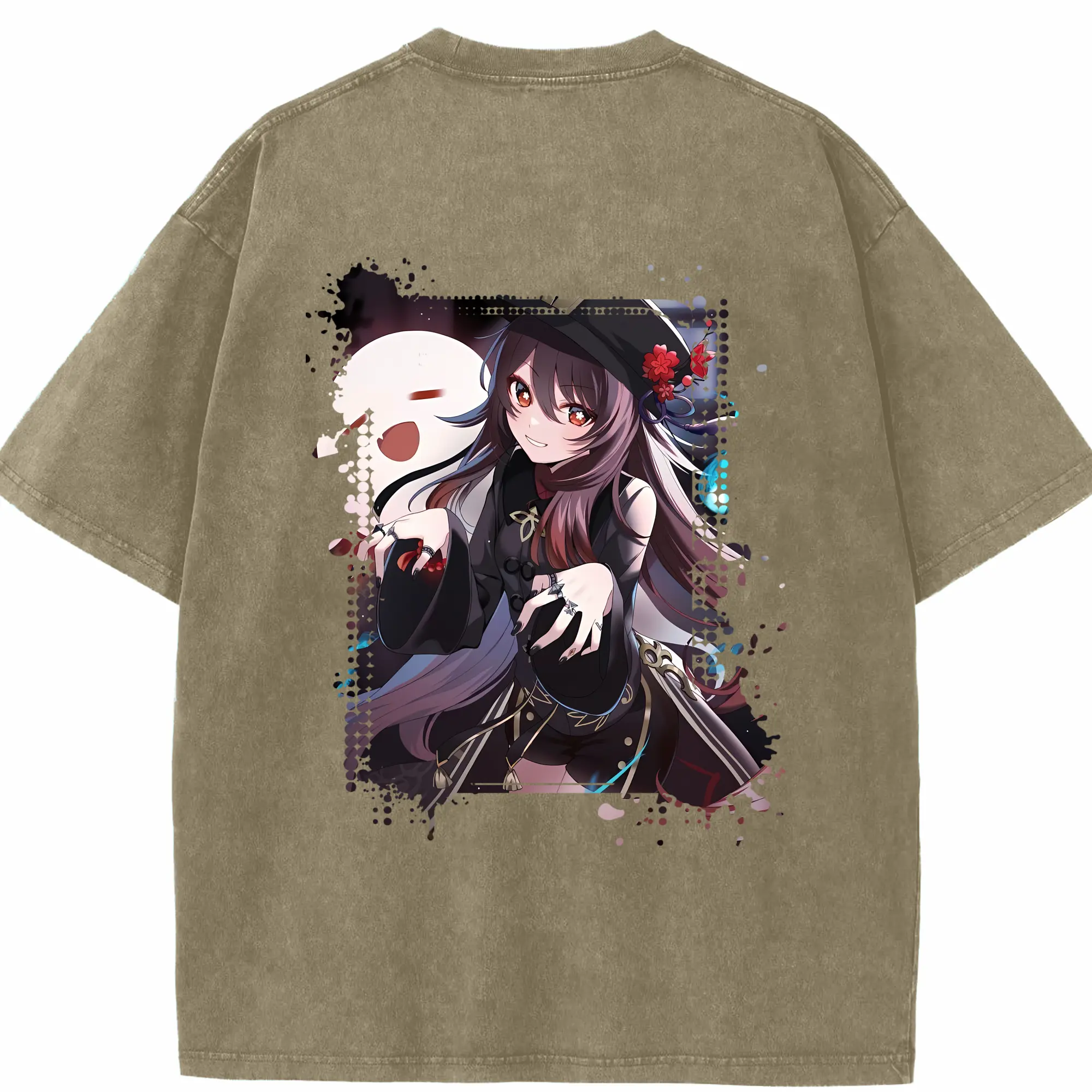 原 神 グッズ フータオ - 綿100% ヴィンテージ風 半袖Tシャツ ・ フロントプリント ・ 柔らか肌触り ・ 通気性 快適 ・ スポーツ カジュアル 外出用