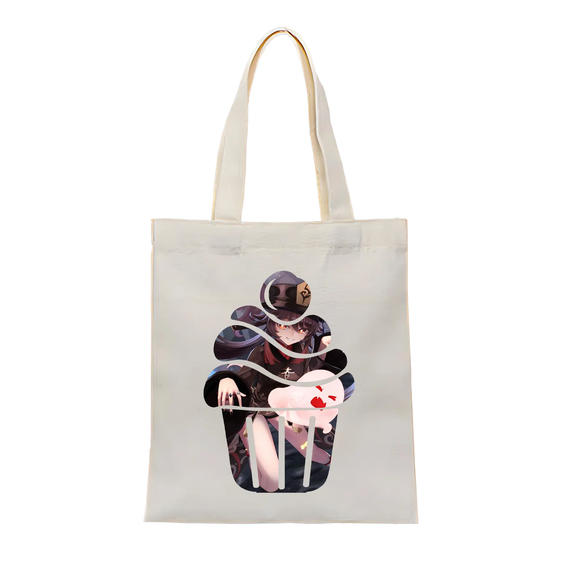 原 神 グッズ フータオ - 縦型キャンバス手提げバッグ(トートバッグ) ・ キャンバス素材 ・ ショッピング用 ・ 軽量 丈夫 お手入れ簡単