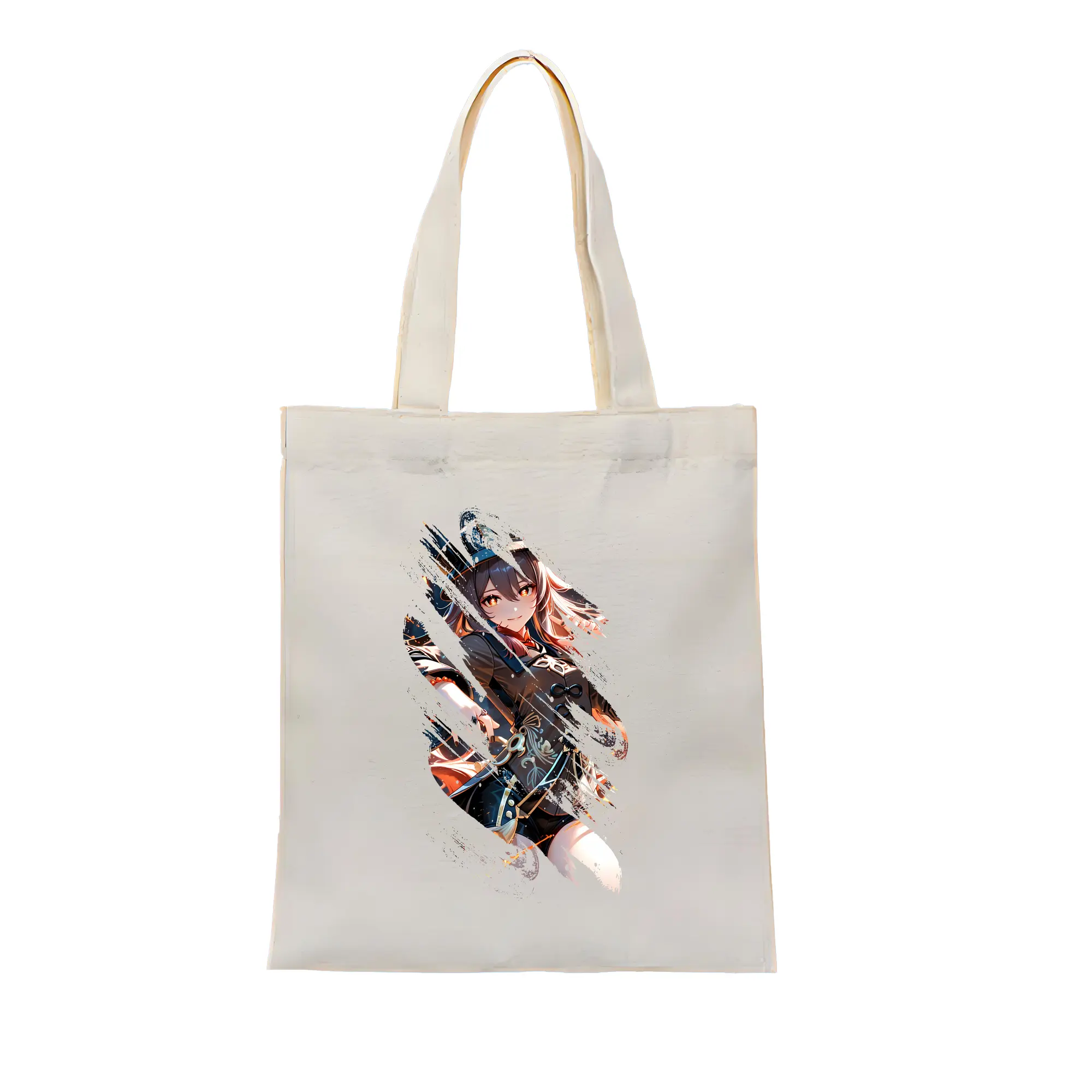 原 神 グッズ フータオ - 縦型キャンバス手提げバッグ(トートバッグ) ・ キャンバス素材 ・ ショッピング用 ・ 軽量 丈夫 お手入れ簡単