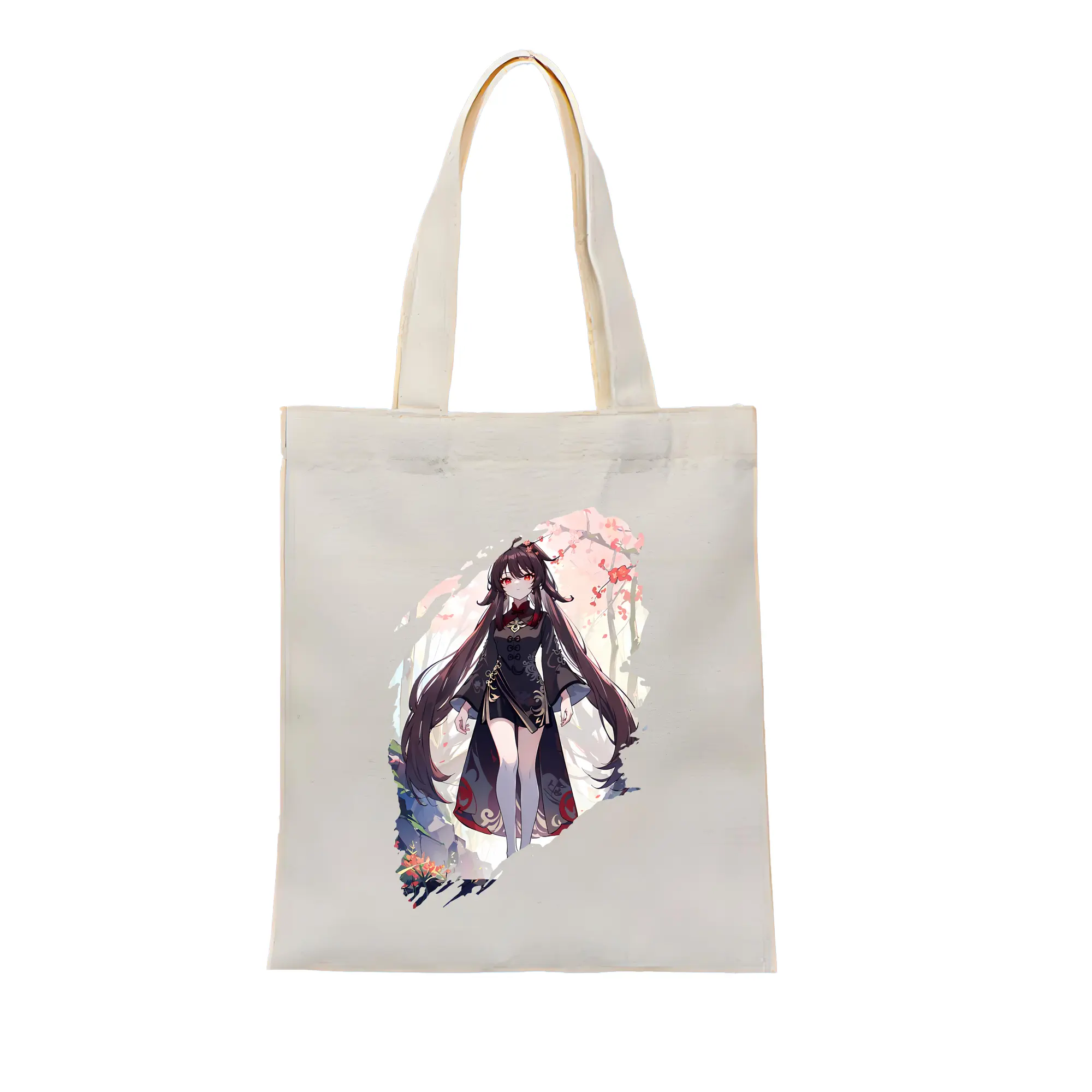 原 神 グッズ フータオ - 縦型キャンバス手提げバッグ(トートバッグ) ・ キャンバス素材 ・ ショッピング用 ・ 軽量 丈夫 お手入れ簡単