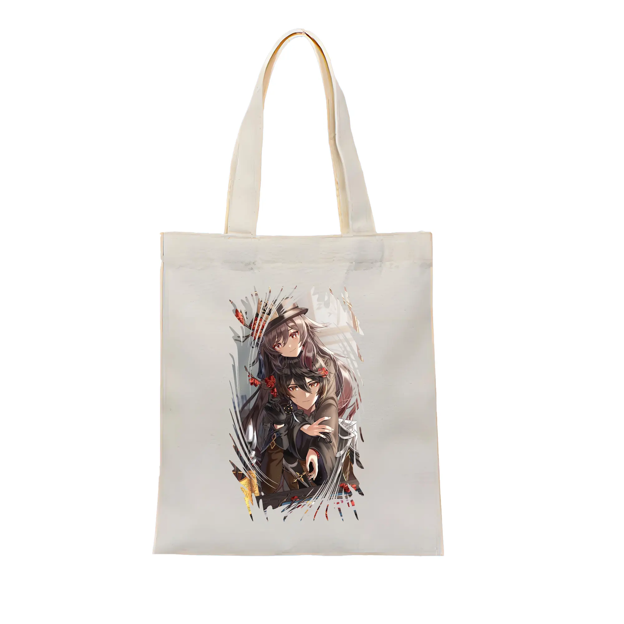原 神 グッズ フータオ - 縦型キャンバス手提げバッグ(トートバッグ) ・ キャンバス素材 ・ ショッピング用 ・ 軽量 丈夫 お手入れ簡単