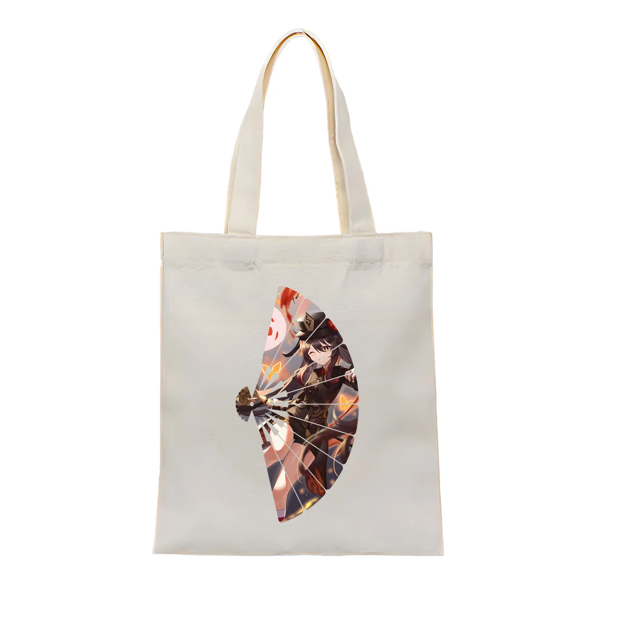 原 神 グッズ フータオ - 縦型キャンバス手提げバッグ(トートバッグ) ・ キャンバス素材 ・ ショッピング用 ・ 軽量 丈夫 お手入れ簡単