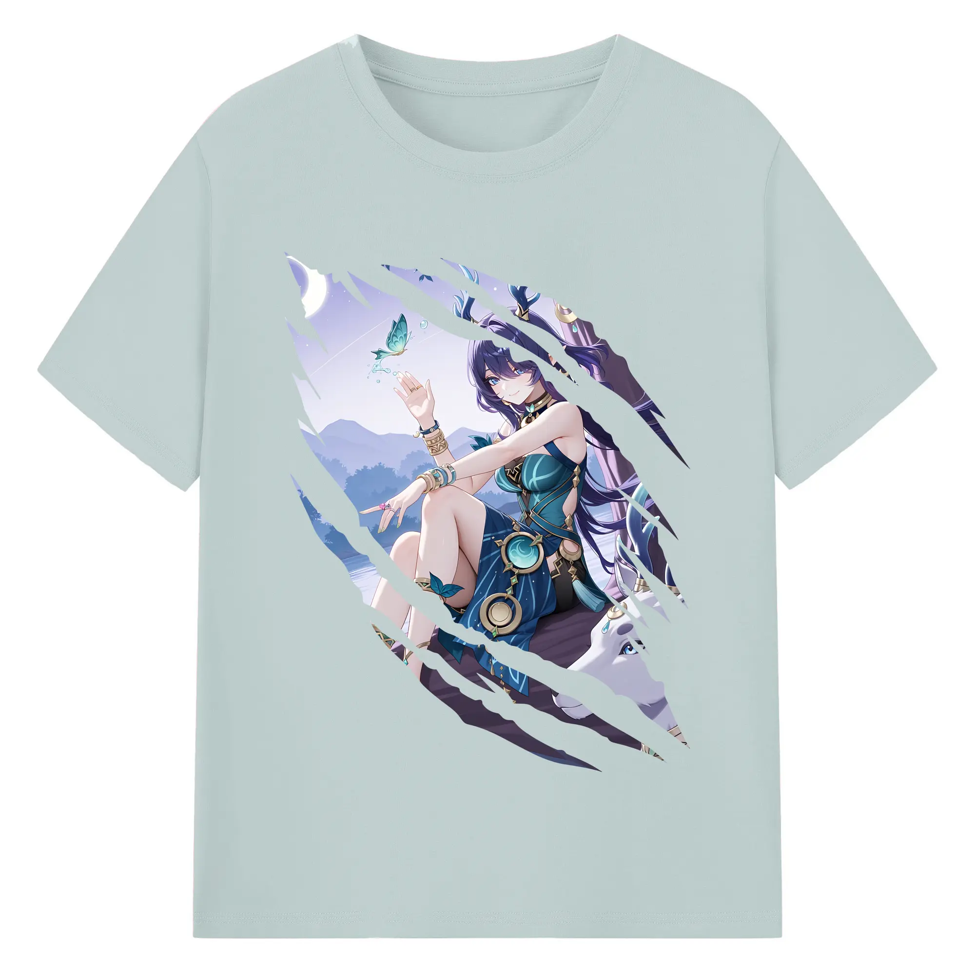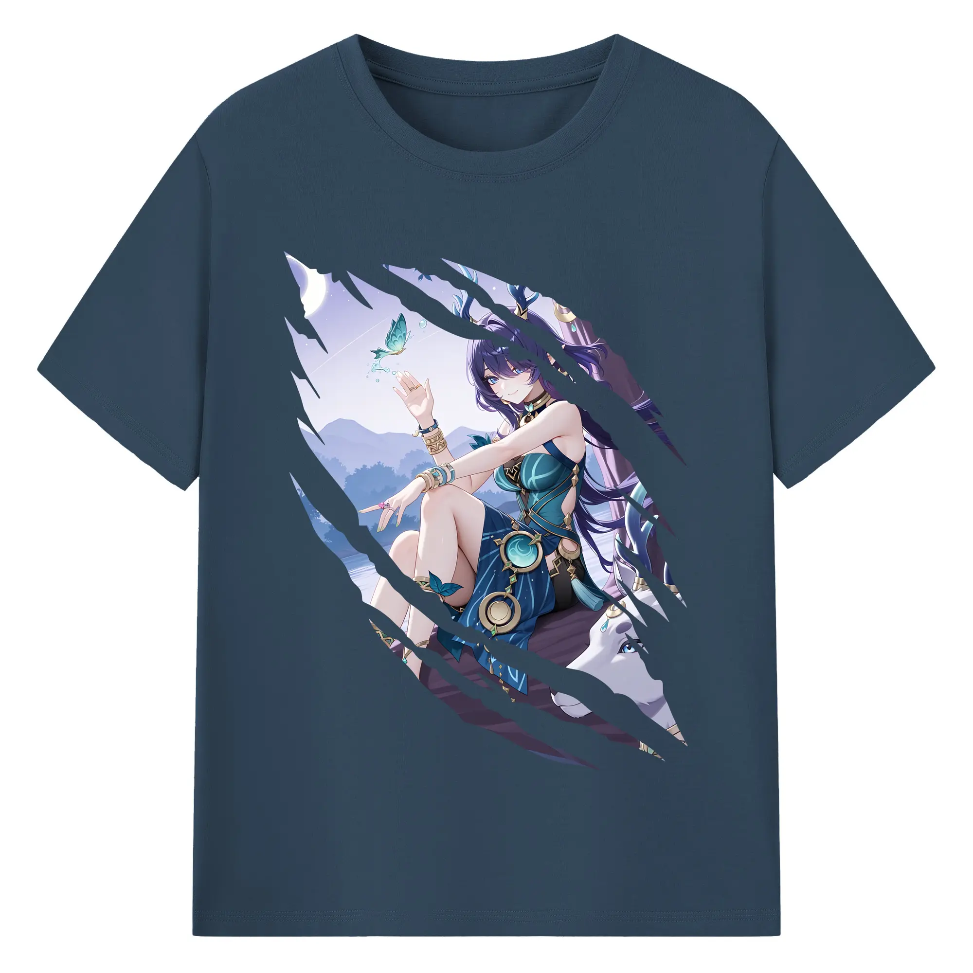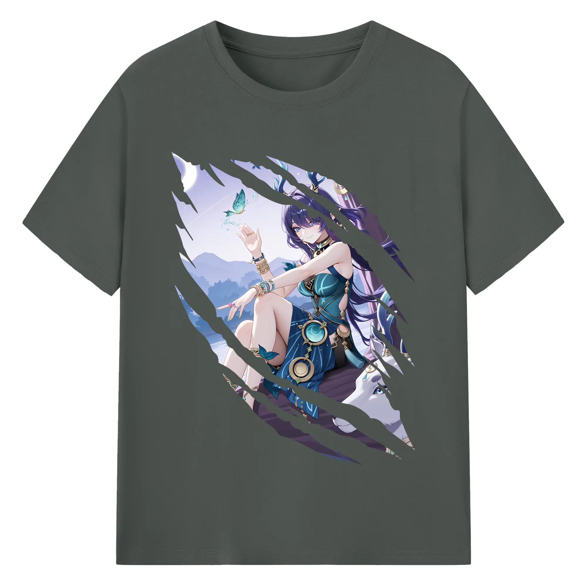 原 神 グッズ ラウマ - 綿100% 半袖Tシャツ ・ バックプリント ・ 快適 通気性 ・ 日常使い 散歩 スポーツ用