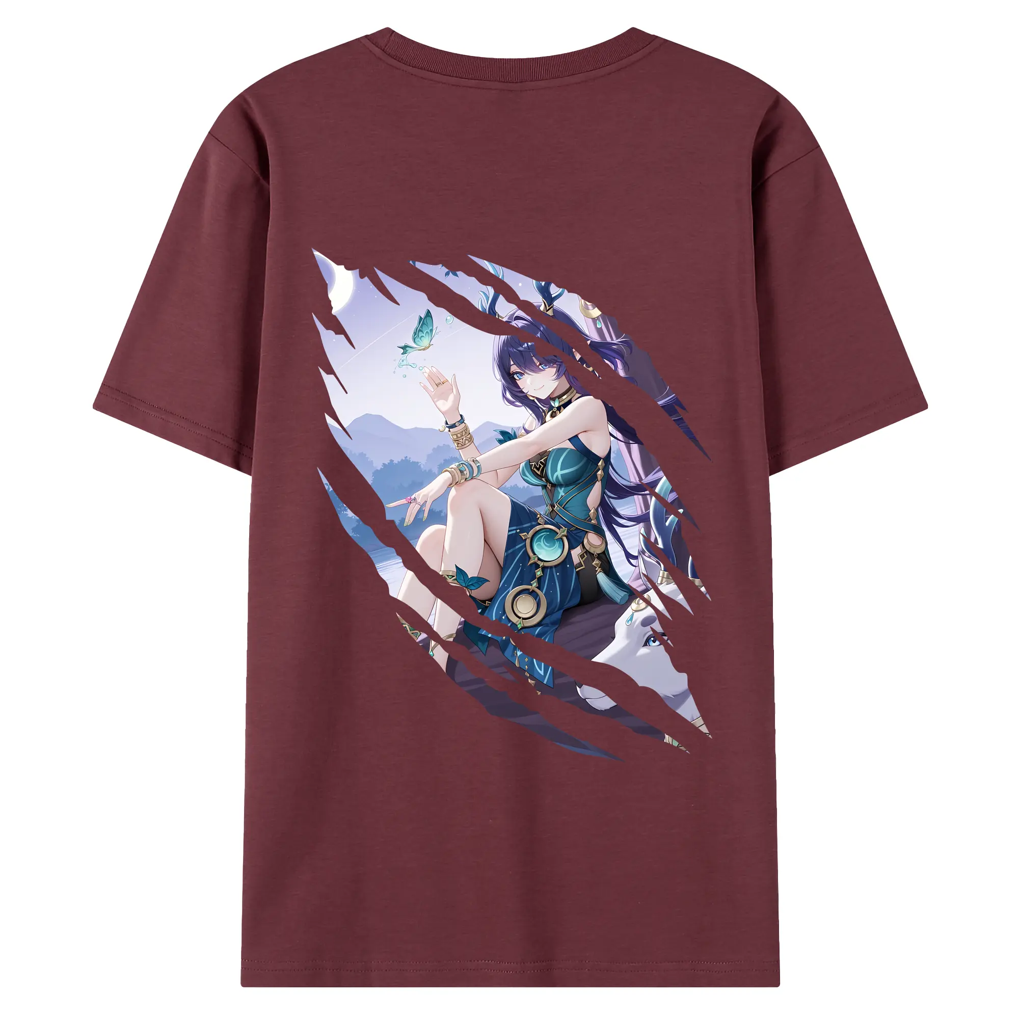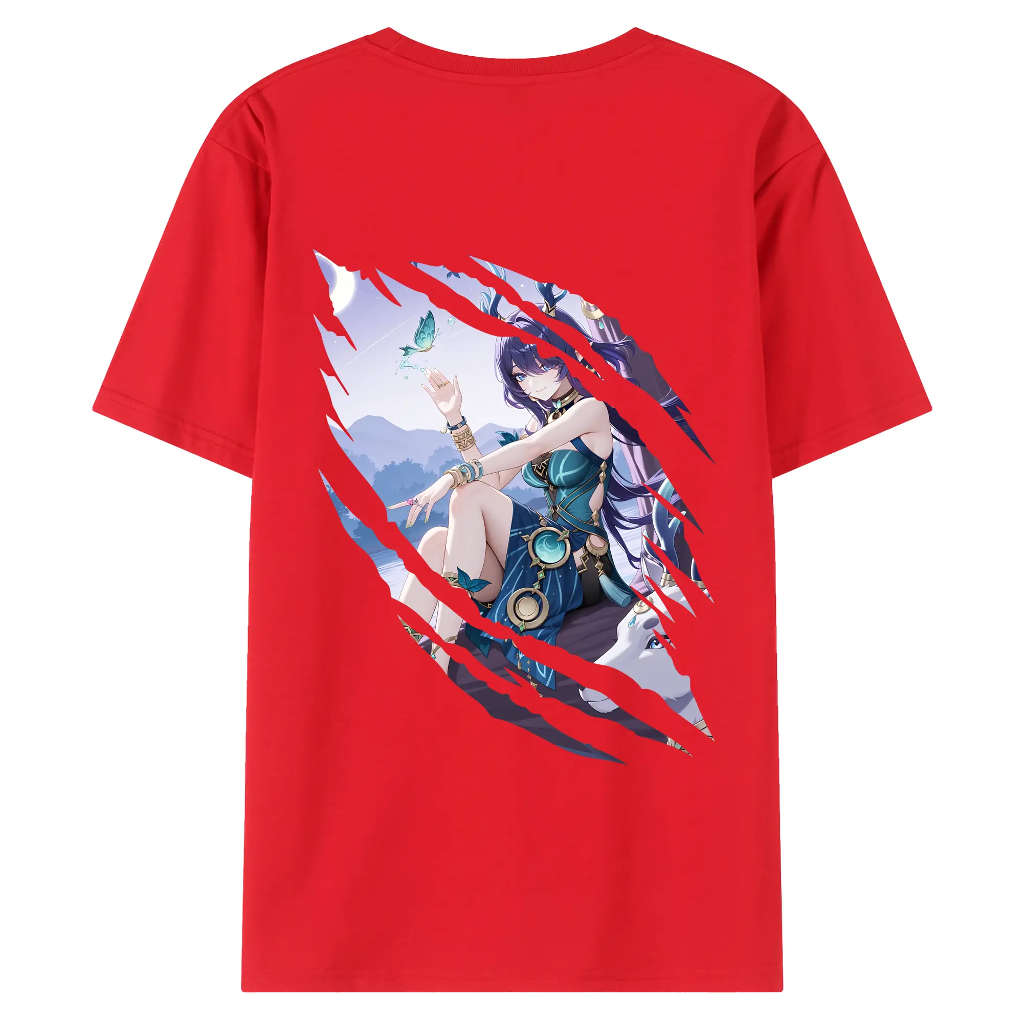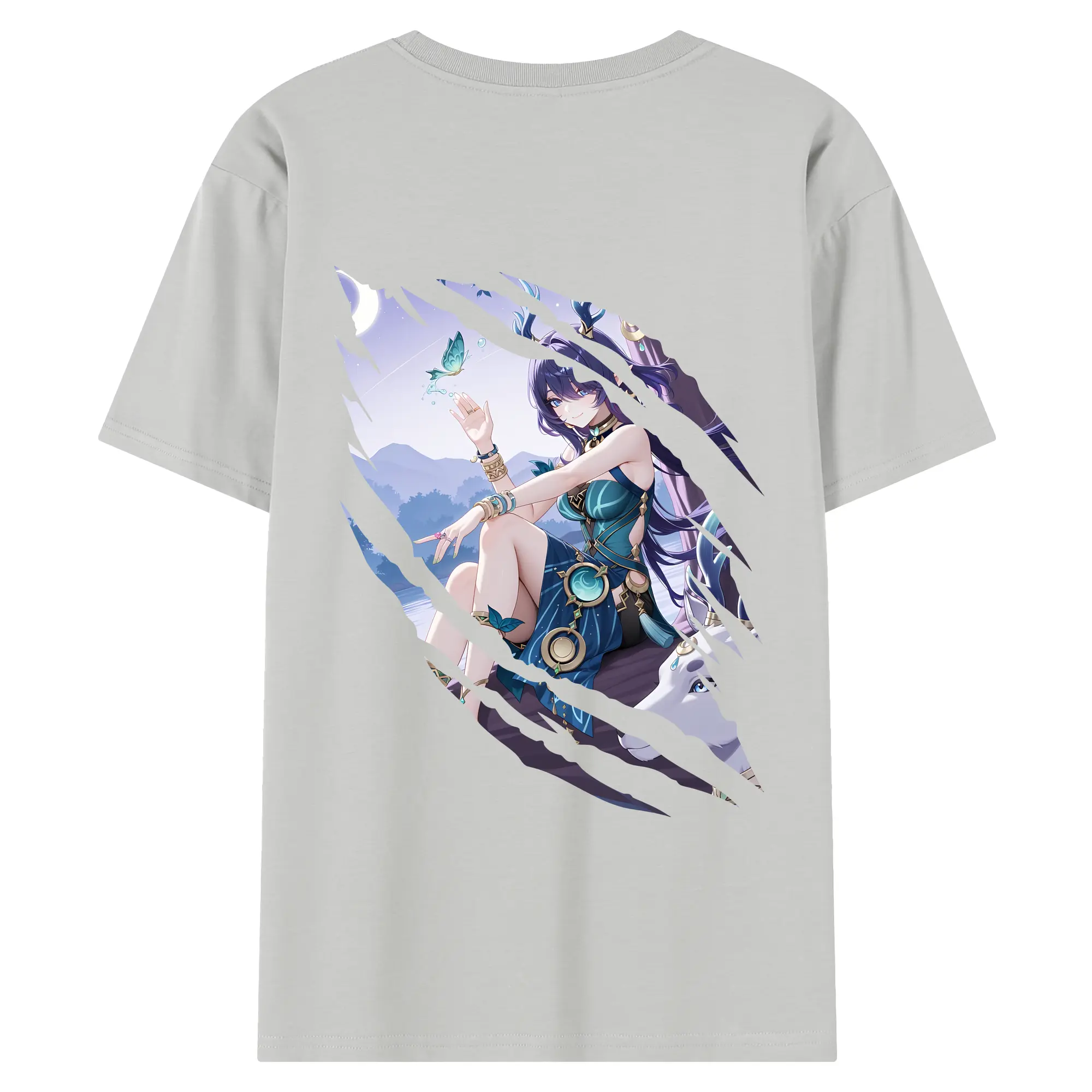 原 神 グッズ ラウマ - 綿100% ヴィンテージ風 半袖Tシャツ ・ 背面プリント ・ 柔らか肌触り ・ 通気性 快適 ・ スポーツ カジュアル 外出用