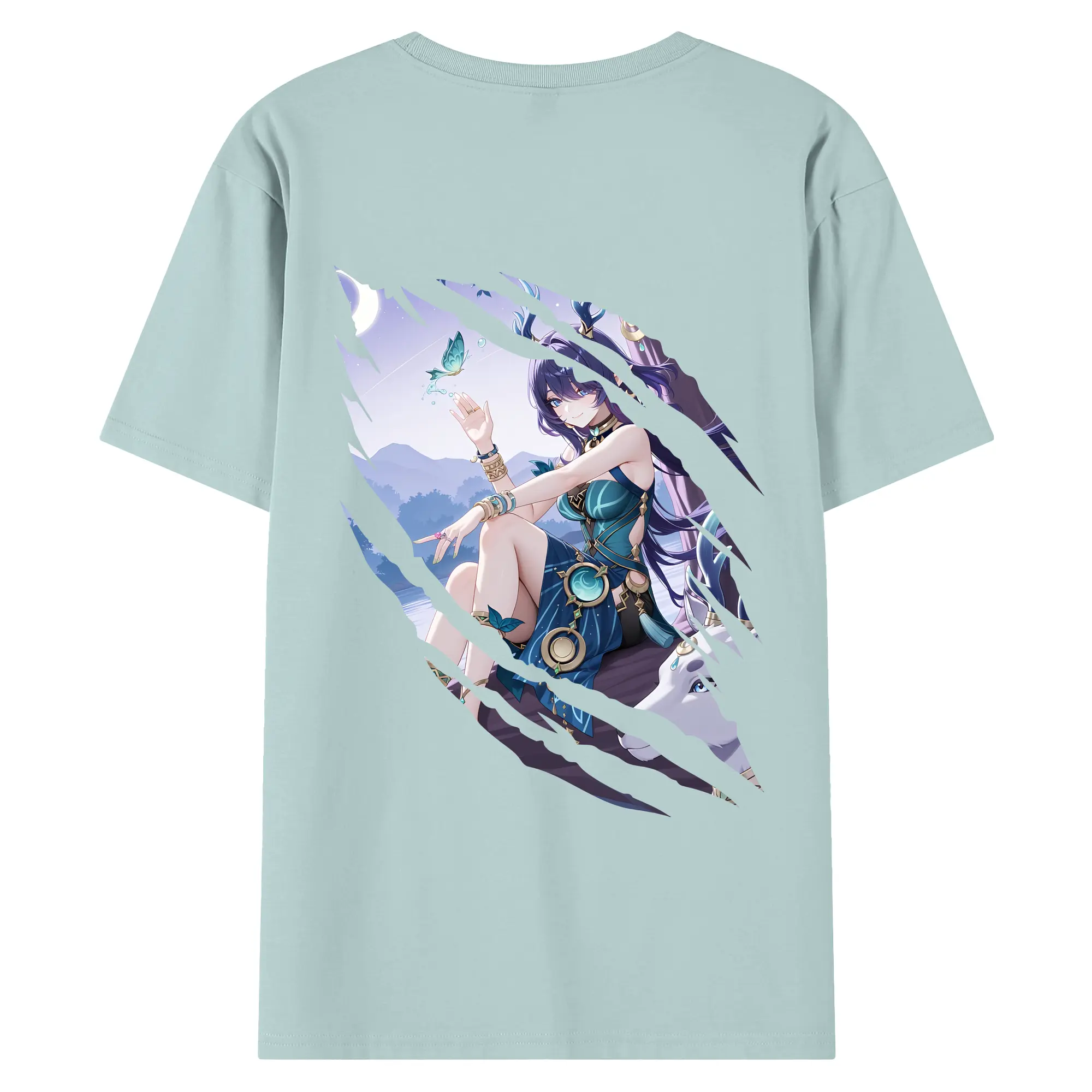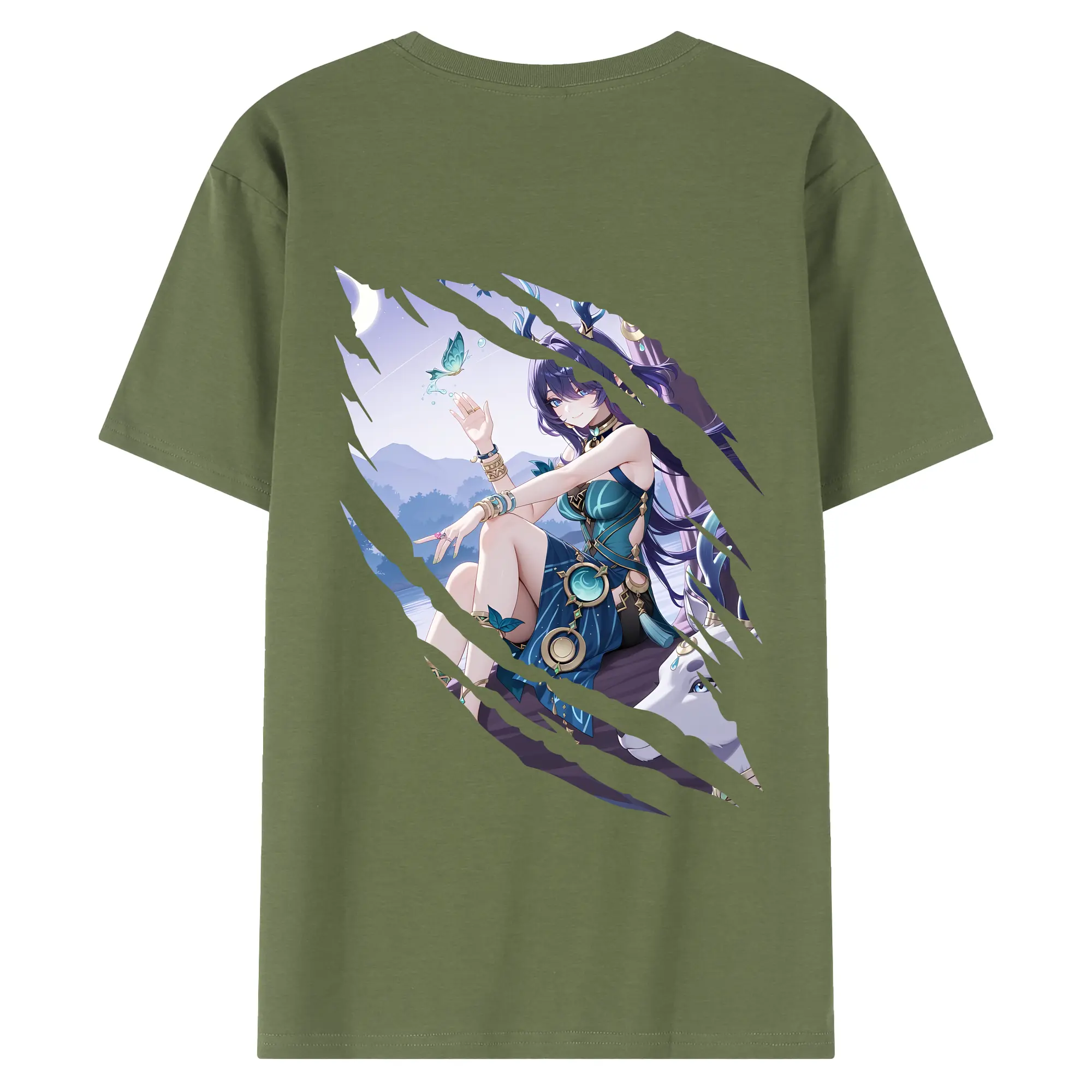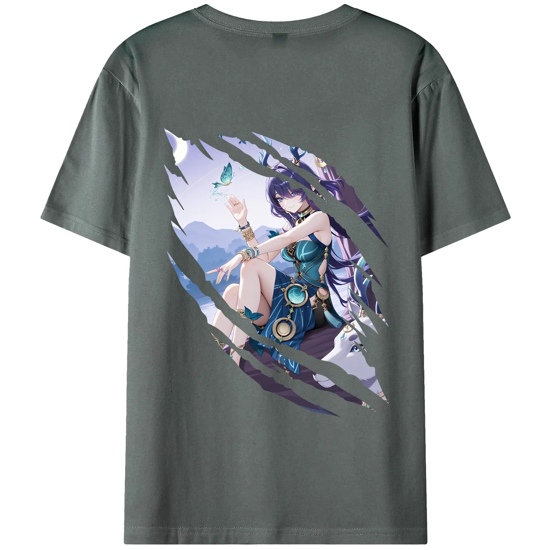 原 神 グッズ ラウマ - 綿100% ヴィンテージ風 半袖Tシャツ ・ 背面プリント ・ 柔らか肌触り ・ 通気性 快適 ・ スポーツ カジュアル 外出用