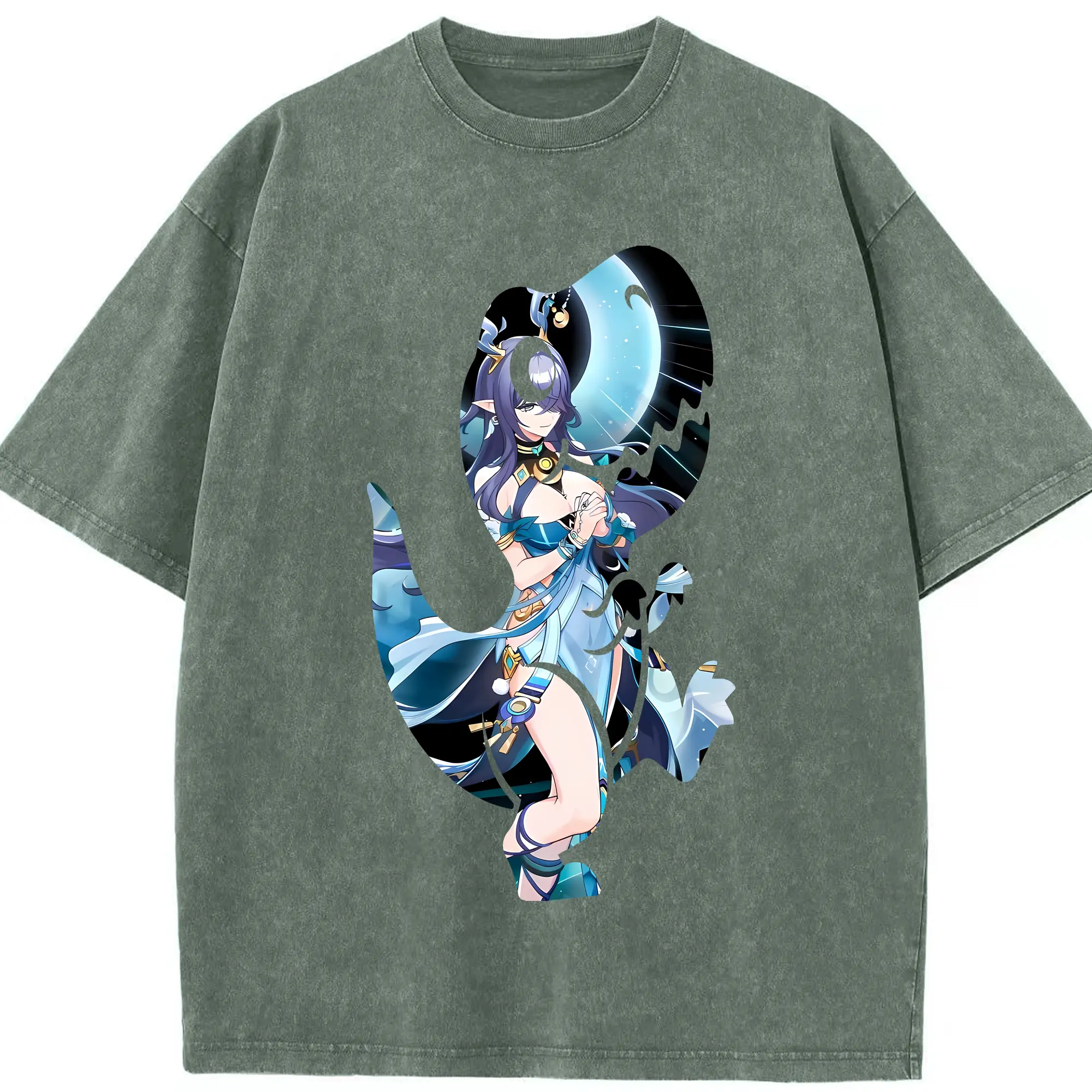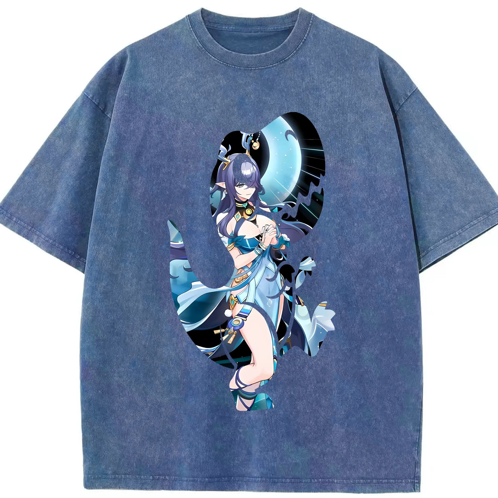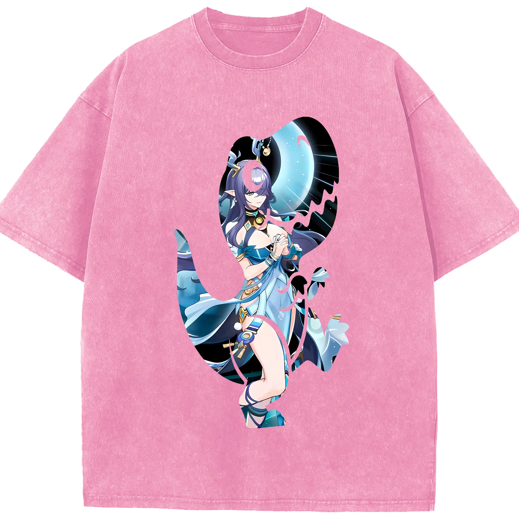原 神 グッズ ラウマ - 綿100% ヴィンテージ風 半袖Tシャツ ・ 背面プリント ・ 柔らか肌触り ・ 通気性 快適 ・ スポーツ カジュアル 外出用