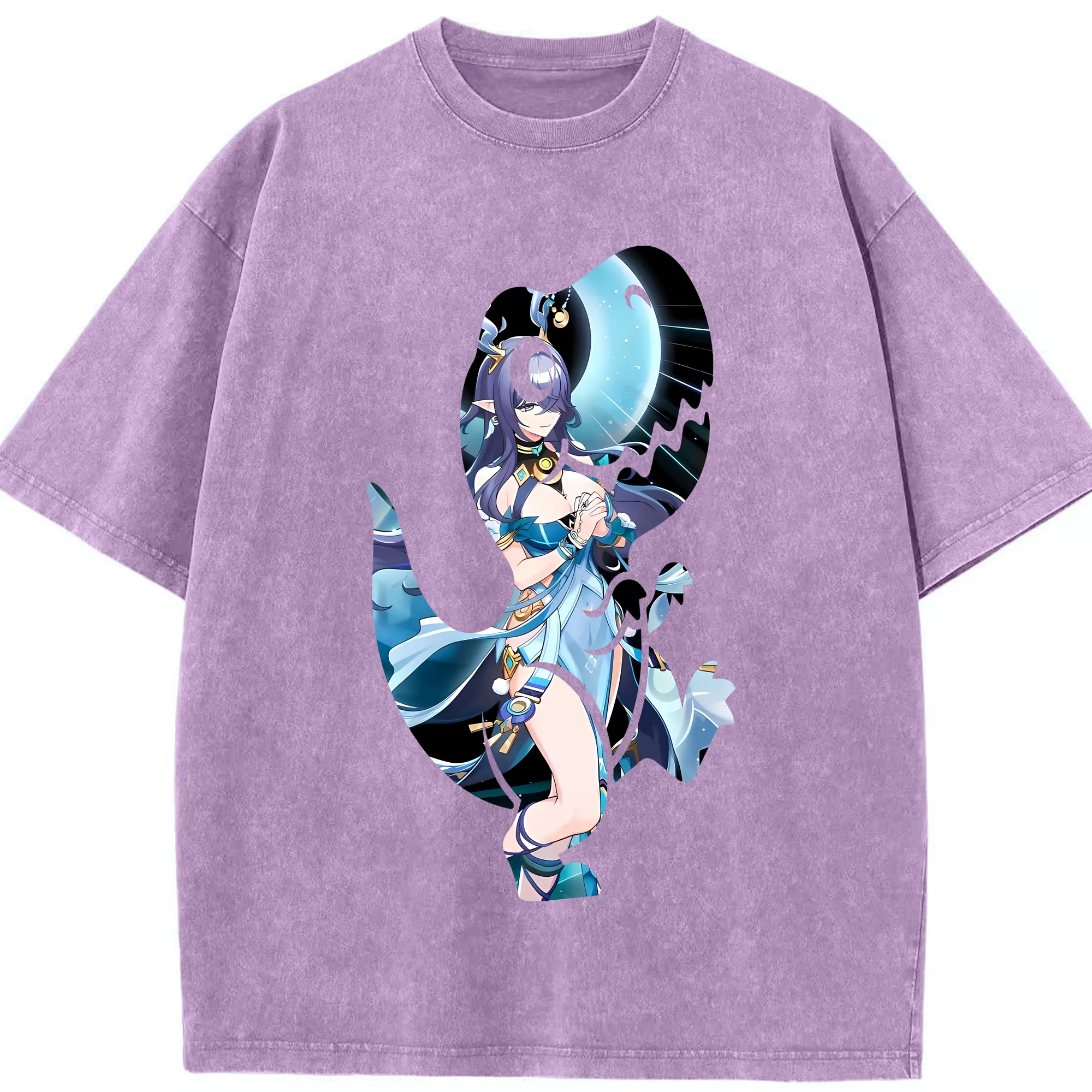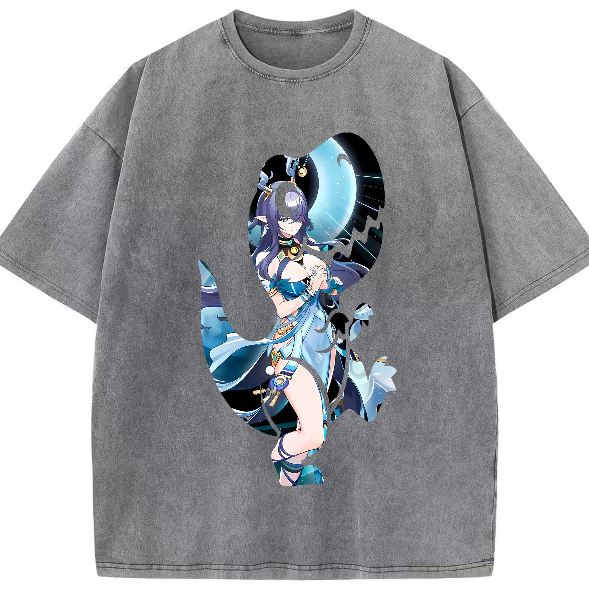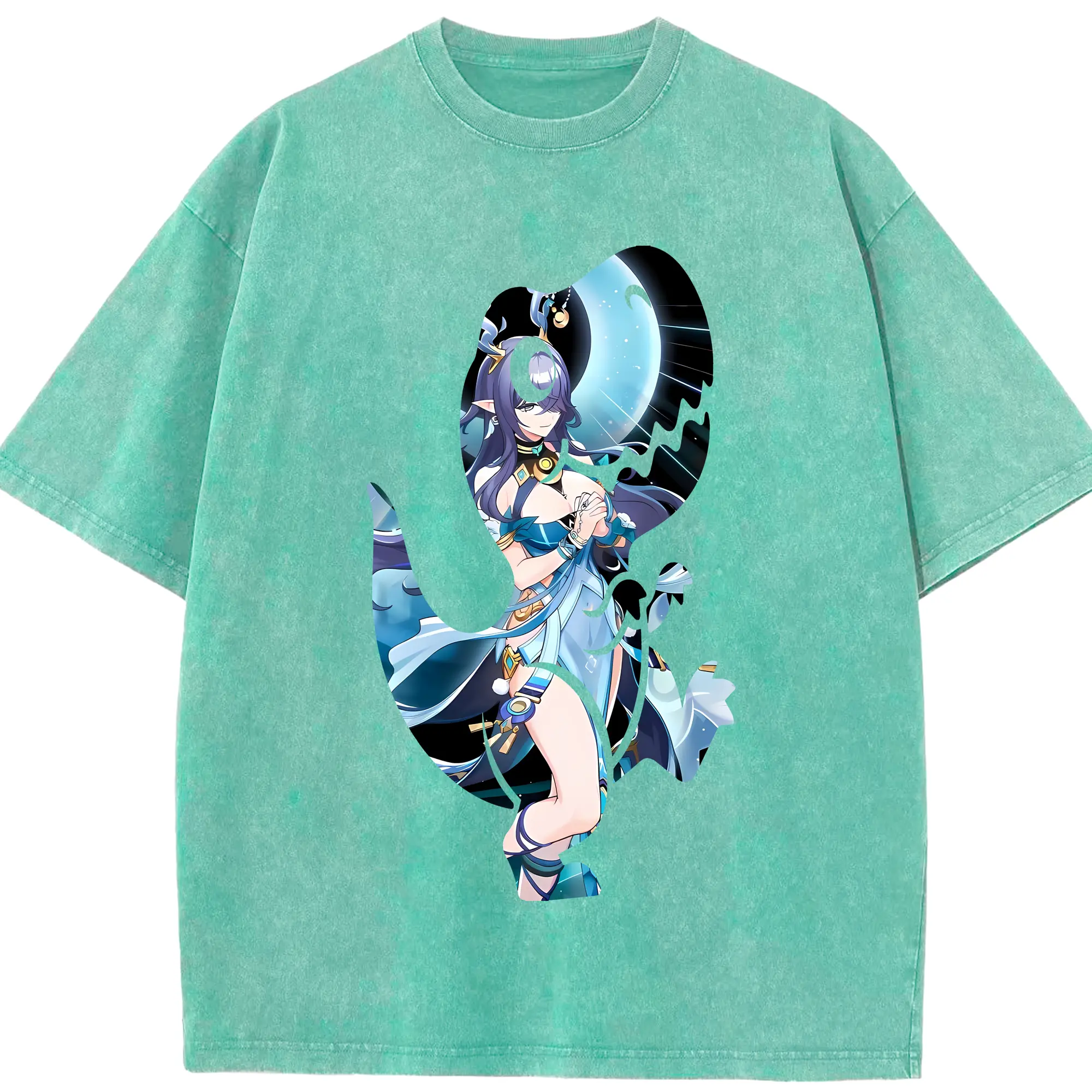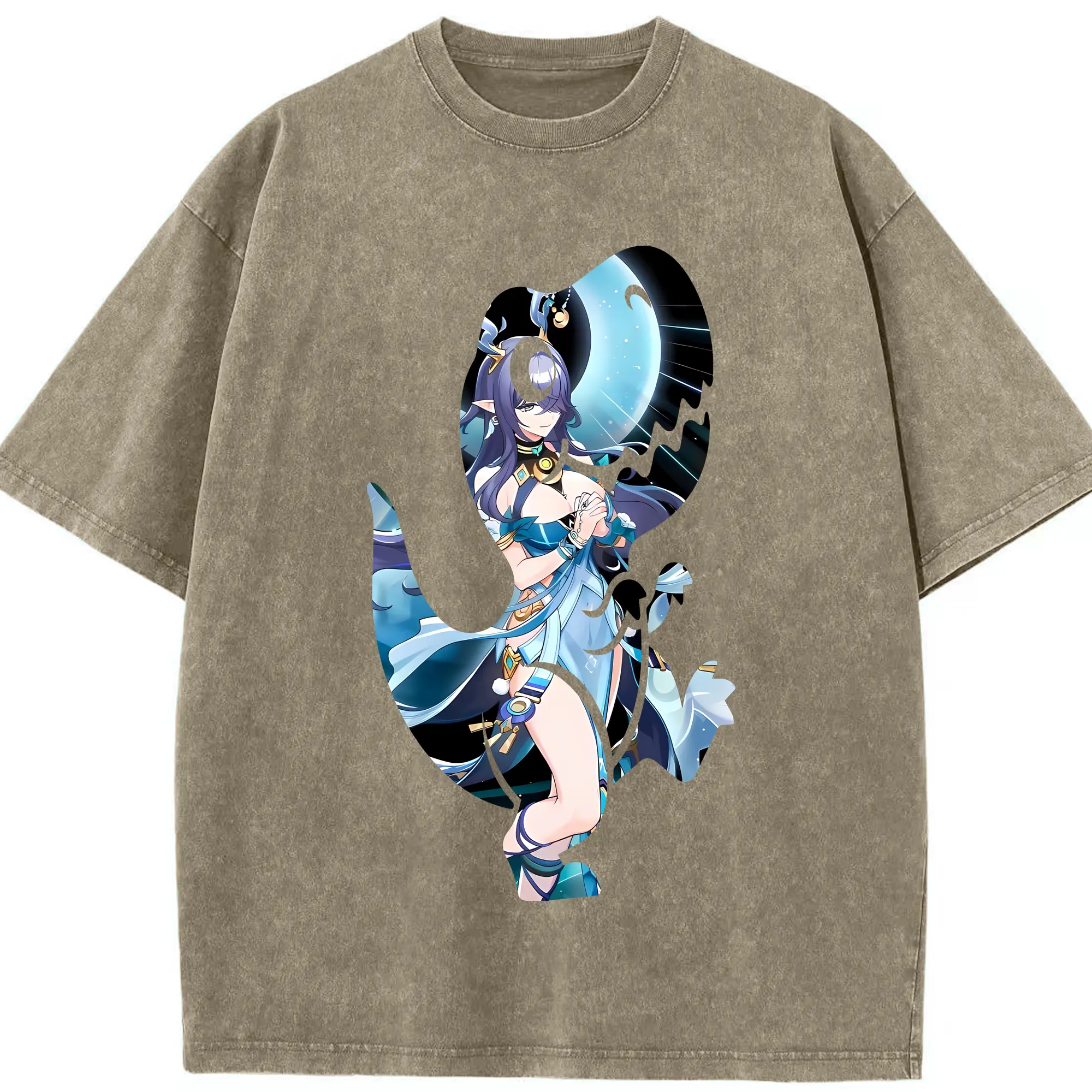 原 神 グッズ ラウマ - 綿100% ヴィンテージ風 半袖Tシャツ ・ 背面プリント ・ 柔らか肌触り ・ 通気性 快適 ・ スポーツ カジュアル 外出用