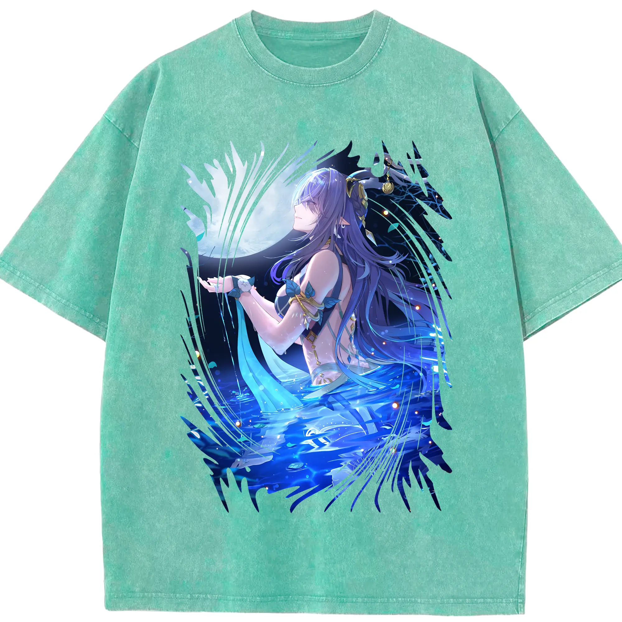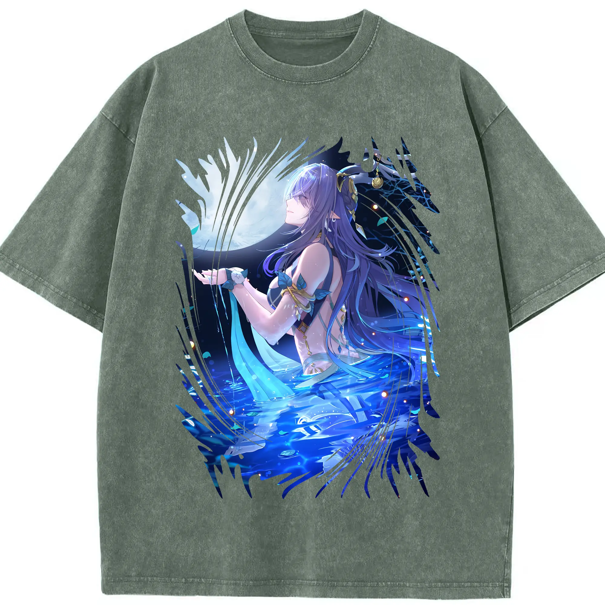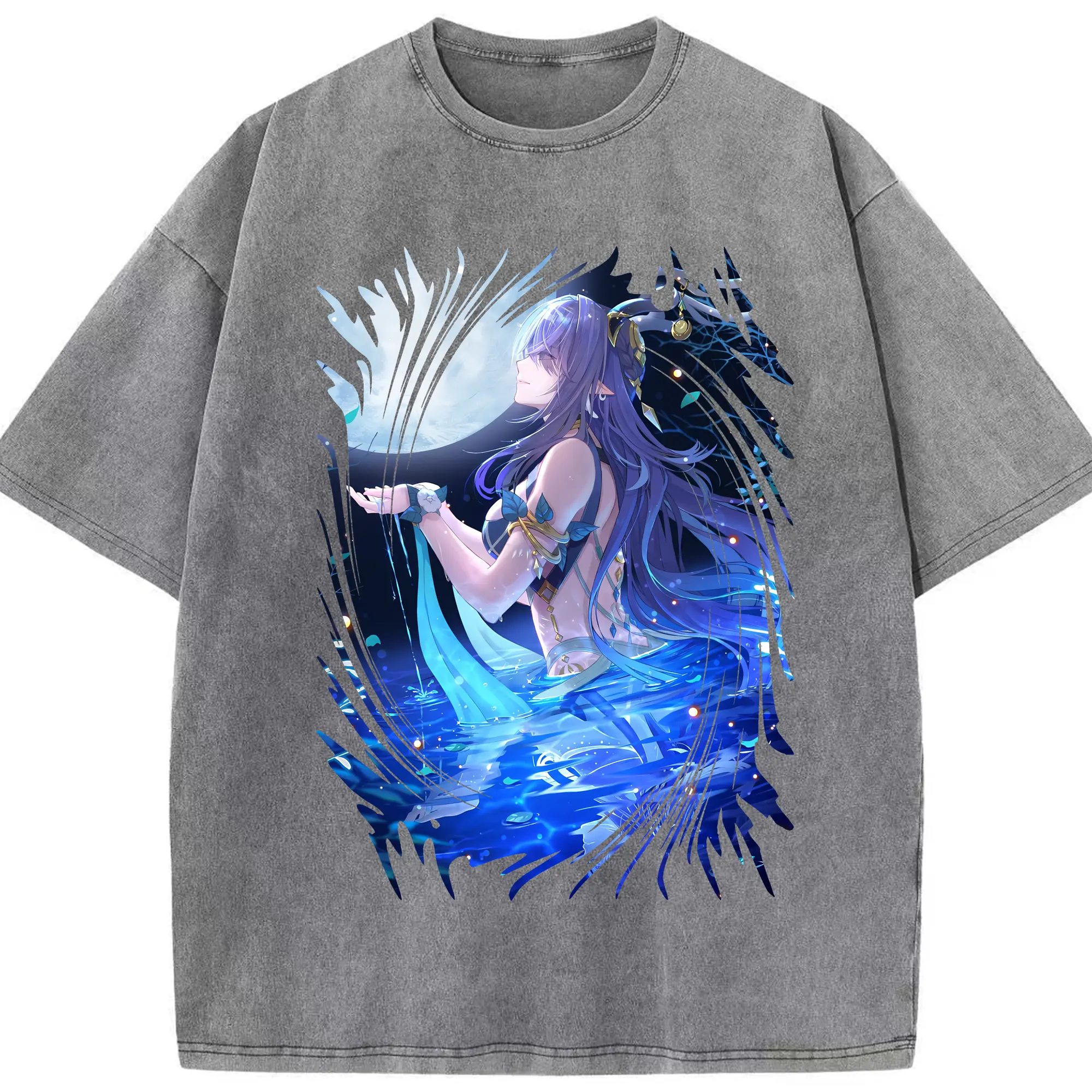 原 神 グッズ ラウマ - 綿100% ヴィンテージ風 半袖Tシャツ ・ 背面プリント ・ 柔らか肌触り ・ 通気性 快適 ・ スポーツ カジュアル 外出用