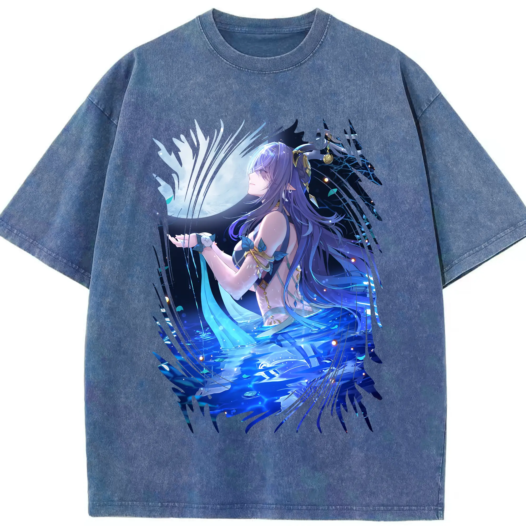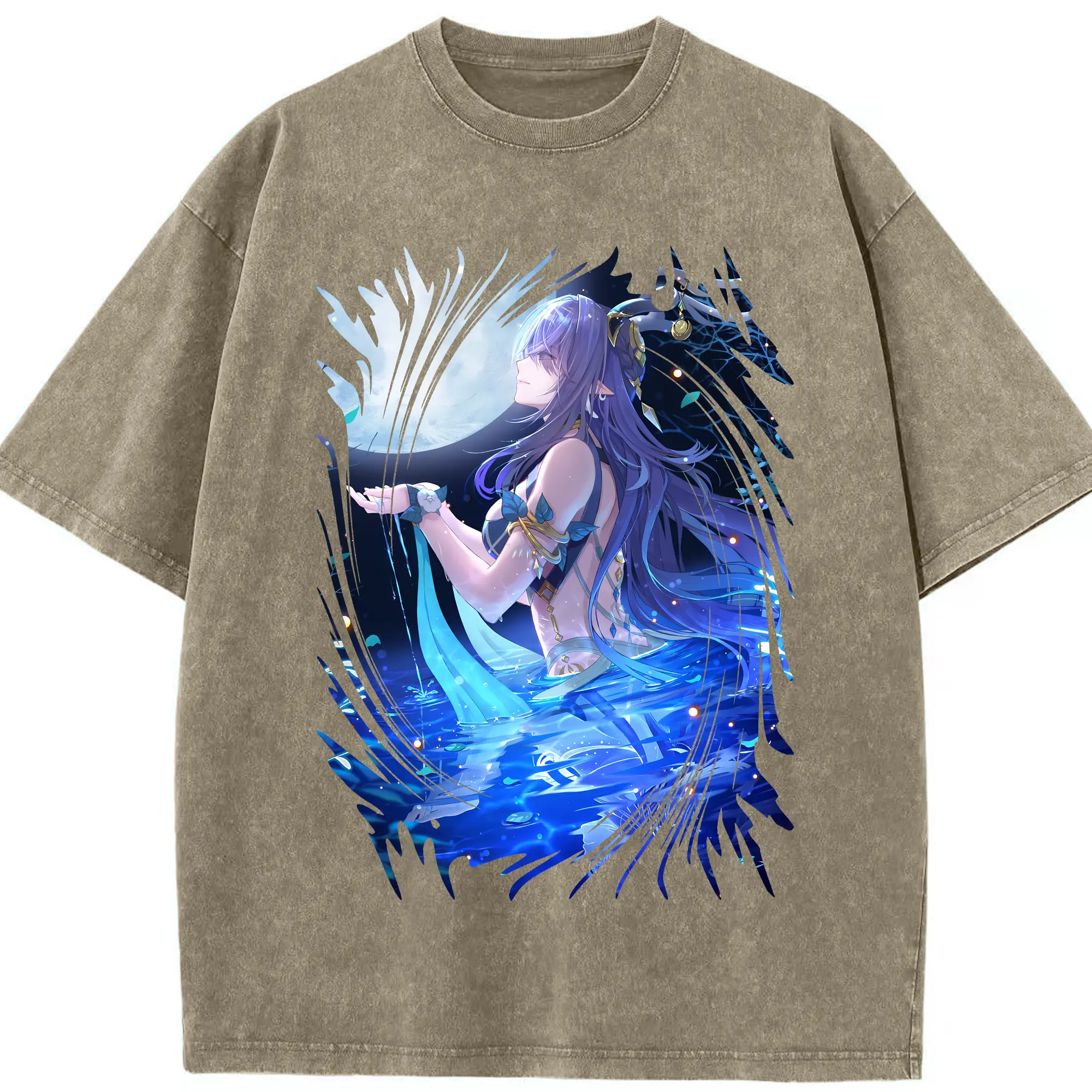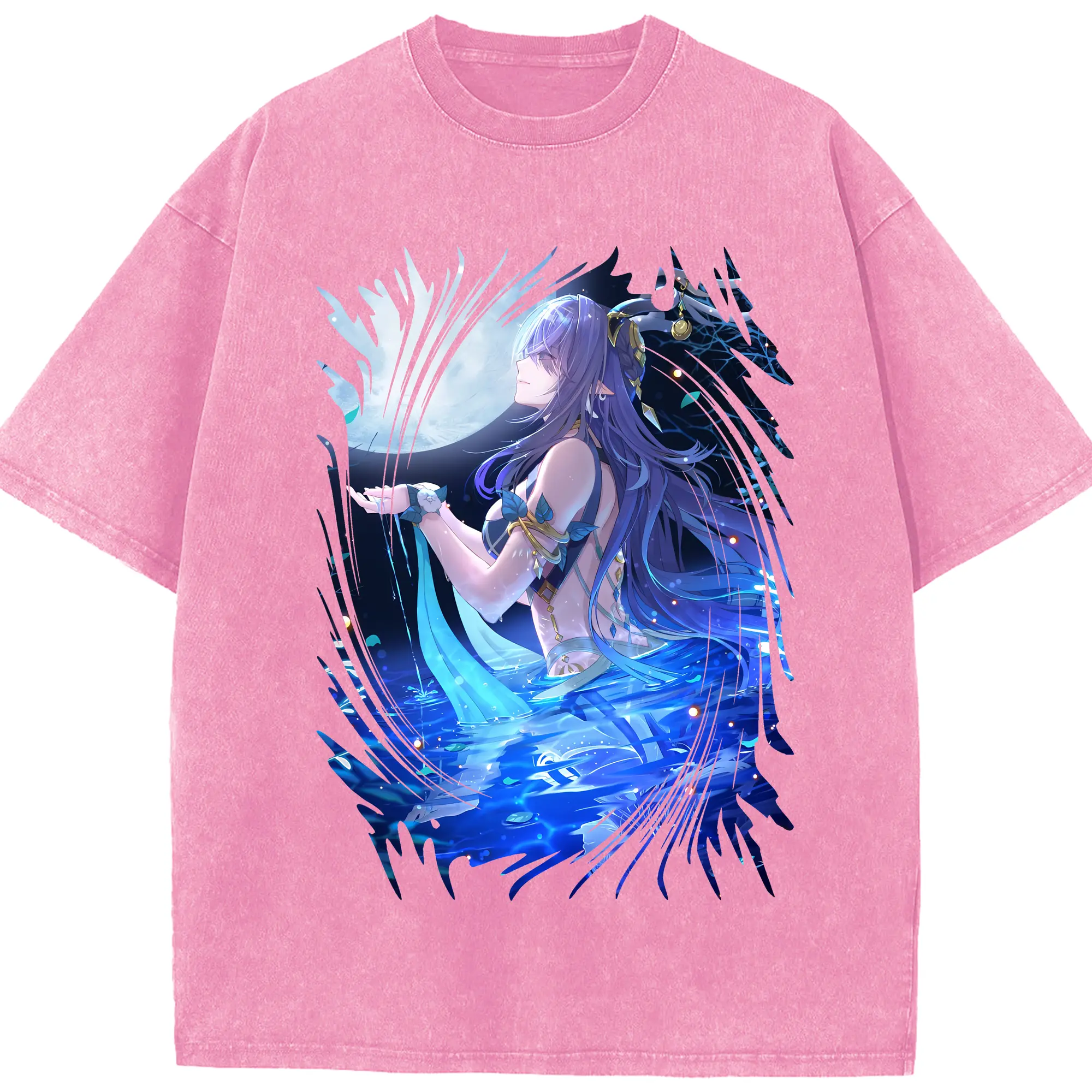 原 神 グッズ ラウマ - 綿100% ヴィンテージ風 半袖Tシャツ ・ 背面プリント ・ 柔らか肌触り ・ 通気性 快適 ・ スポーツ カジュアル 外出用