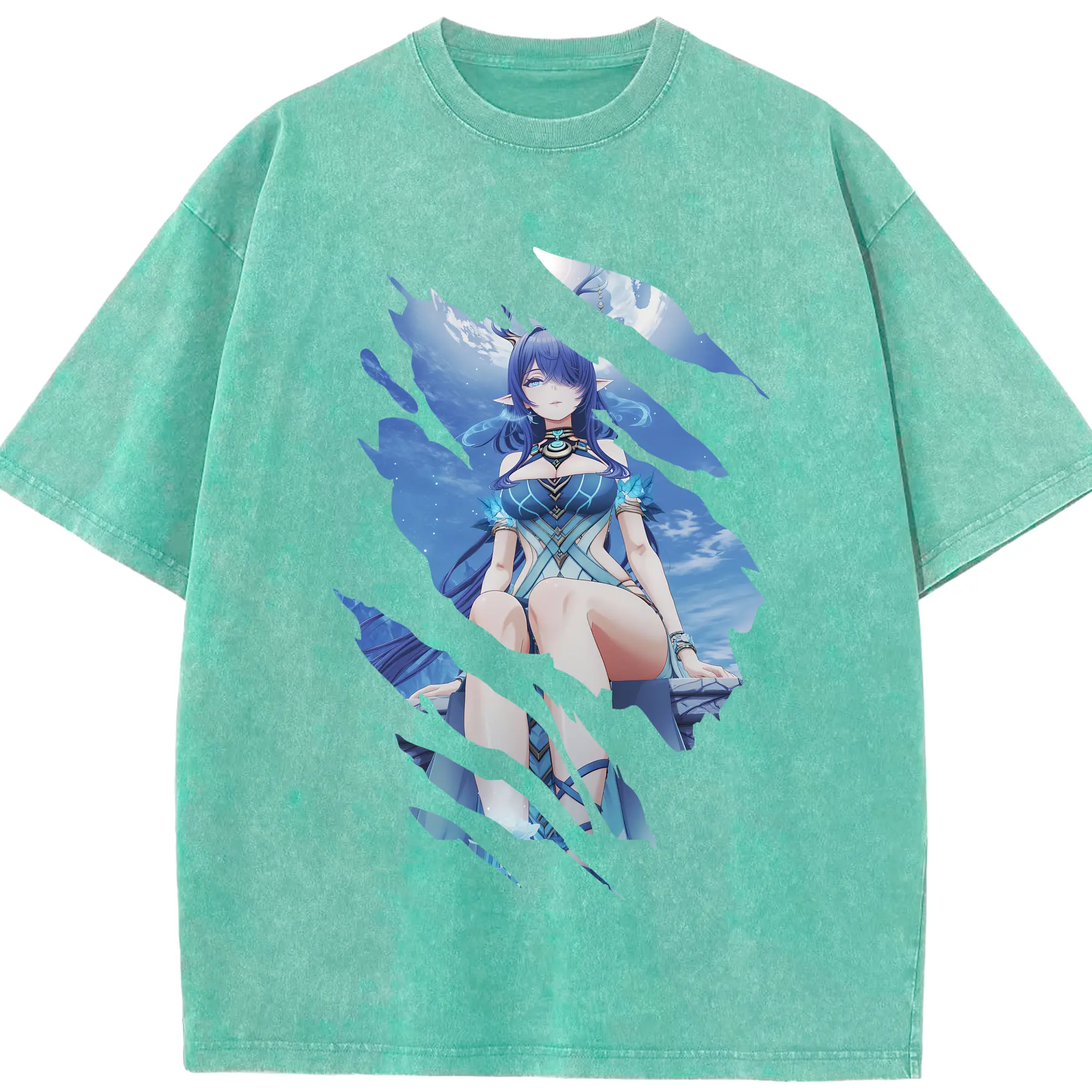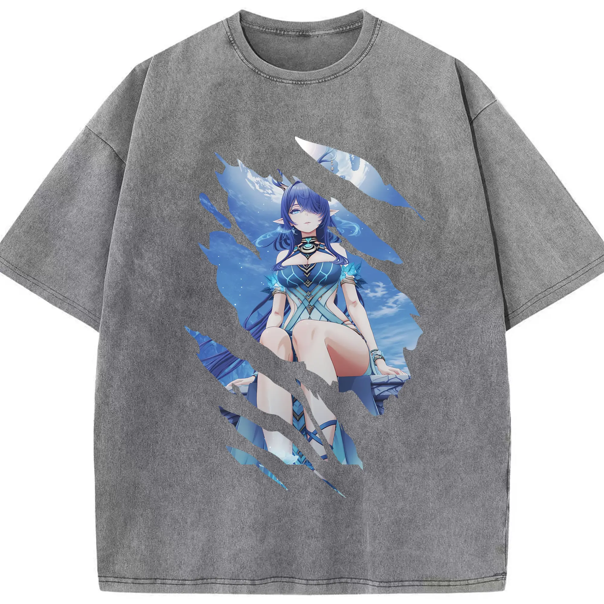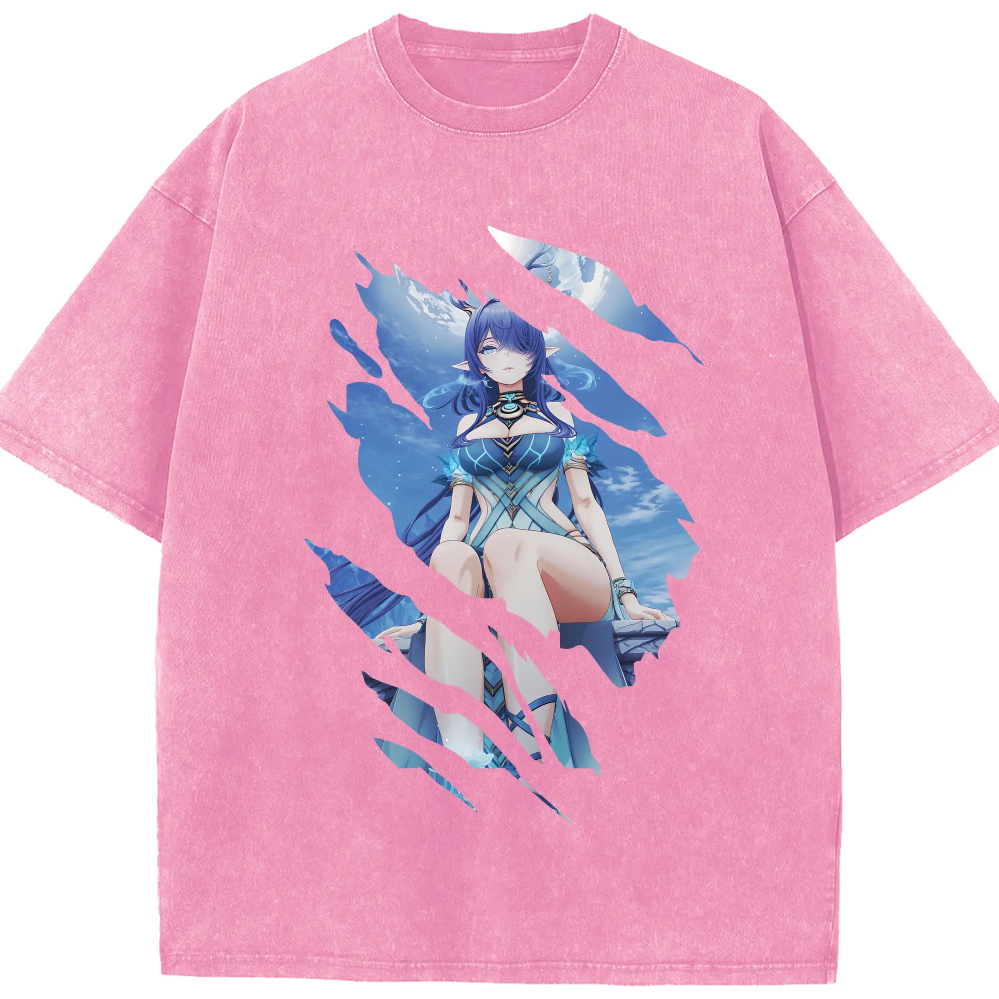 原 神 グッズ ラウマ - 綿100% ヴィンテージ風 半袖Tシャツ ・ 背面プリント ・ 柔らか肌触り ・ 通気性 快適 ・ スポーツ カジュアル 外出用