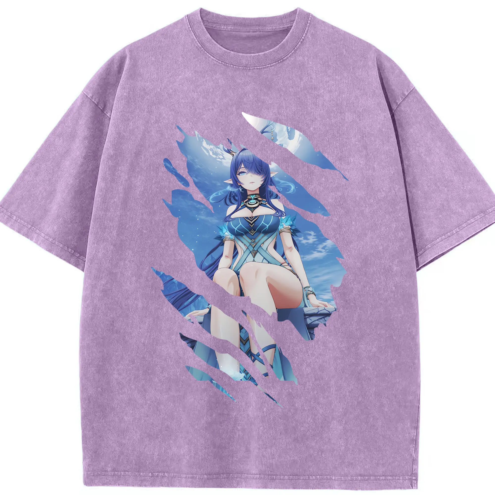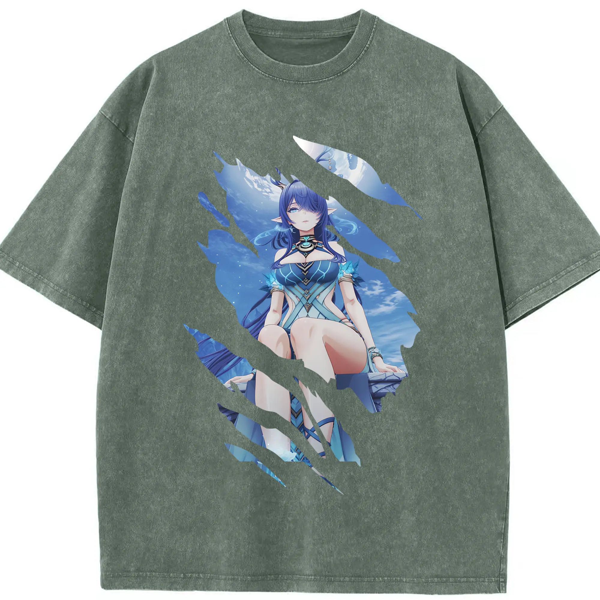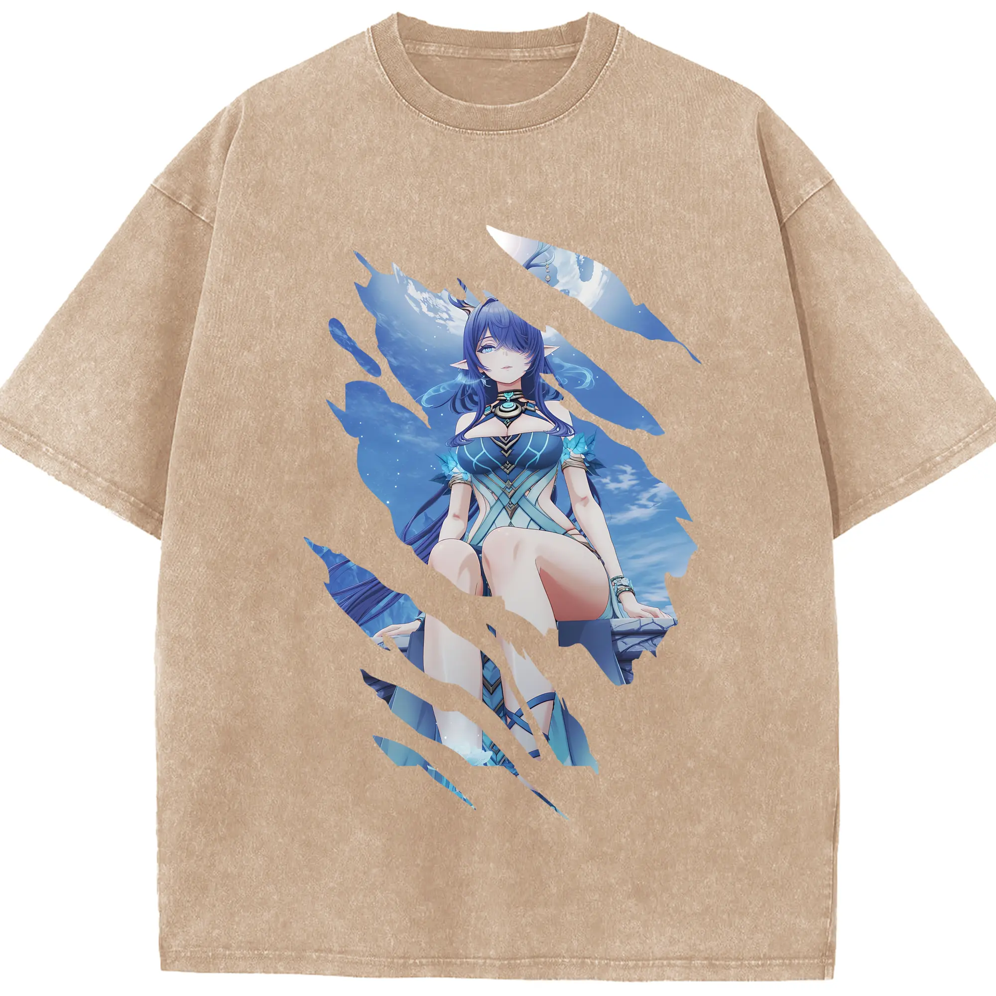 原 神 グッズ ラウマ - 綿100% ヴィンテージ風 半袖Tシャツ ・ 背面プリント ・ 柔らか肌触り ・ 通気性 快適 ・ スポーツ カジュアル 外出用