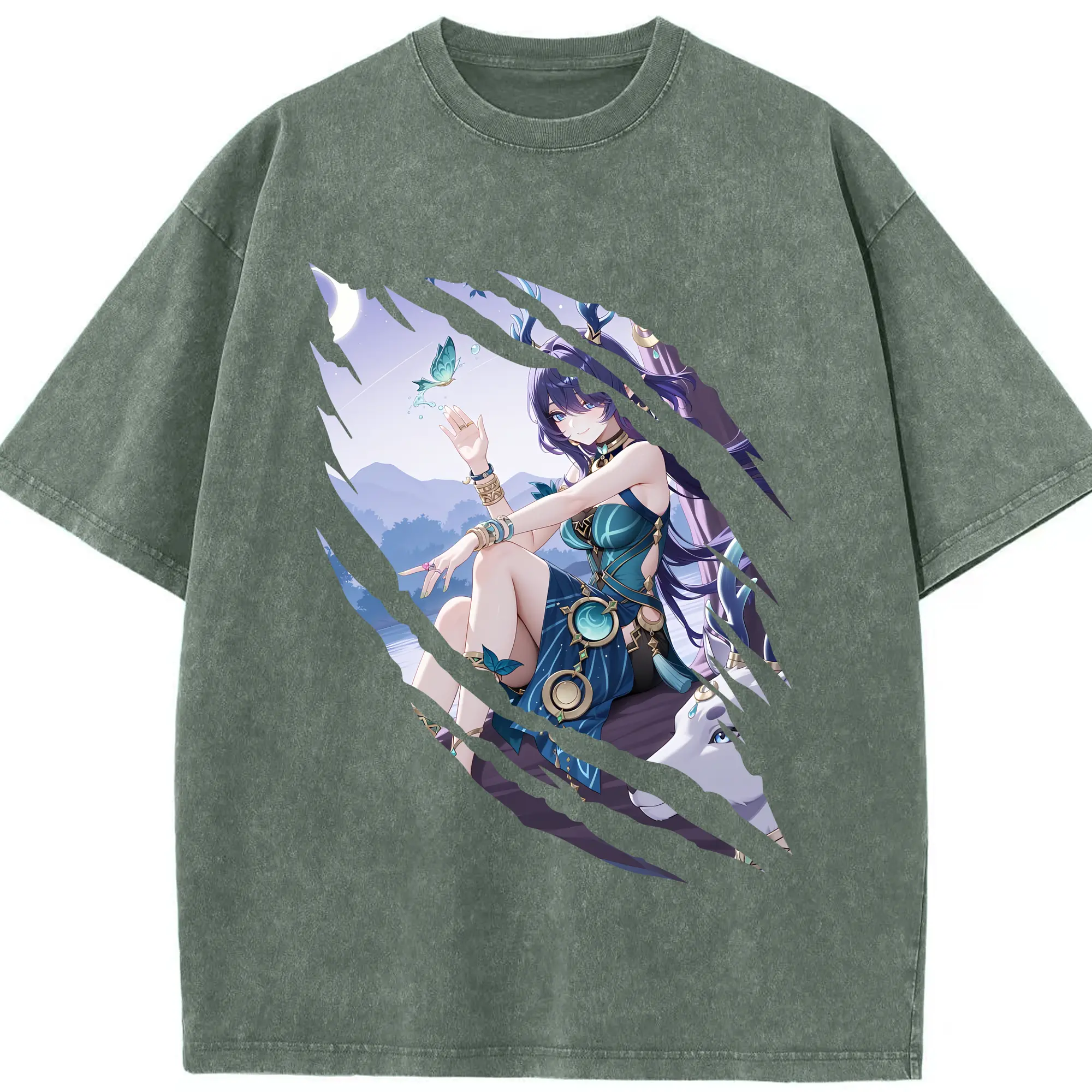 VALORANT グッズ,ヨル - 綿100% ヴィンテージ風 半袖Tシャツ ・ フロントプリント ・ 柔らか肌触り ・ 通気性 快適 ・ スポーツ カジュアル 外出用
