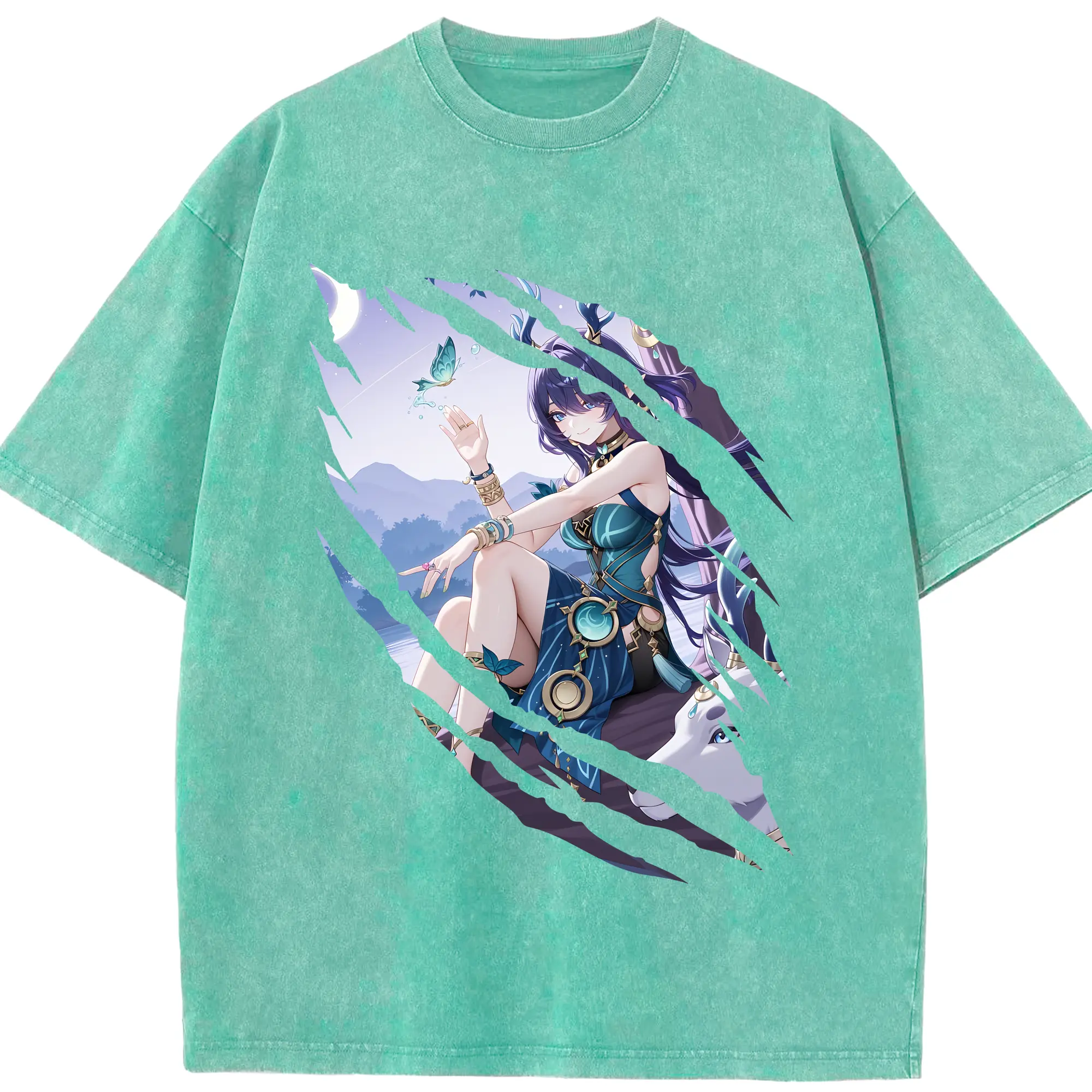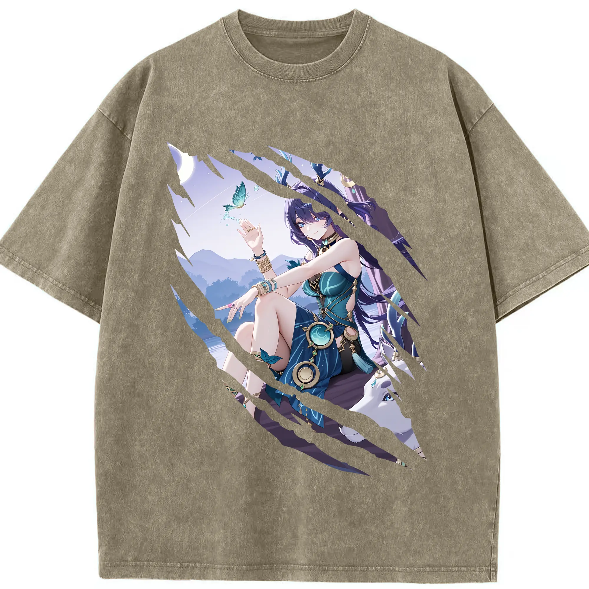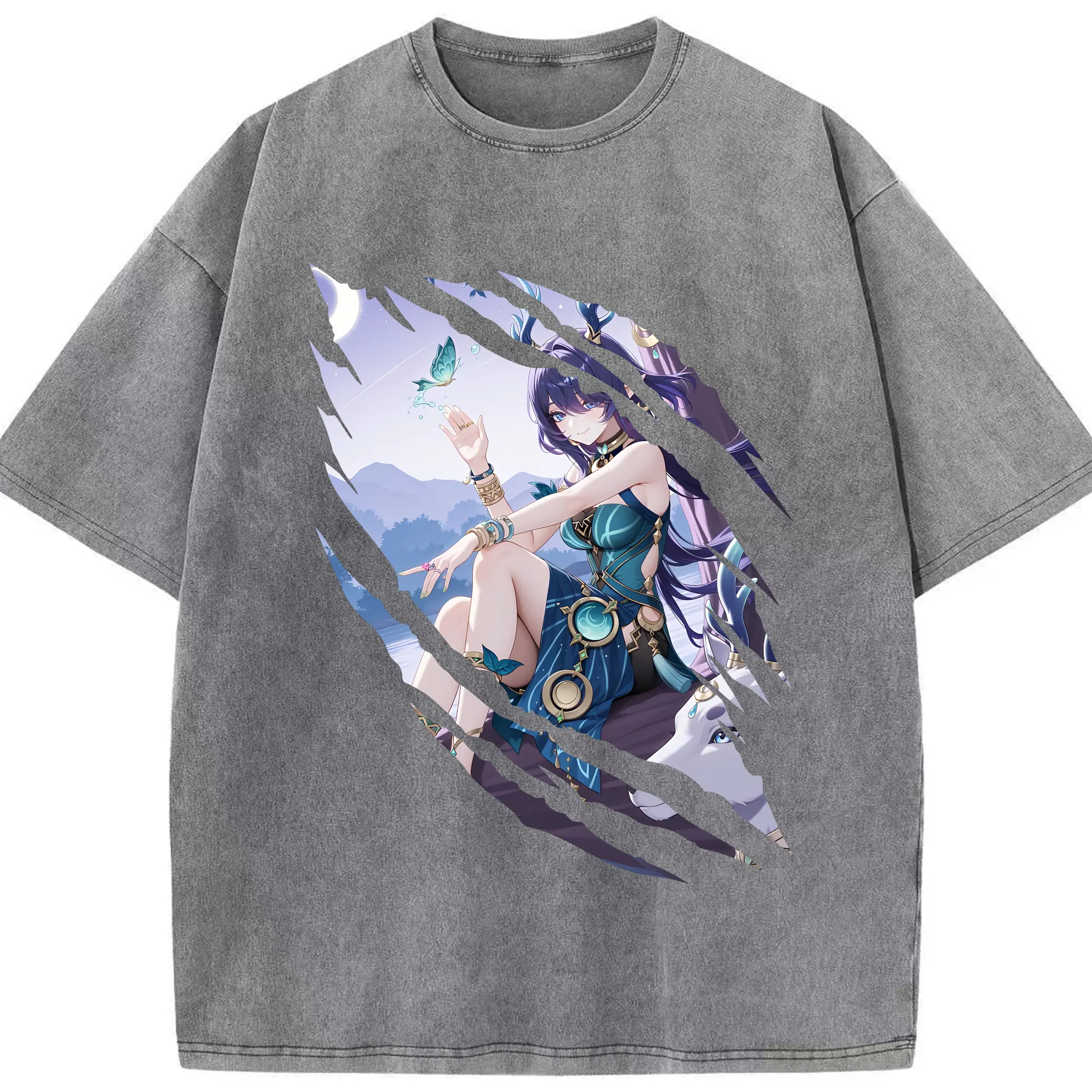 原 神 グッズ ラウマ - 綿100% ヴィンテージ風 半袖Tシャツ ・ 背面プリント ・ 柔らか肌触り ・ 通気性 快適 ・ スポーツ カジュアル 外出用
