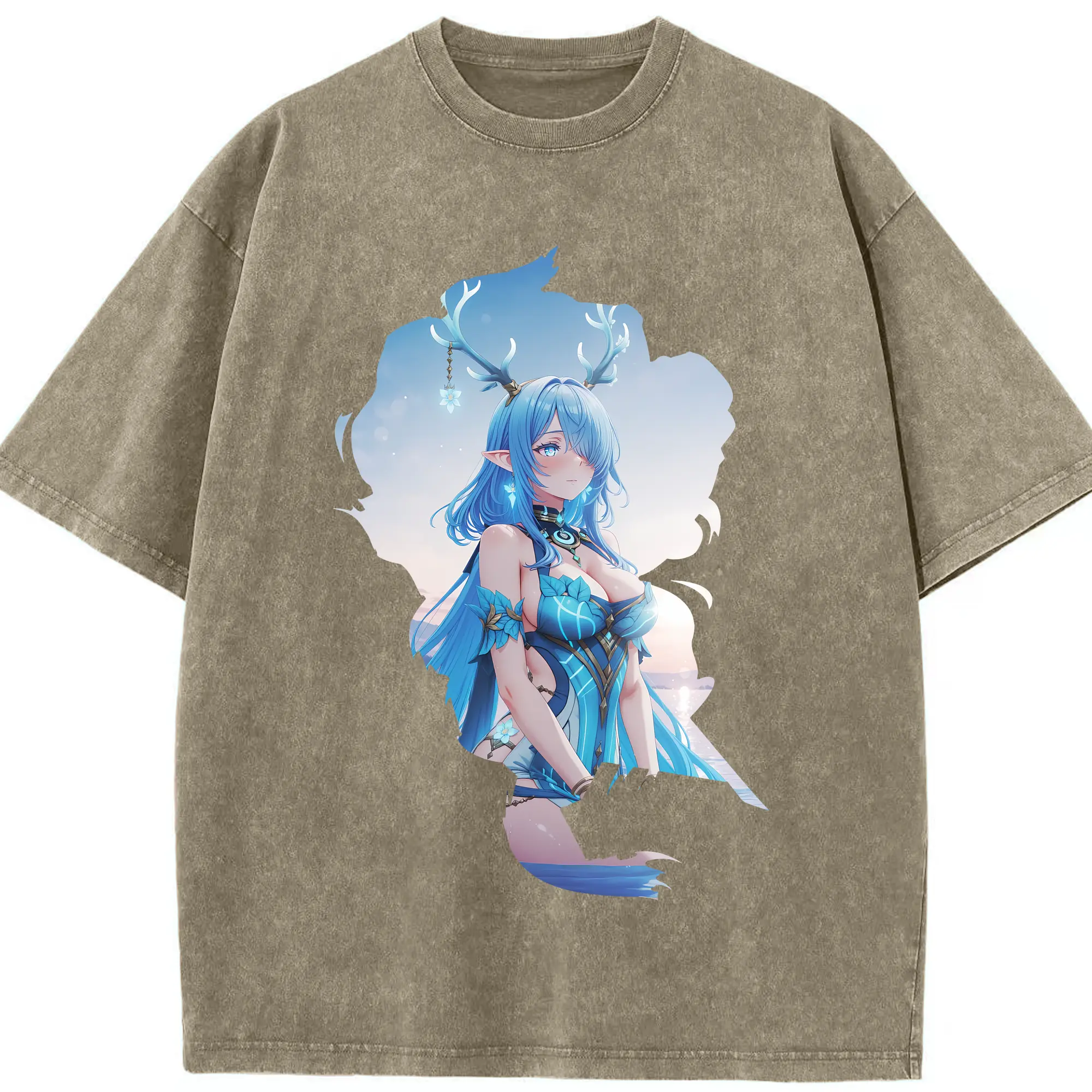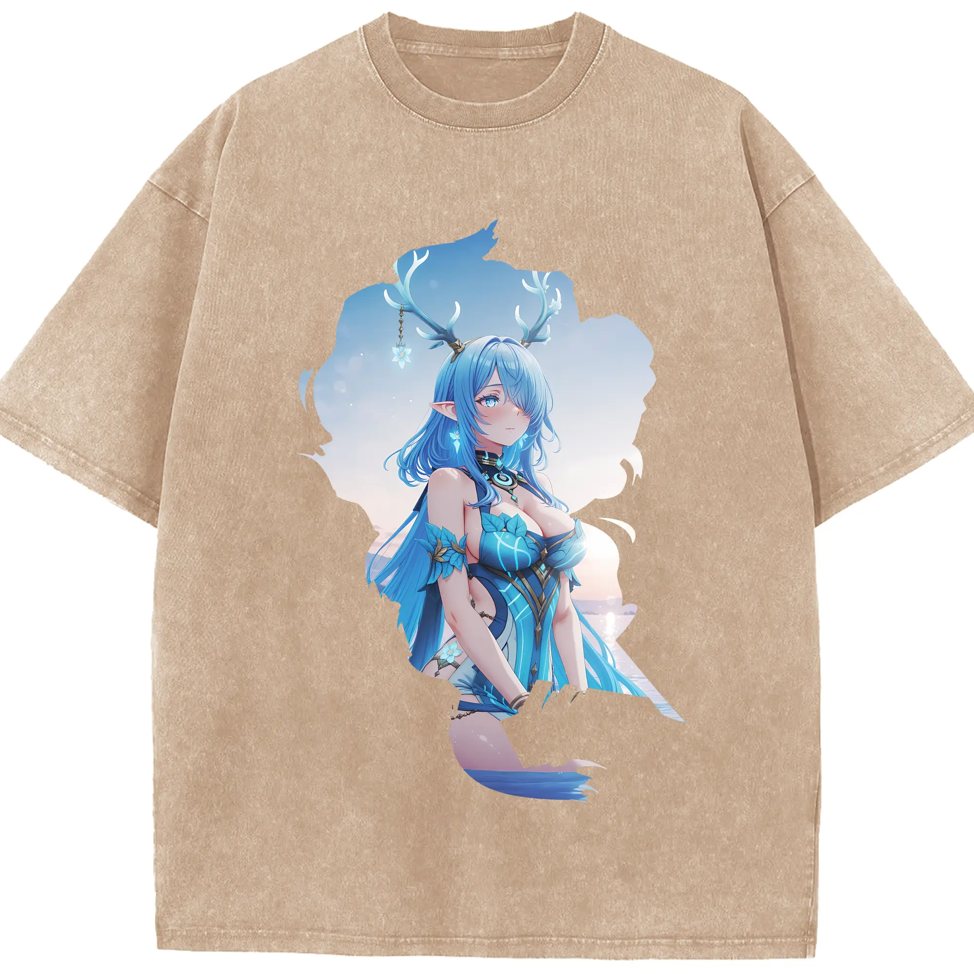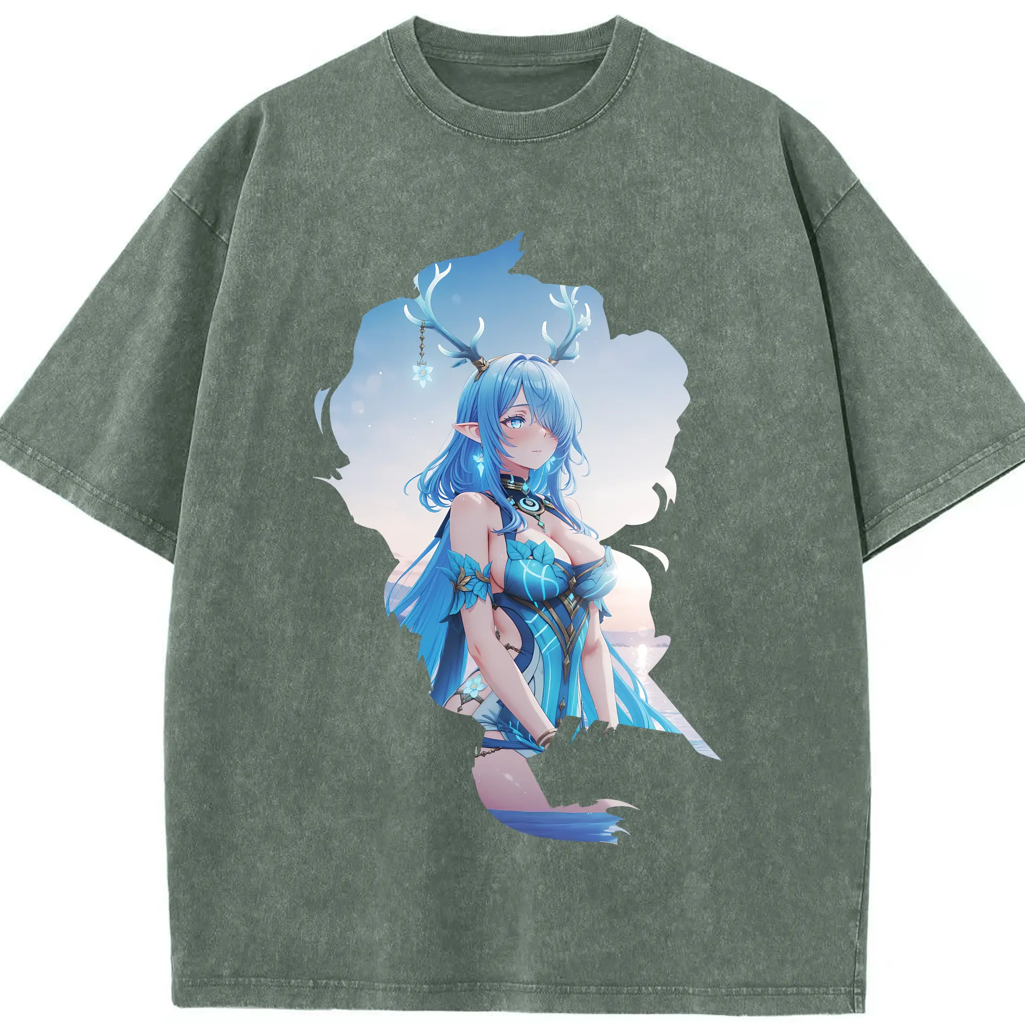 鳴潮 グッズ ツバキ - 綿100% ヴィンテージ風 半袖Tシャツ ・ フロントプリント ・ 柔らか肌触り ・ 通気性 快適 ・ スポーツ カジュアル 外出用
