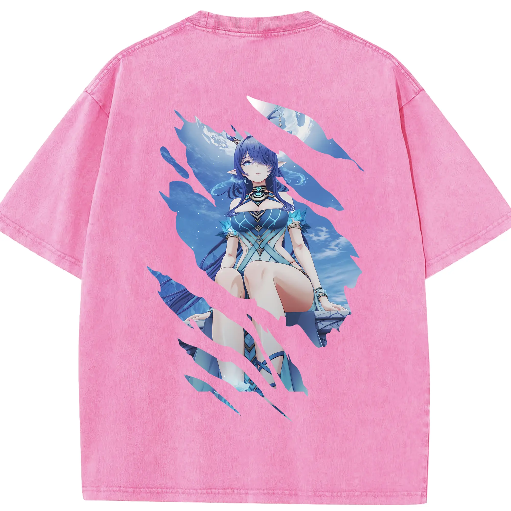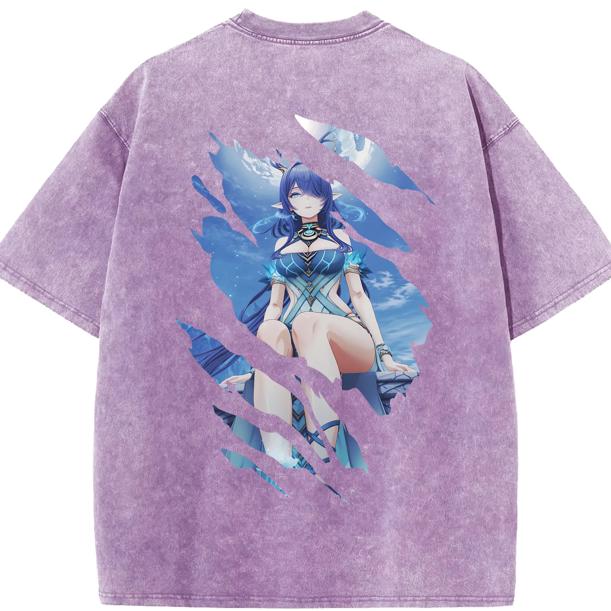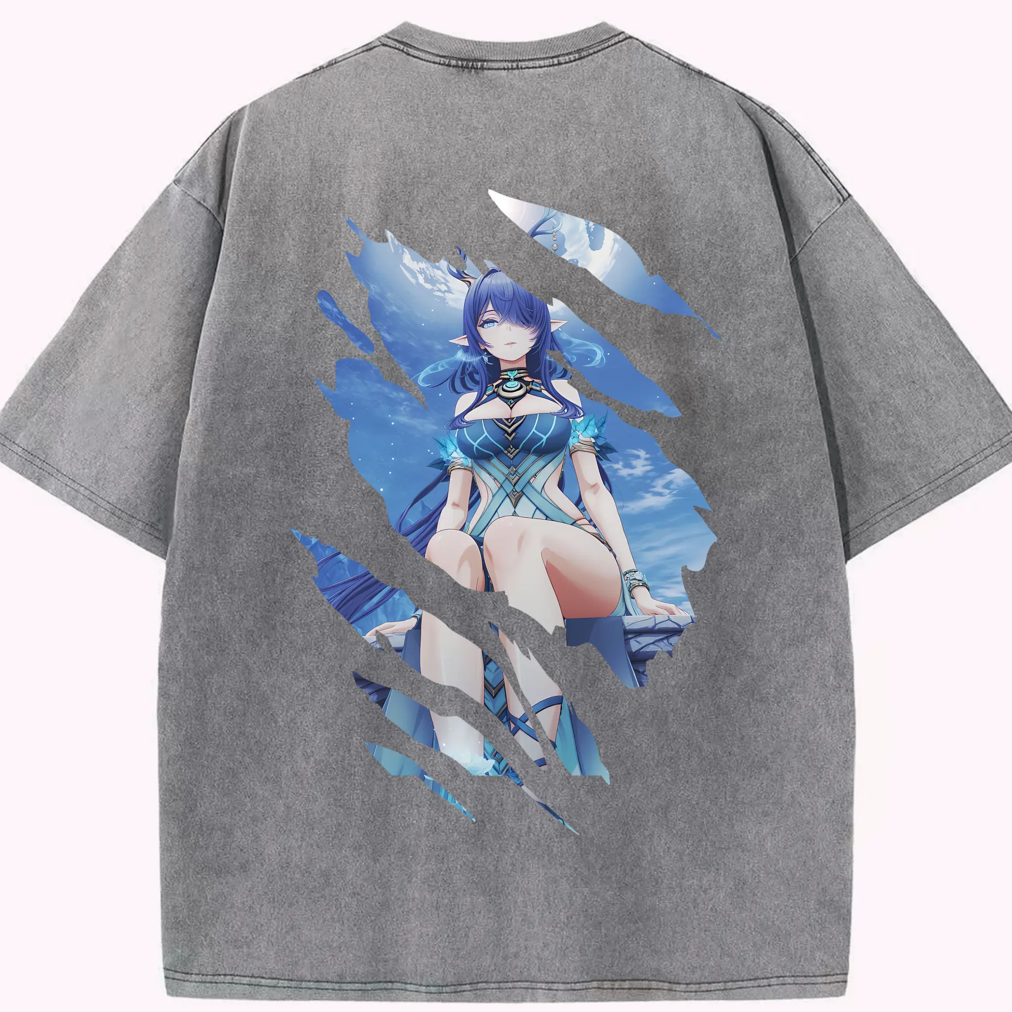 オーバーロード グッズ ナーベラル・ガンマ - 綿100% ヴィンテージ風 半袖Tシャツ ・ 背面プリント ・ 柔らか肌触り ・ 通気性 快適 ・ スポーツ カジュアル 外出用