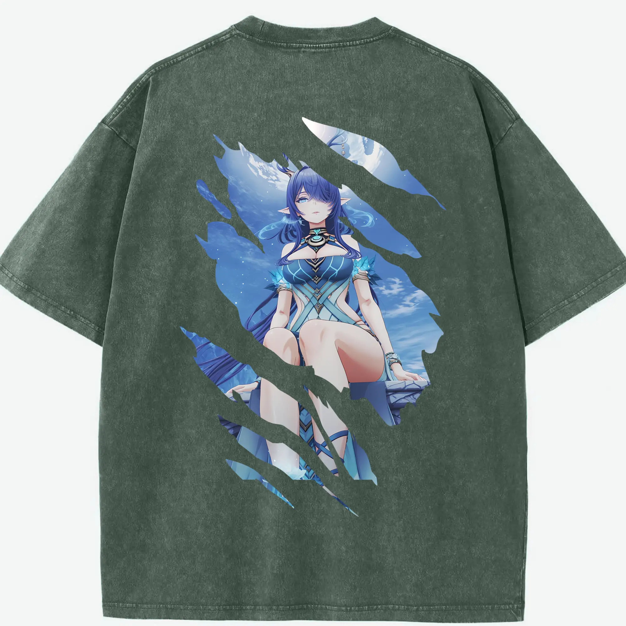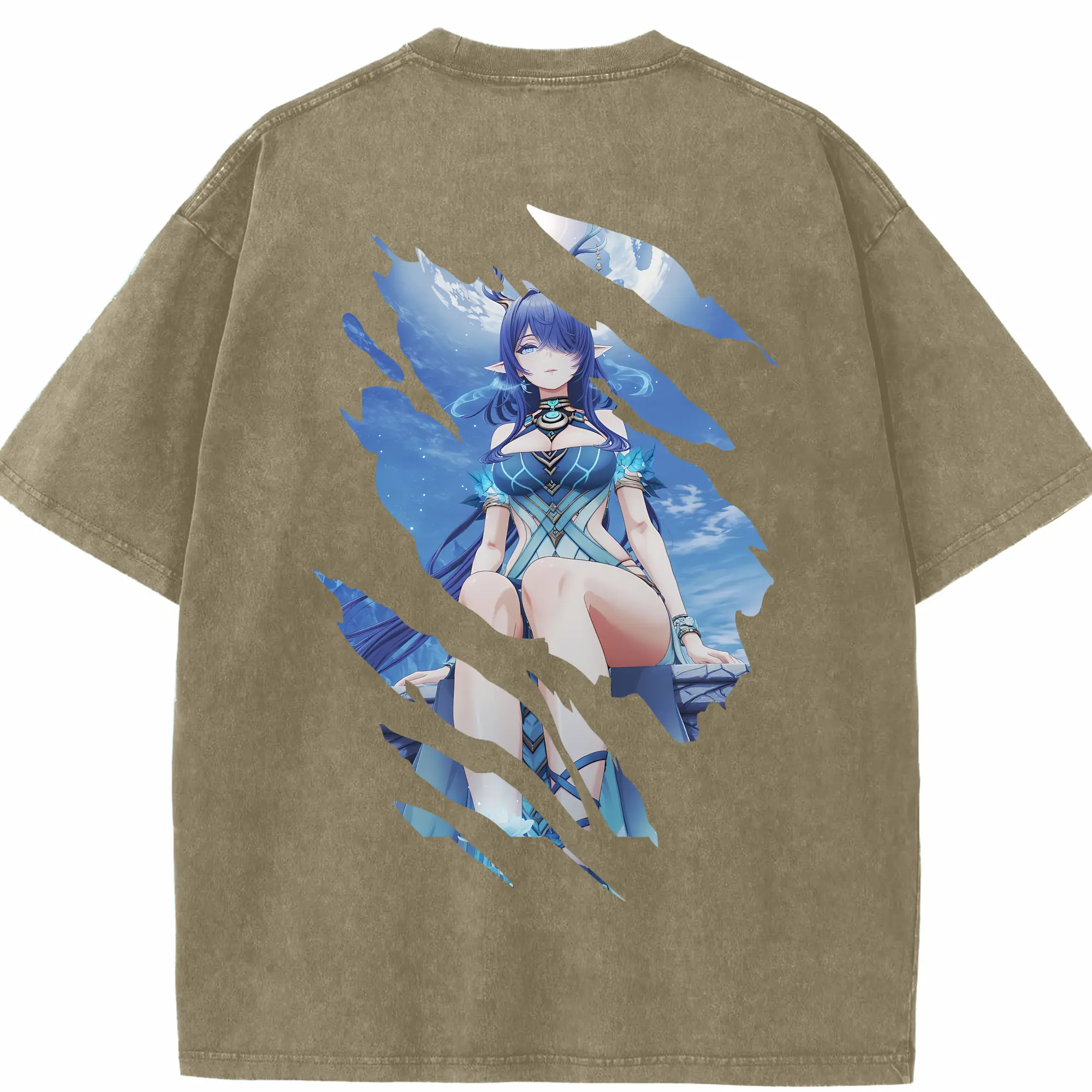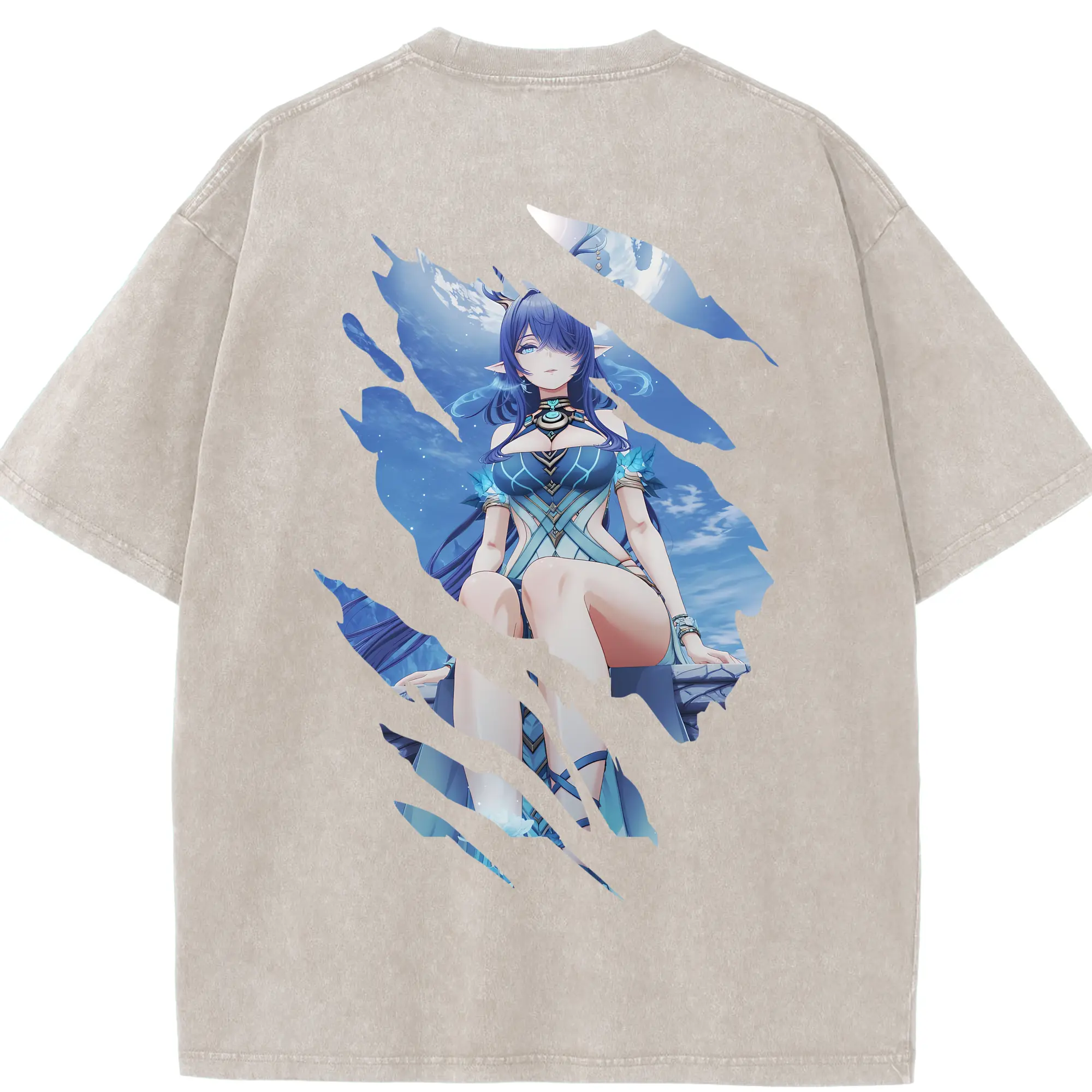 オーバーロード グッズ ナーベラル・ガンマ - 綿100% ヴィンテージ風 半袖Tシャツ ・ 背面プリント ・ 柔らか肌触り ・ 通気性 快適 ・ スポーツ カジュアル 外出用