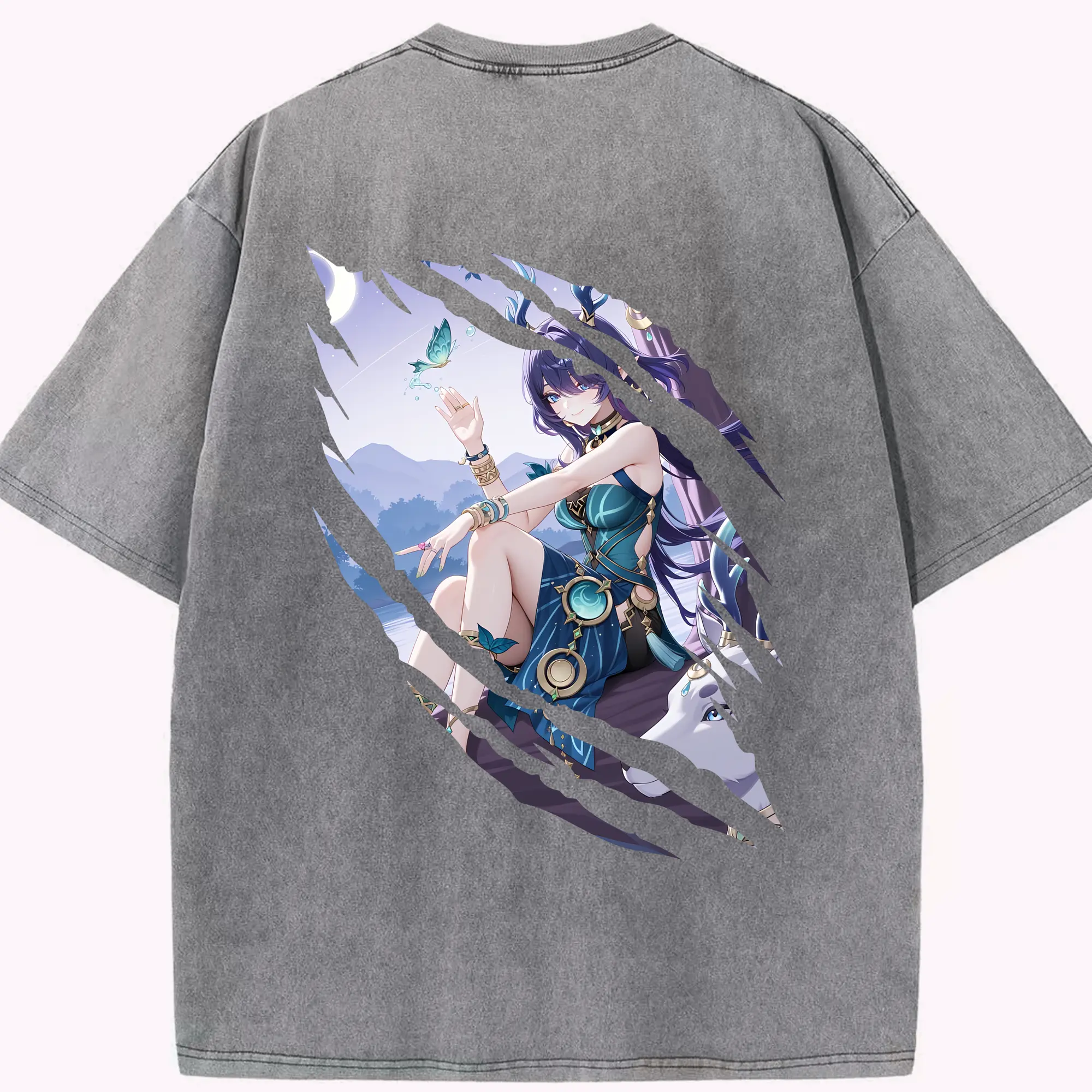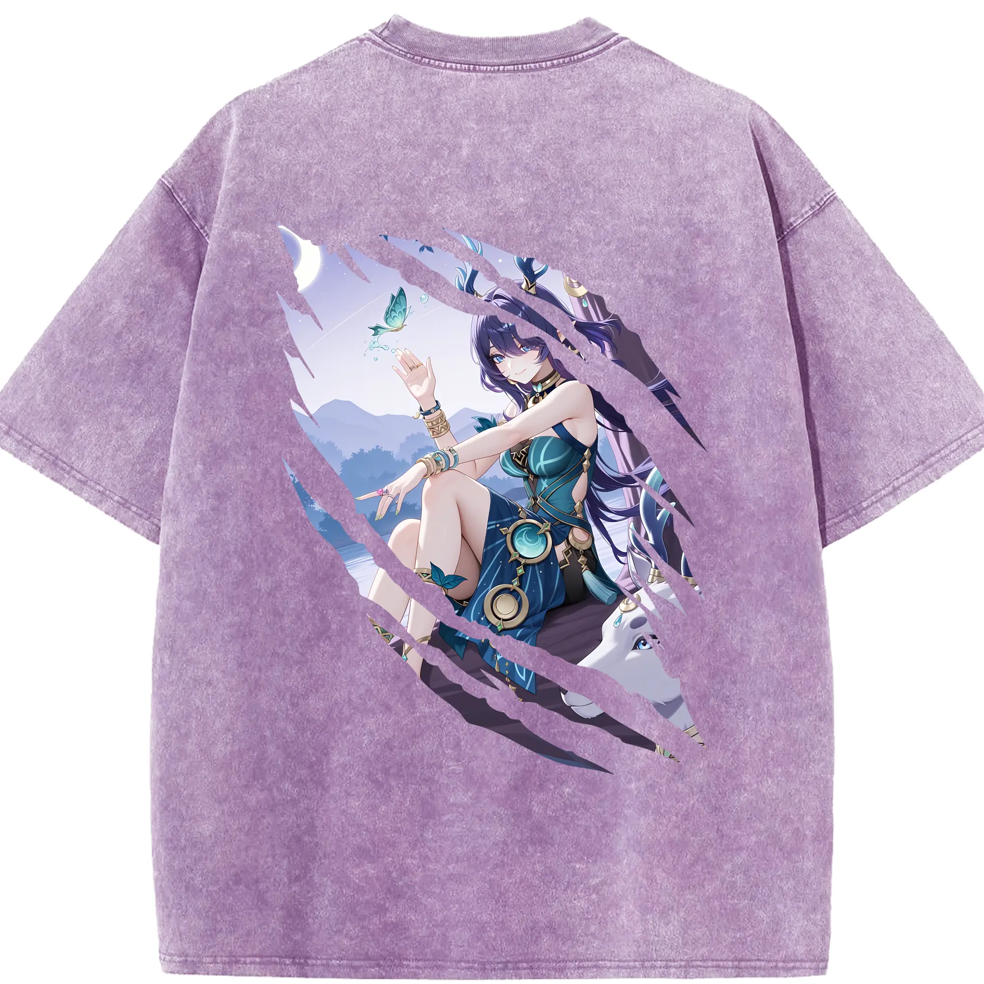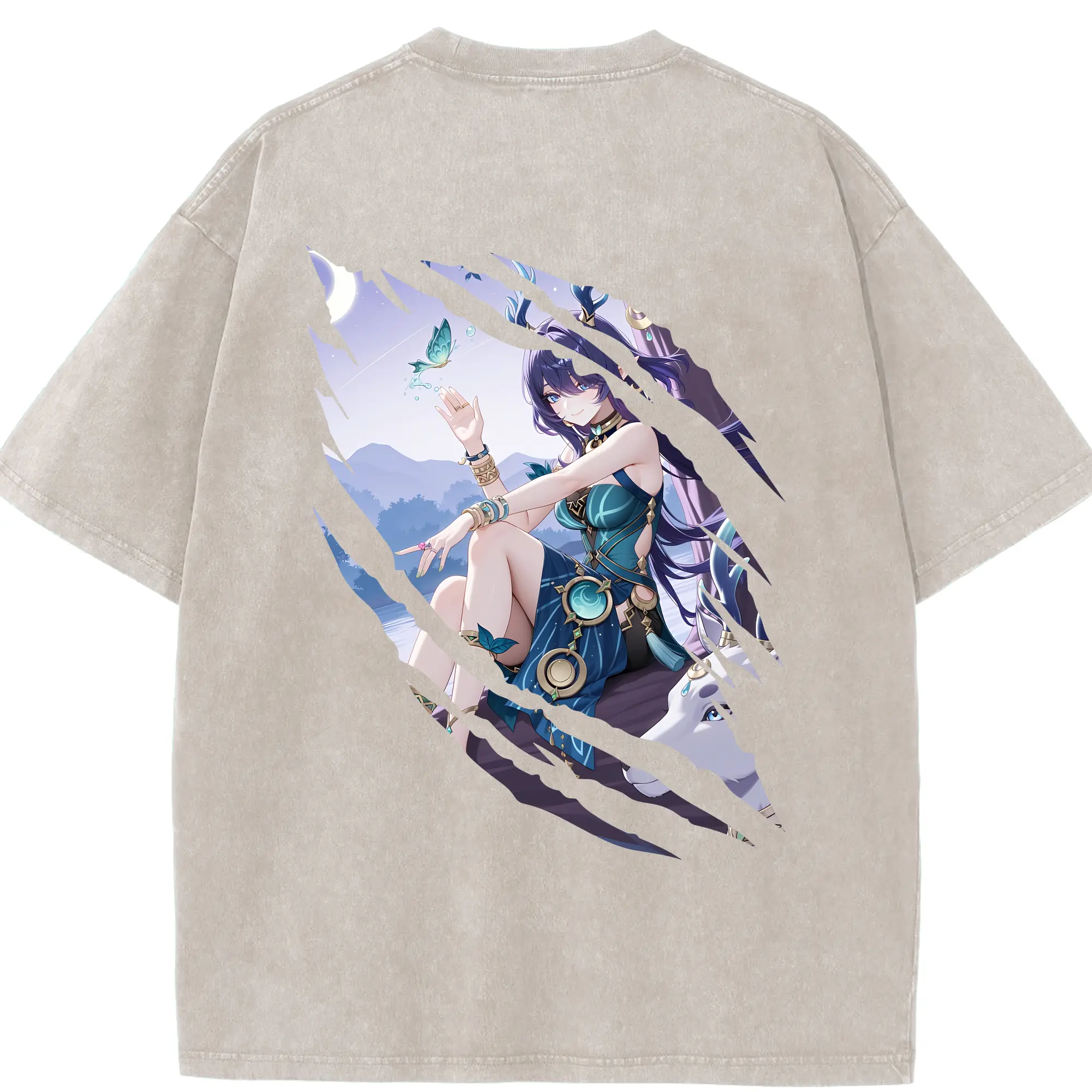 原 神 グッズ ラウマ - 綿100% ヴィンテージ風 半袖Tシャツ ・ フロントプリント ・ 柔らか肌触り ・ 通気性 快適 ・ スポーツ カジュアル 外出用