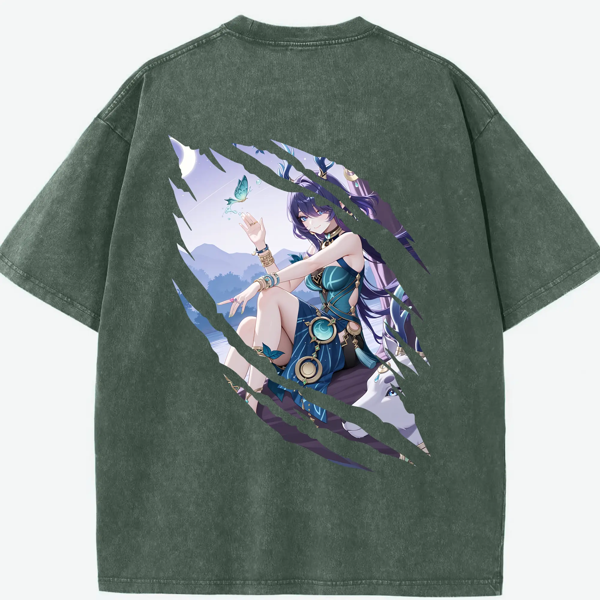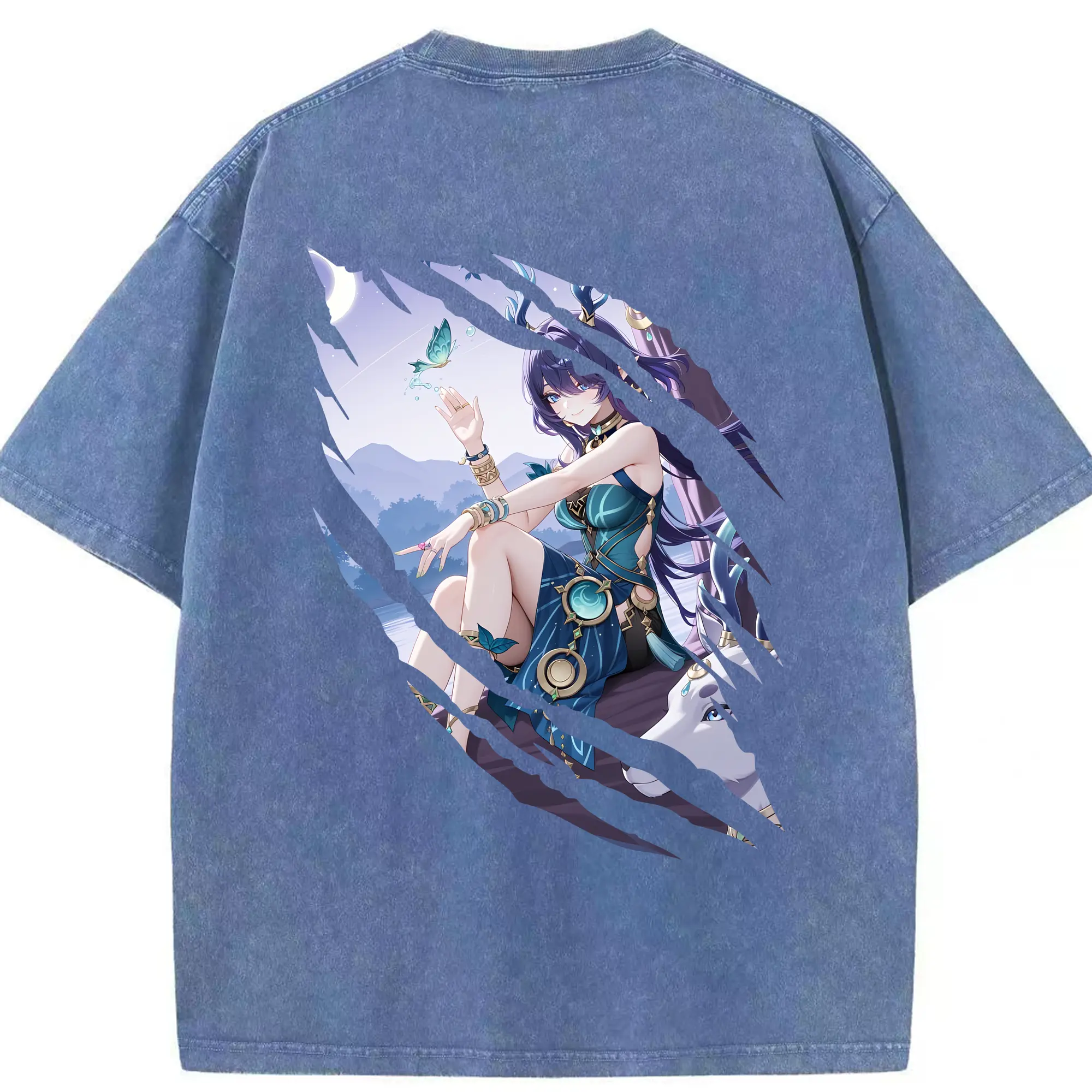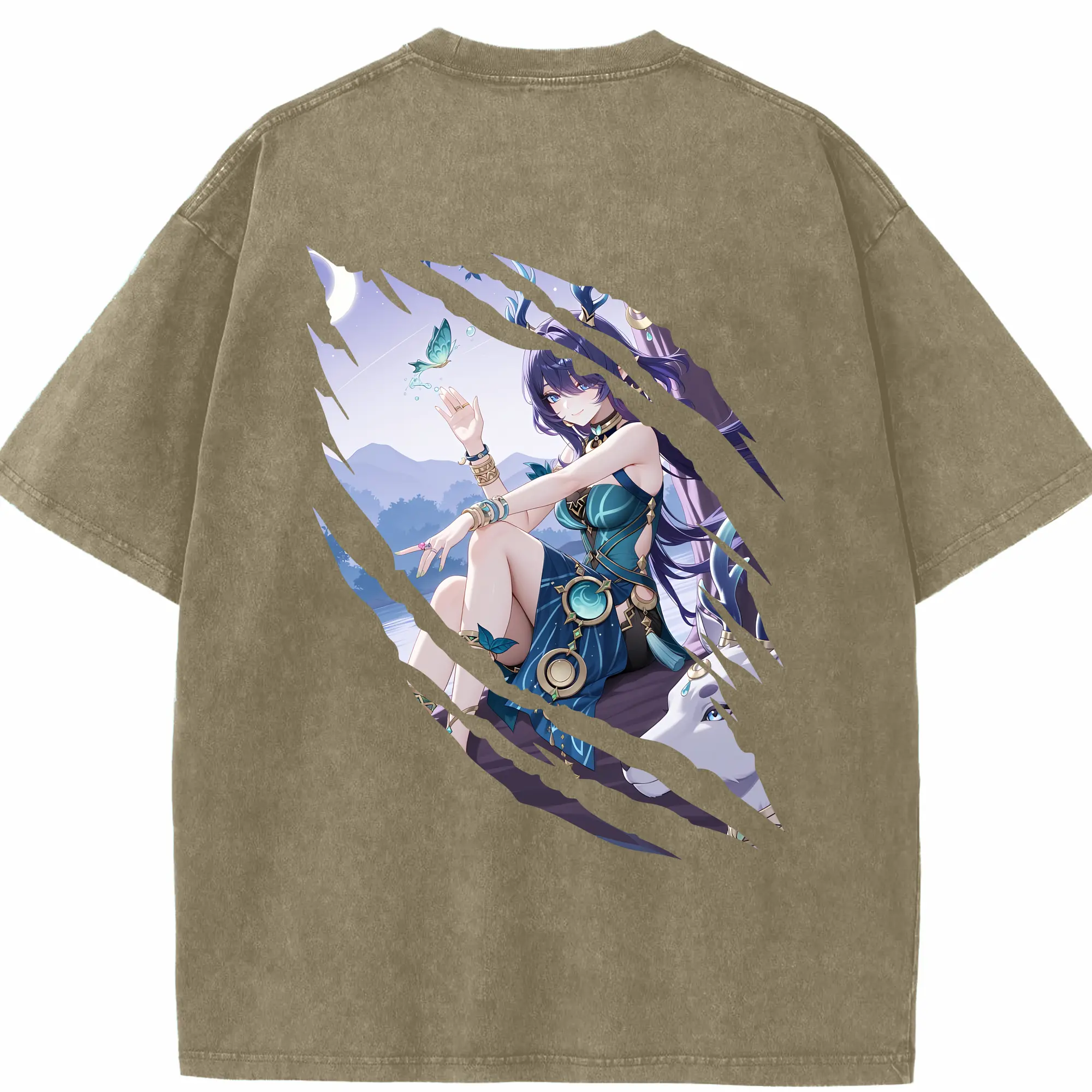 原 神 グッズ ラウマ - 綿100% ヴィンテージ風 半袖Tシャツ ・ フロントプリント ・ 柔らか肌触り ・ 通気性 快適 ・ スポーツ カジュアル 外出用
