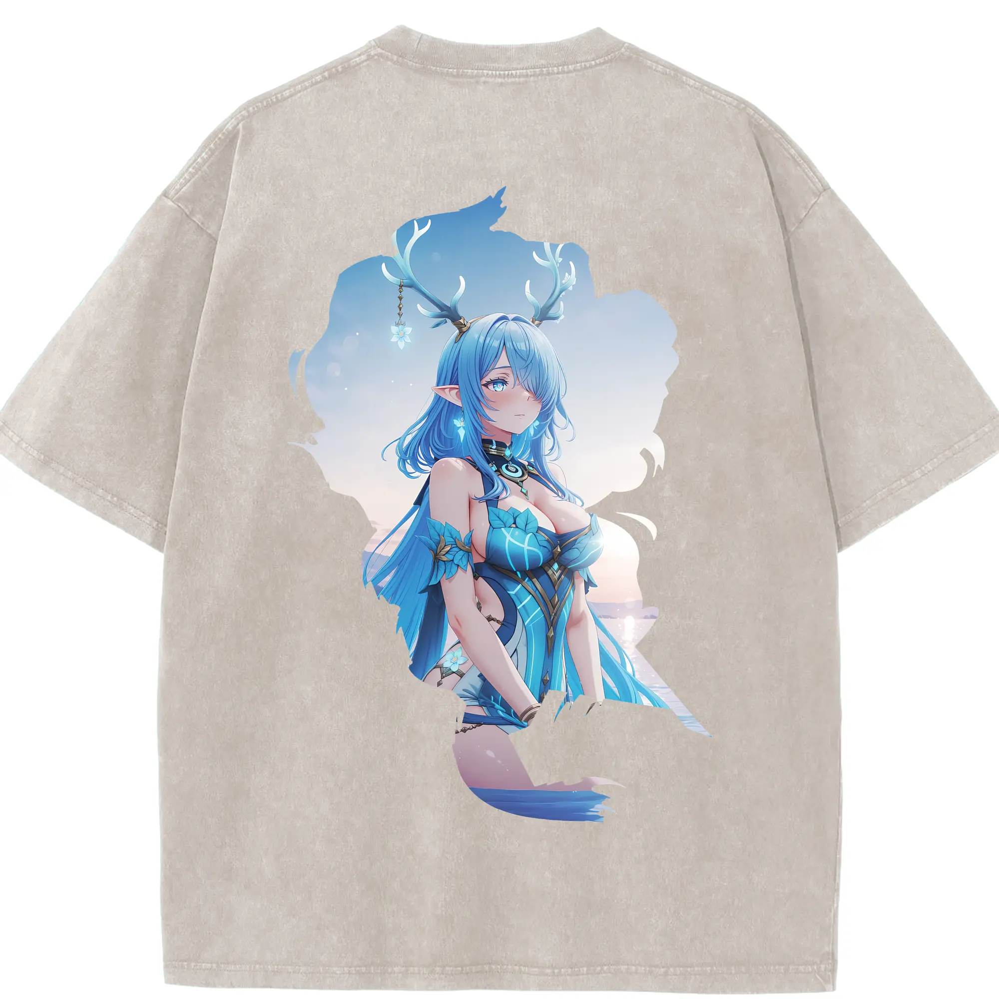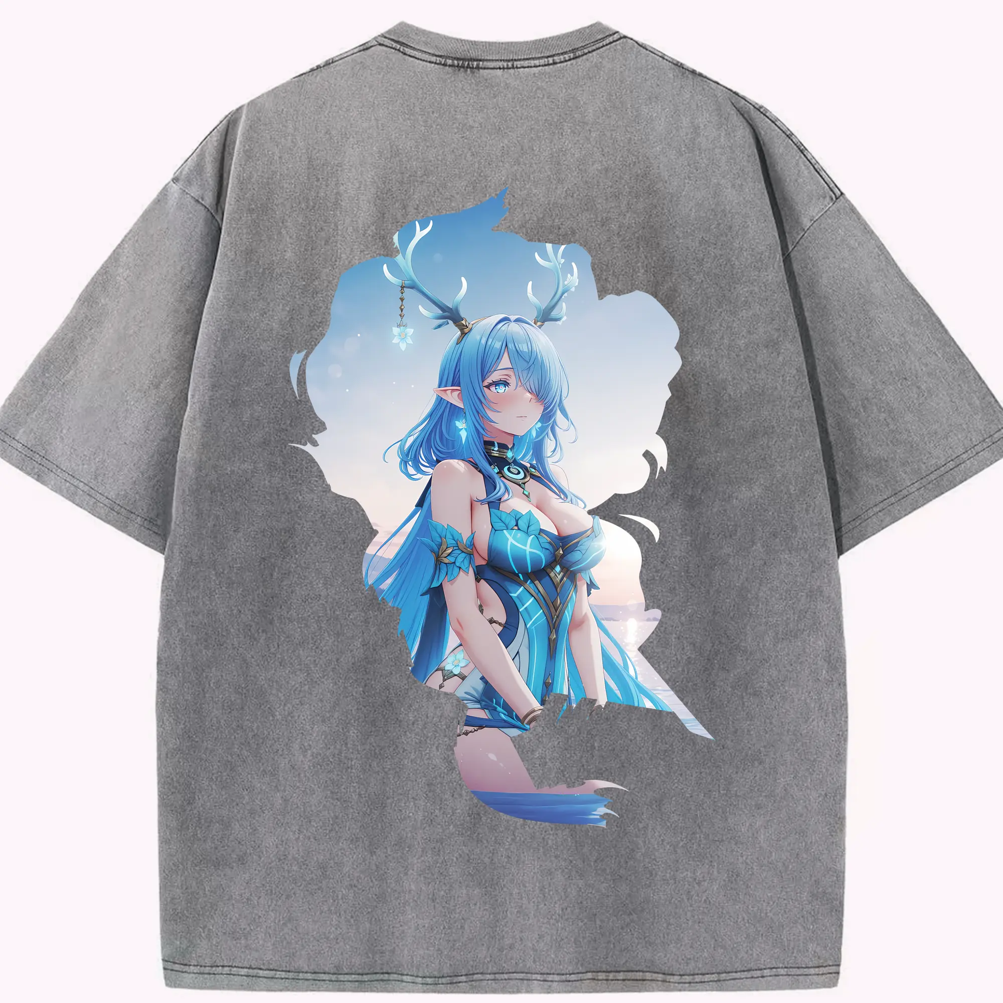 七つの大罪 グッズ エリザベス - 綿100% ヴィンテージ風 半袖Tシャツ ・ 背面プリント ・ 柔らか肌触り ・ 通気性 快適 ・ スポーツ カジュアル 外出用