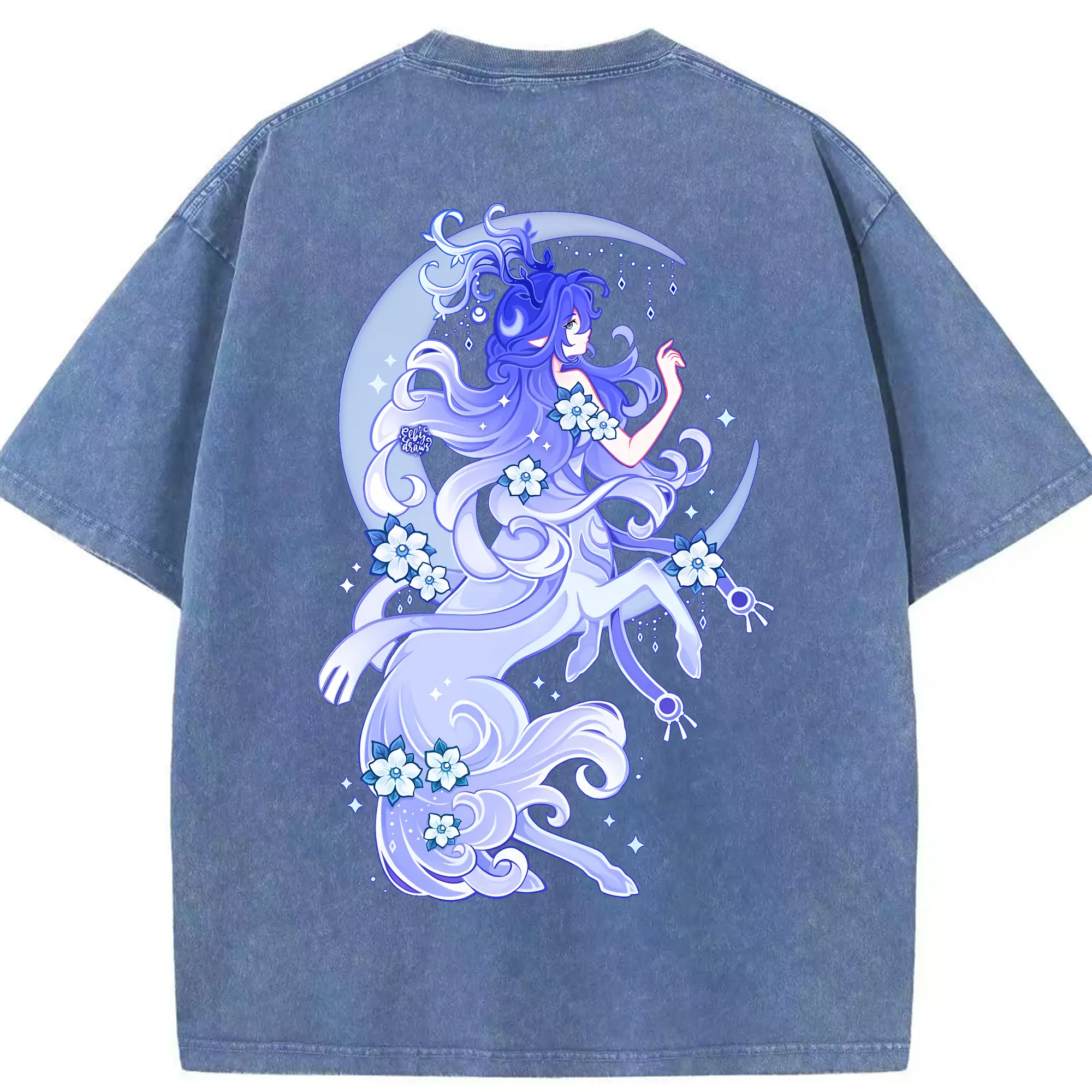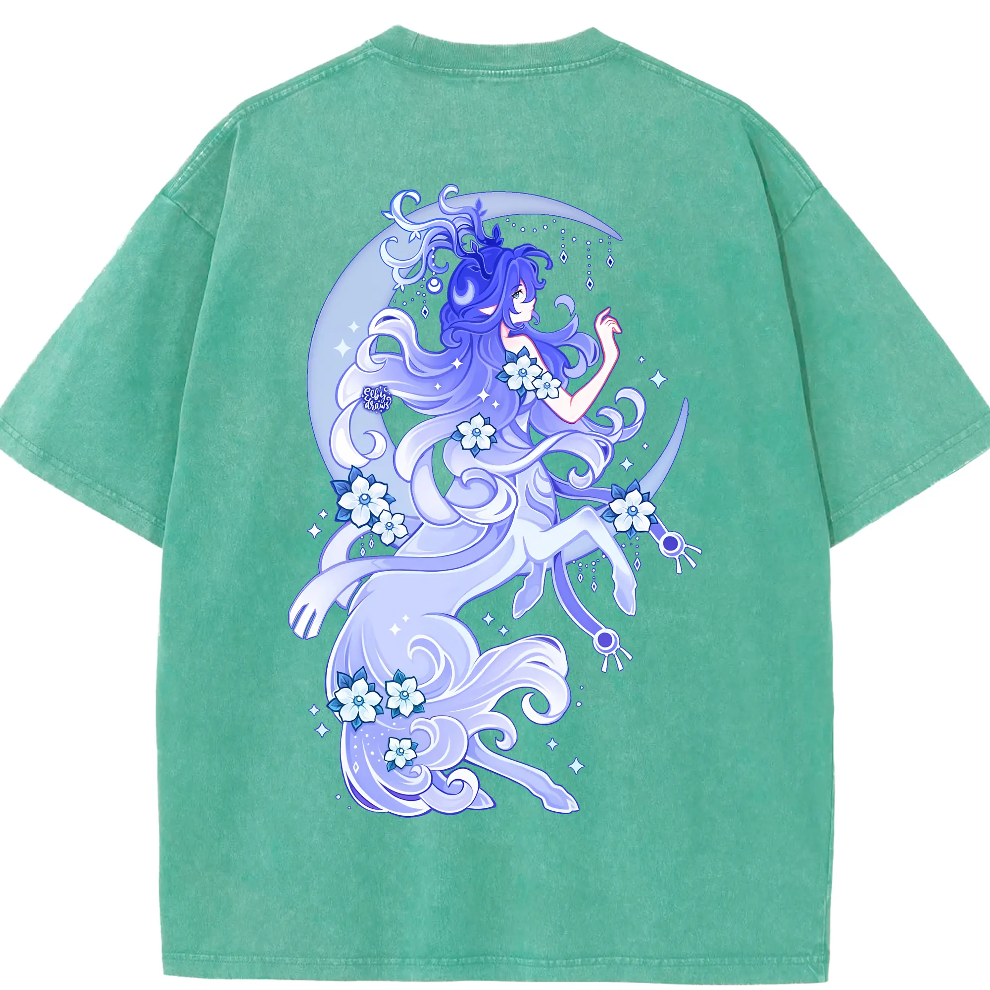 原 神 グッズ 神里綾華 - 綿100% ヴィンテージ風 半袖Tシャツ ・ 背面プリント ・ 柔らか肌触り ・ 通気性 快適 ・ スポーツ カジュアル 外出用