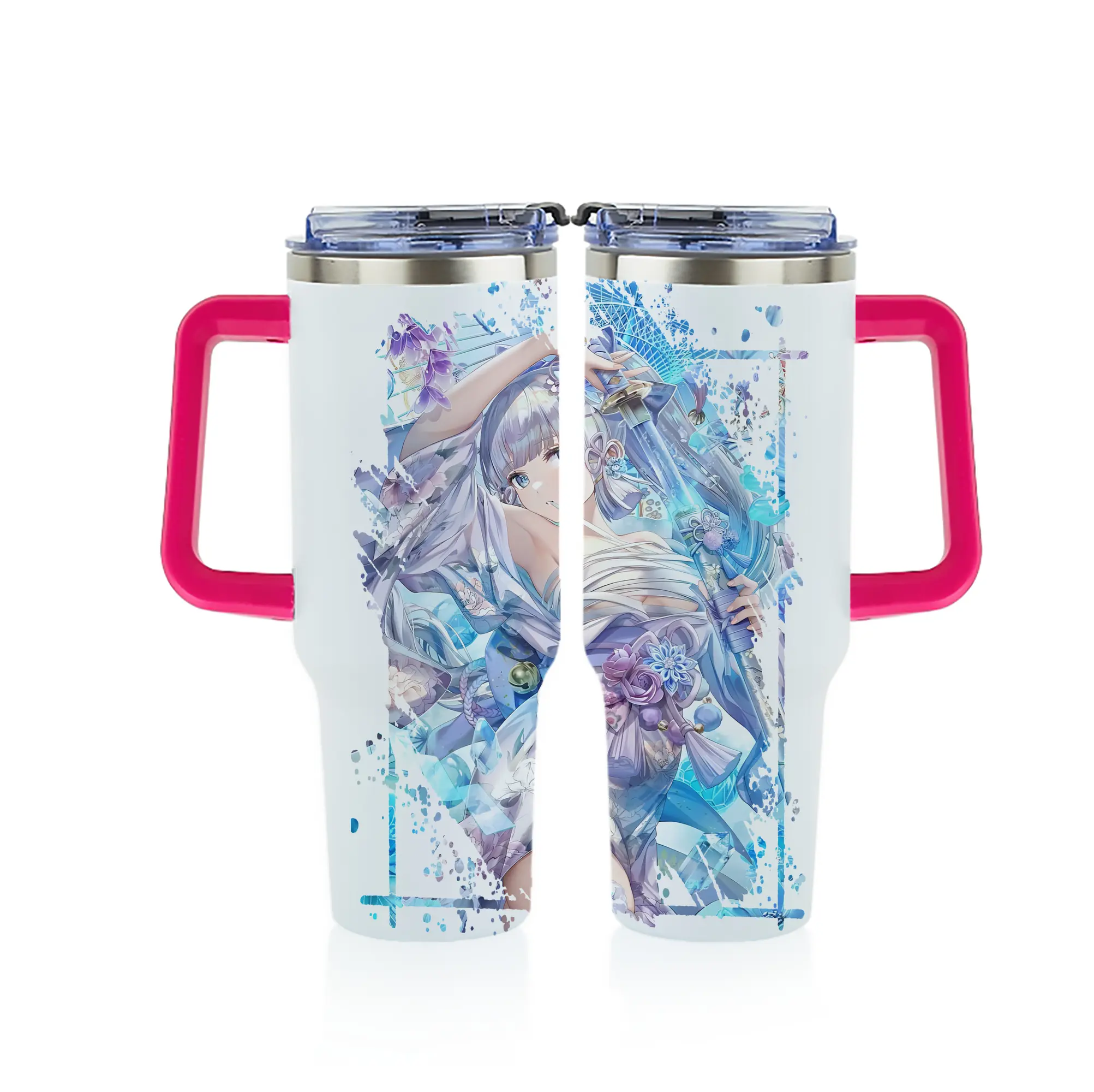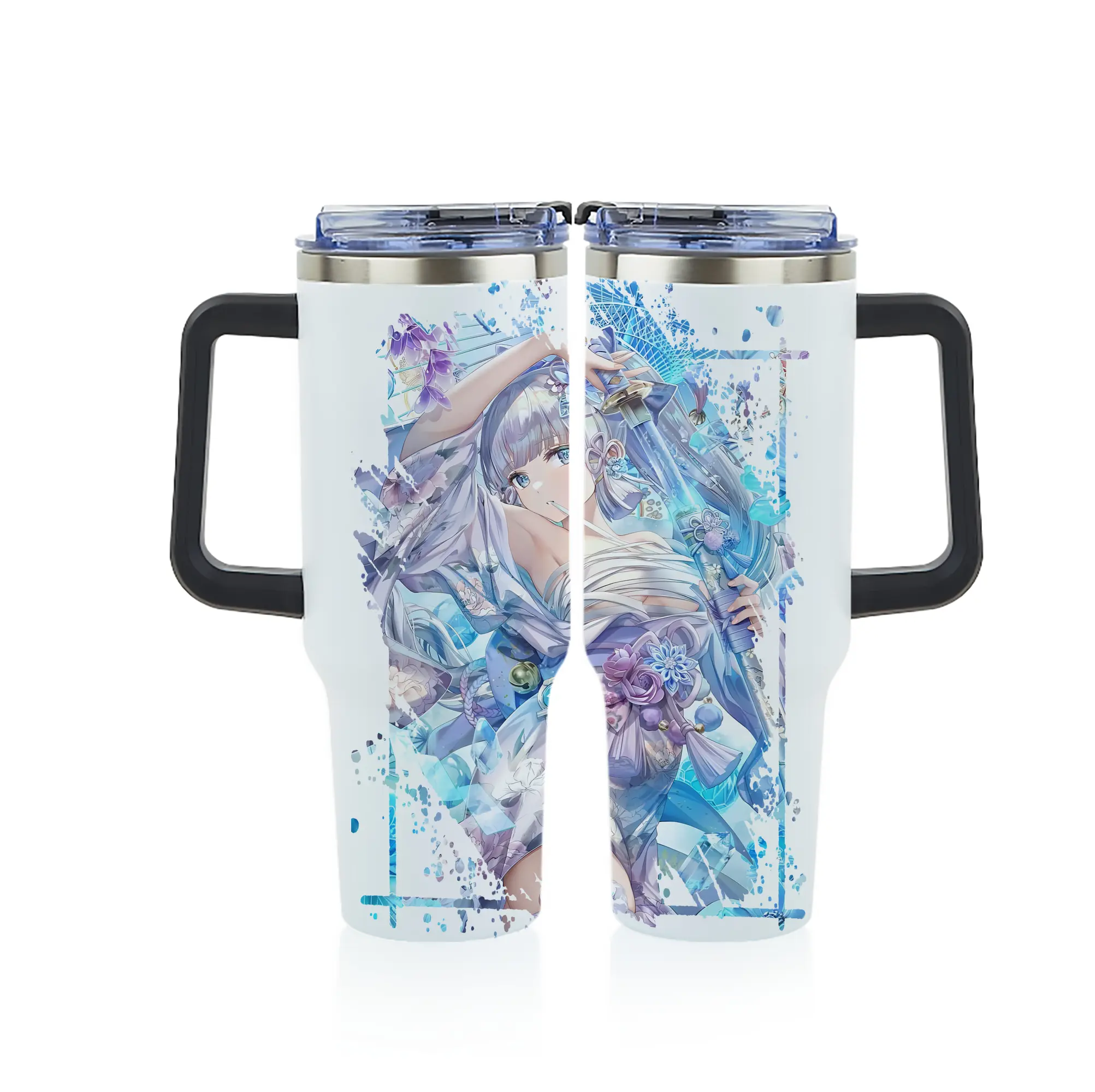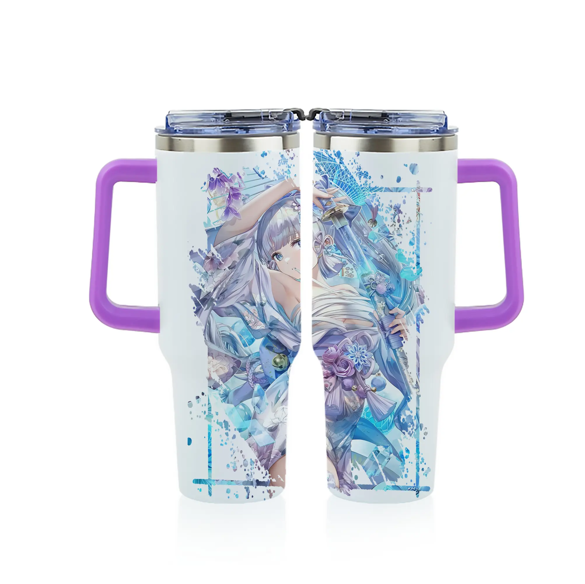 原 神 グッズ 神里綾華 - 1200mL フルプリント車用タンブラー ・ 304ステンレス 内側 ・ 201ステンレス 外側 ・ 保温 保冷 ・ 通勤 ドライブ アウトドア用