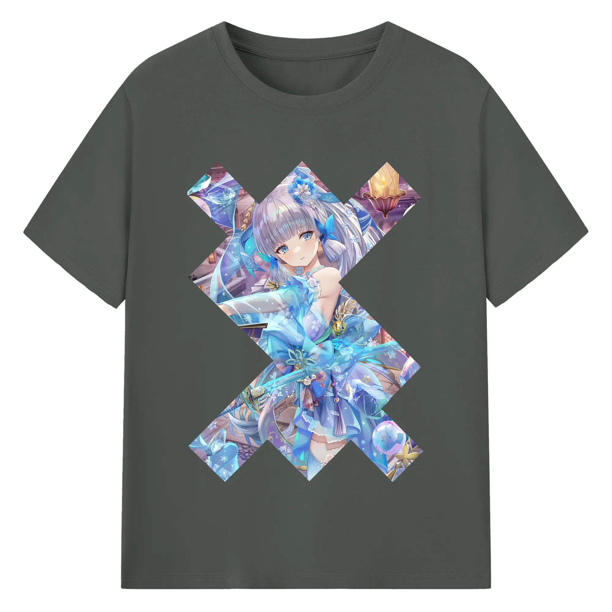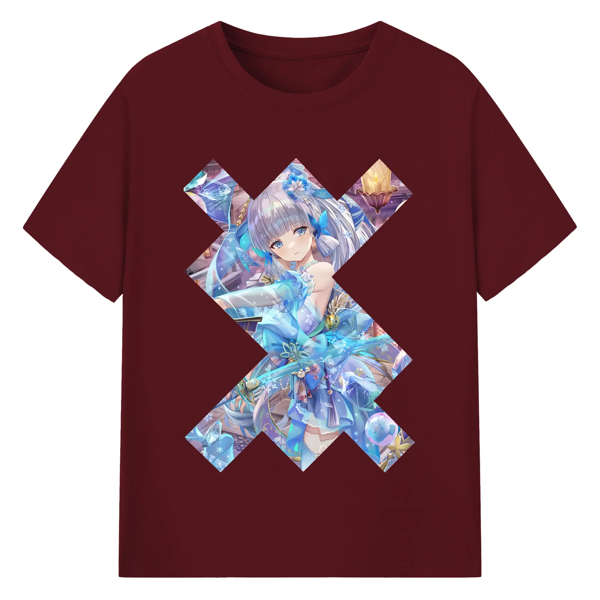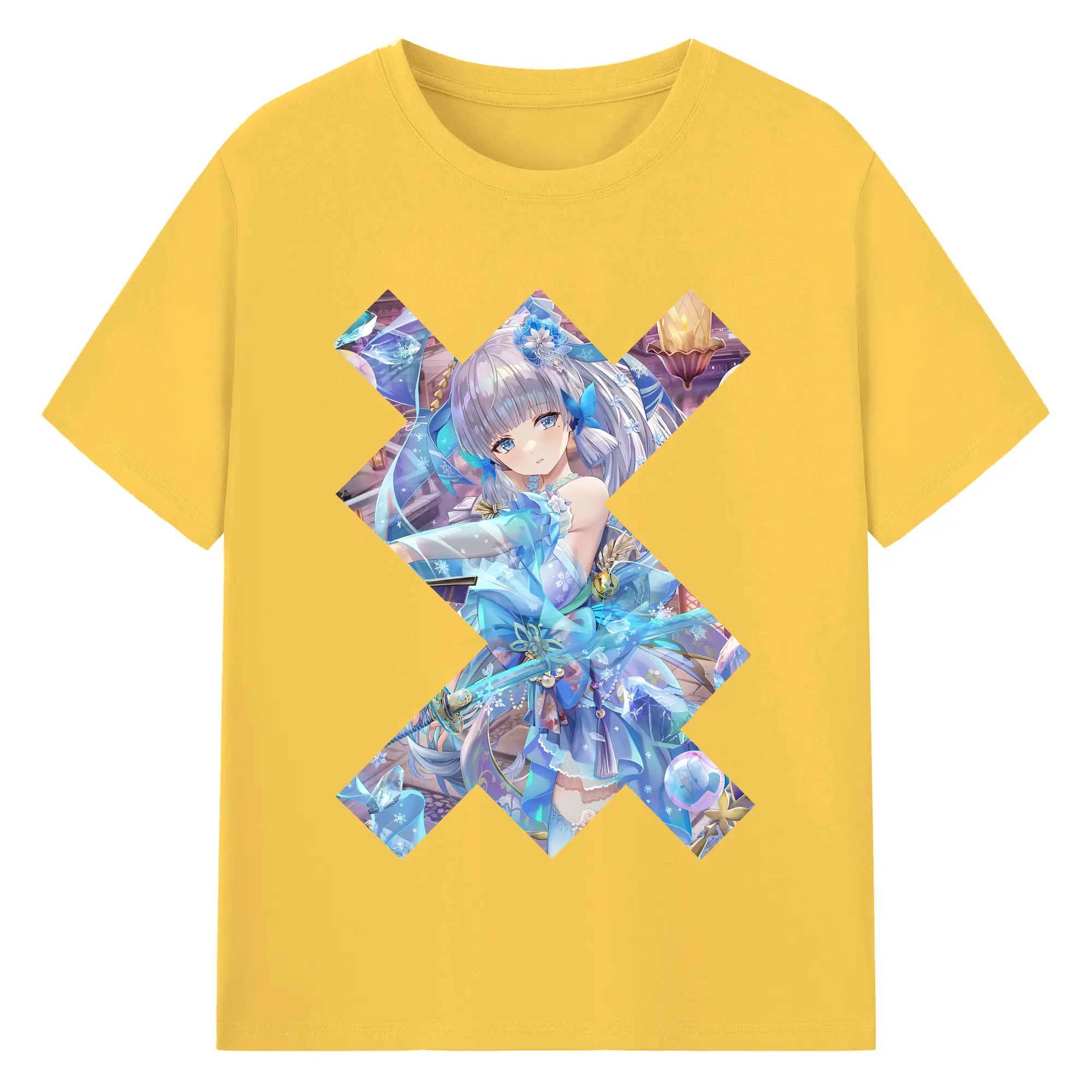原 神 グッズ 神里綾華 - 綿100% 半袖Tシャツ ・ バックプリント ・ 快適 通気性 ・ 日常使い 散歩 スポーツ用